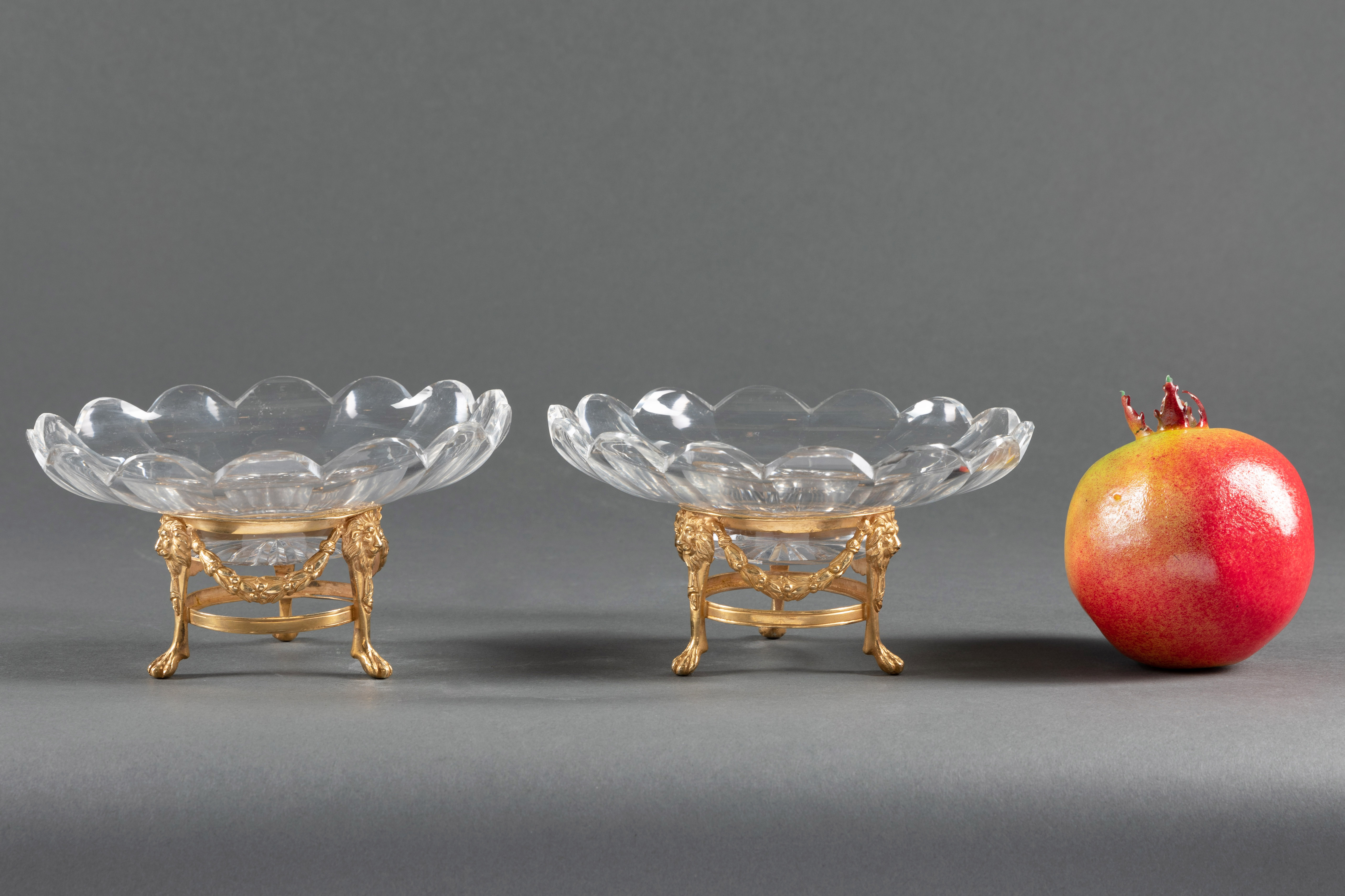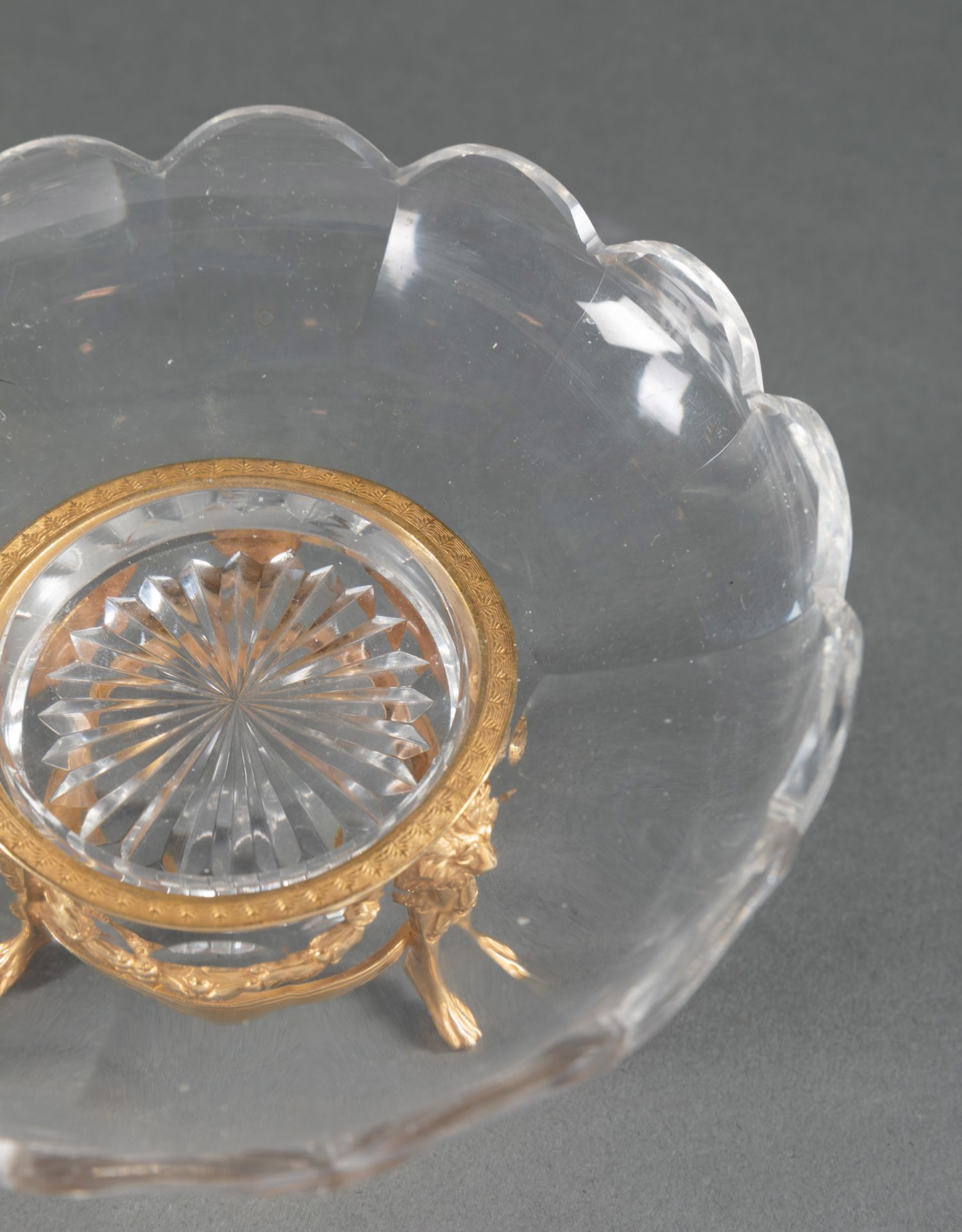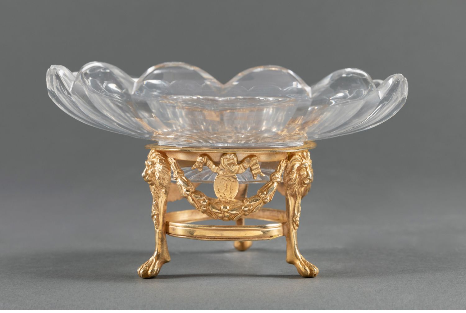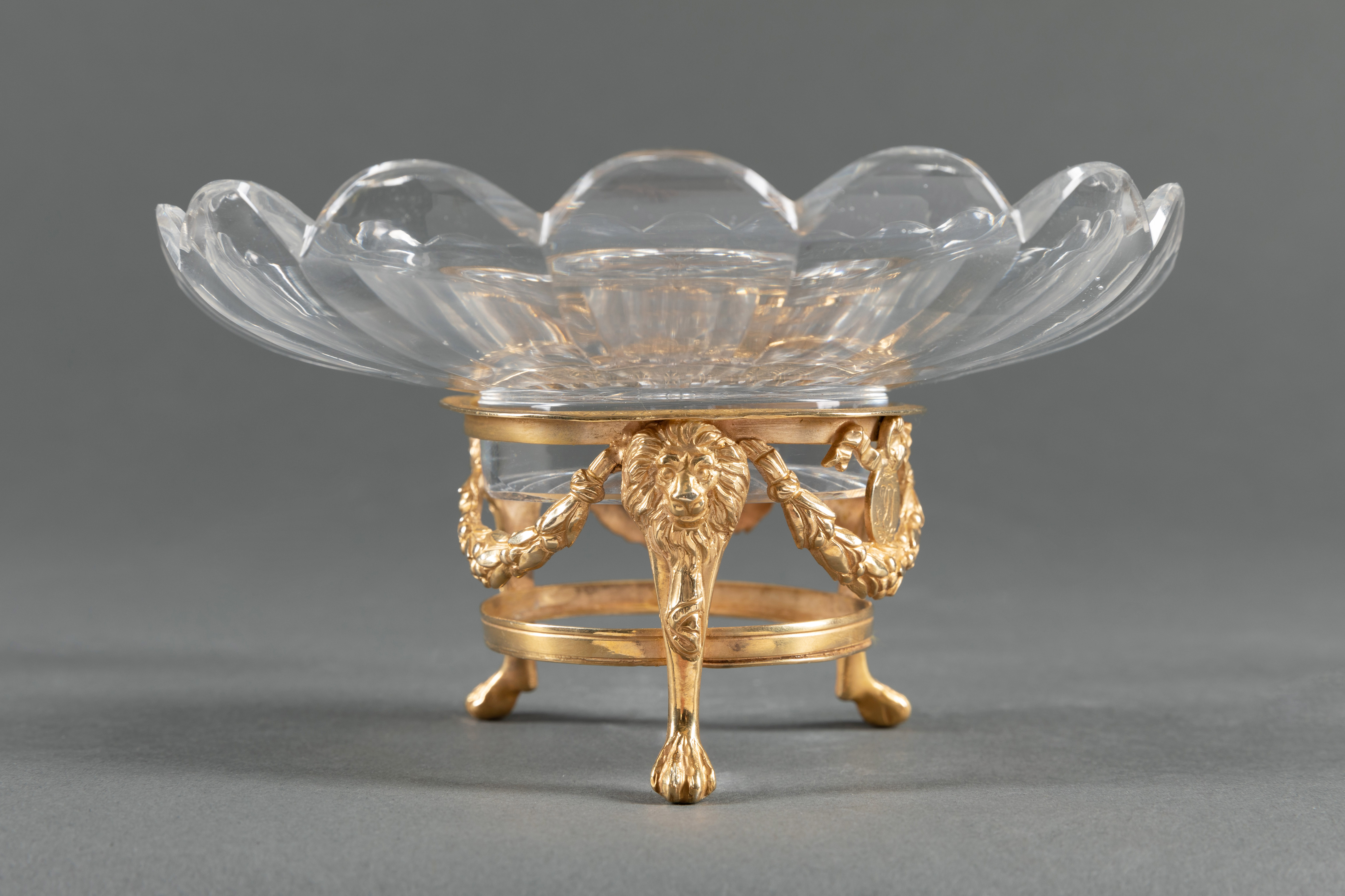独角鹿西洋古董路易十六风铜鎏金镶嵌巴卡拉水晶三足托盘果盘摆件