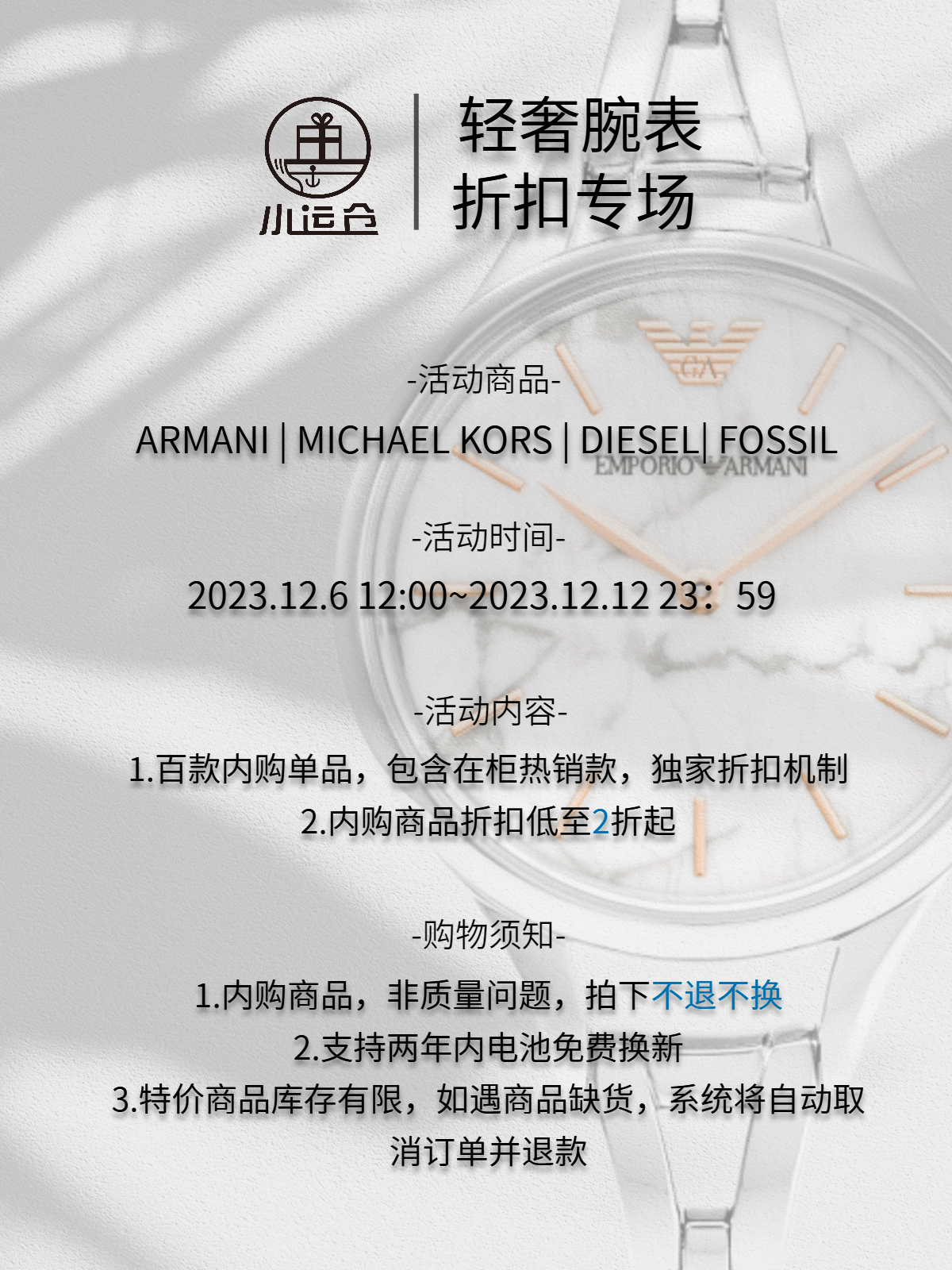 Armani阿玛尼手表 不锈钢材质【拍前请阅读详情购物须知】
