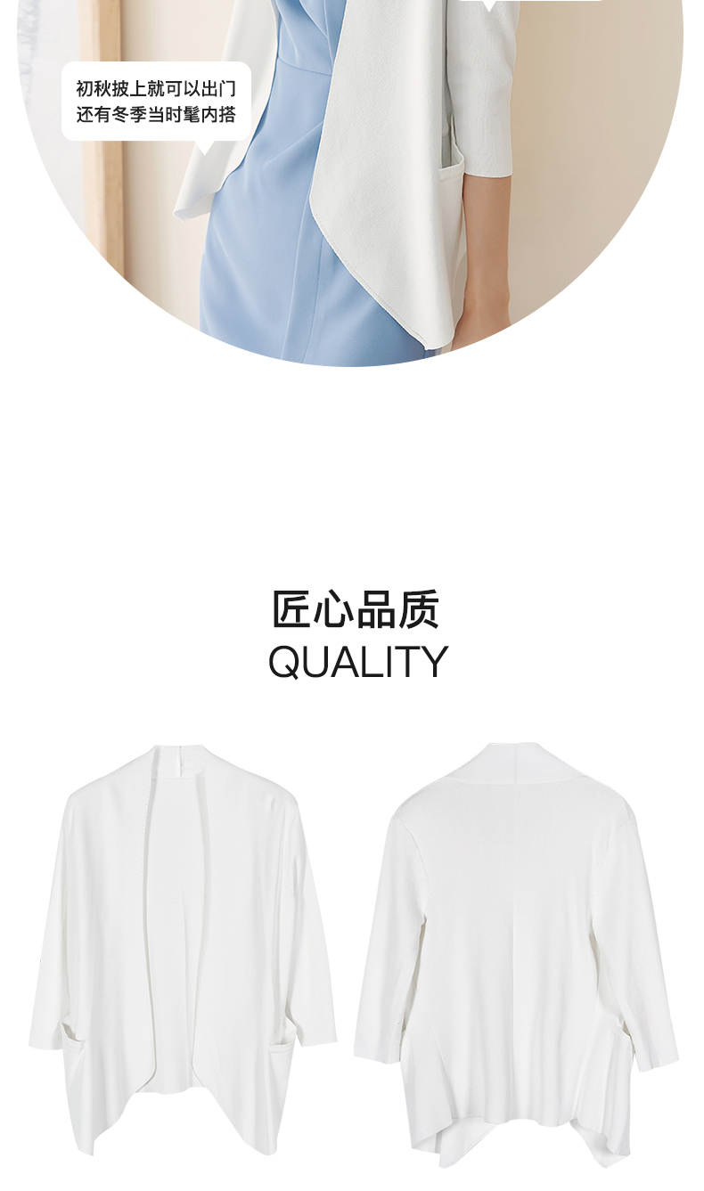 “呼吸感”云南木纤维开衫 七分袖百搭空调衫 透气舒适 亲肤吸湿 外搭七分袖针织开衫不规则外套女0944