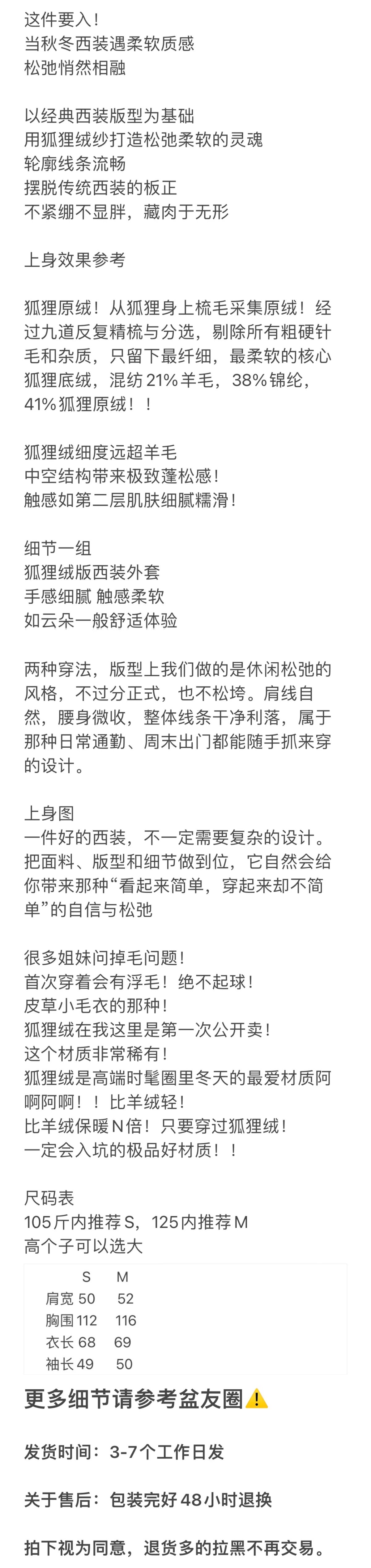 重磅推荐 狐狸绒两穿软西装外套 高端必入!年底压轴款