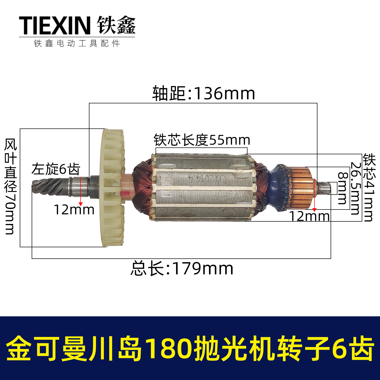 【货号02778】金可曼川岛180抛光机转子6齿汽车抛光打磨机电机抛光机配件