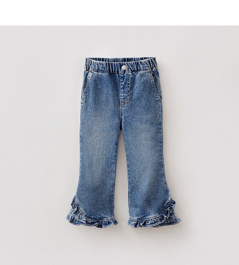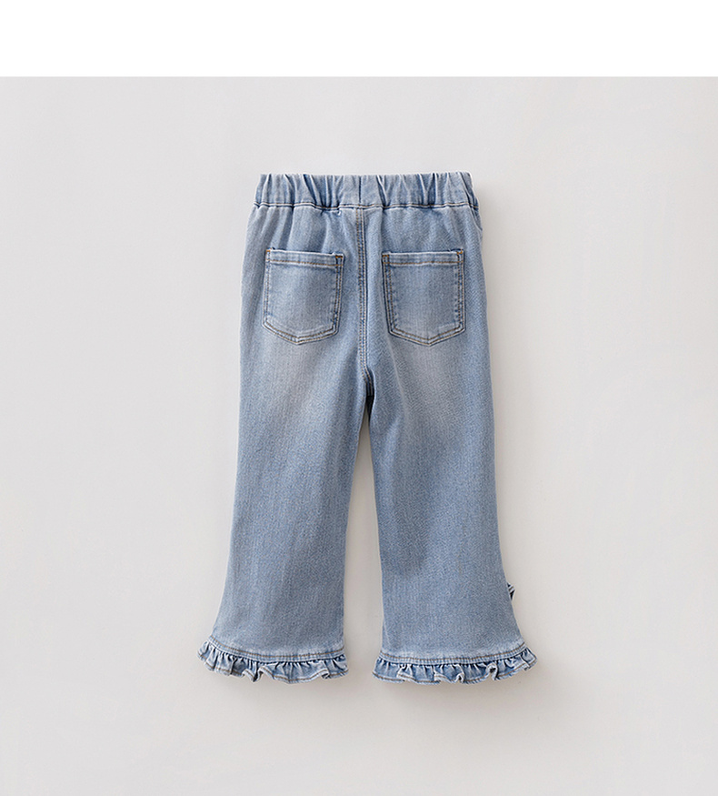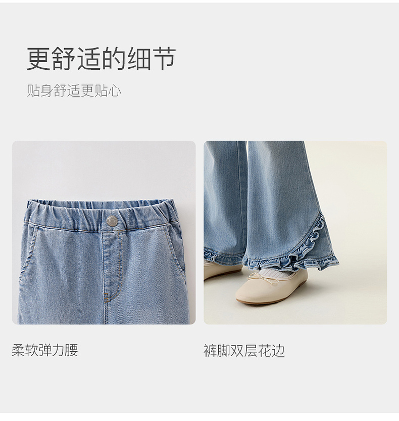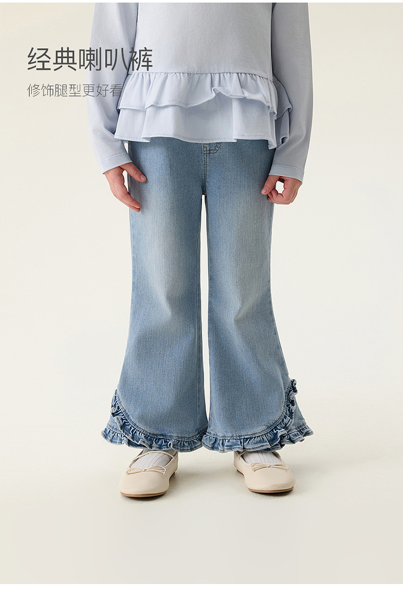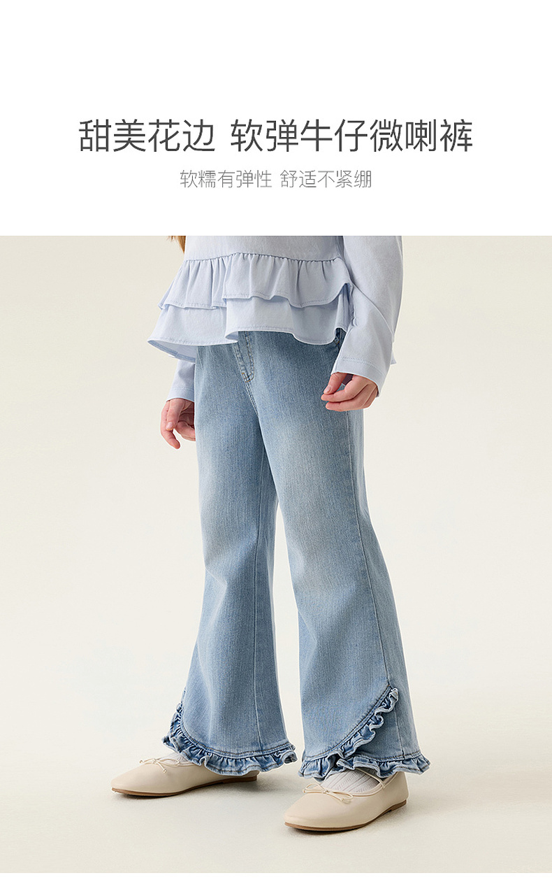 马克珍妮甜美花边女童轻弹牛仔微喇裤2026年春装新款560150