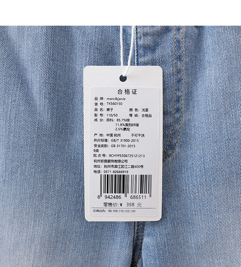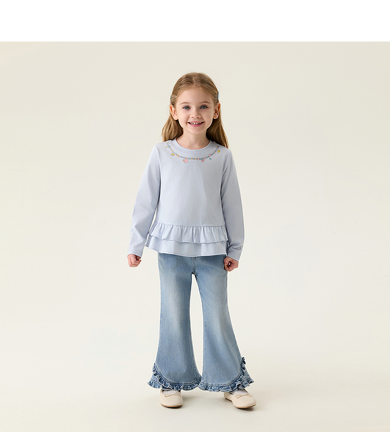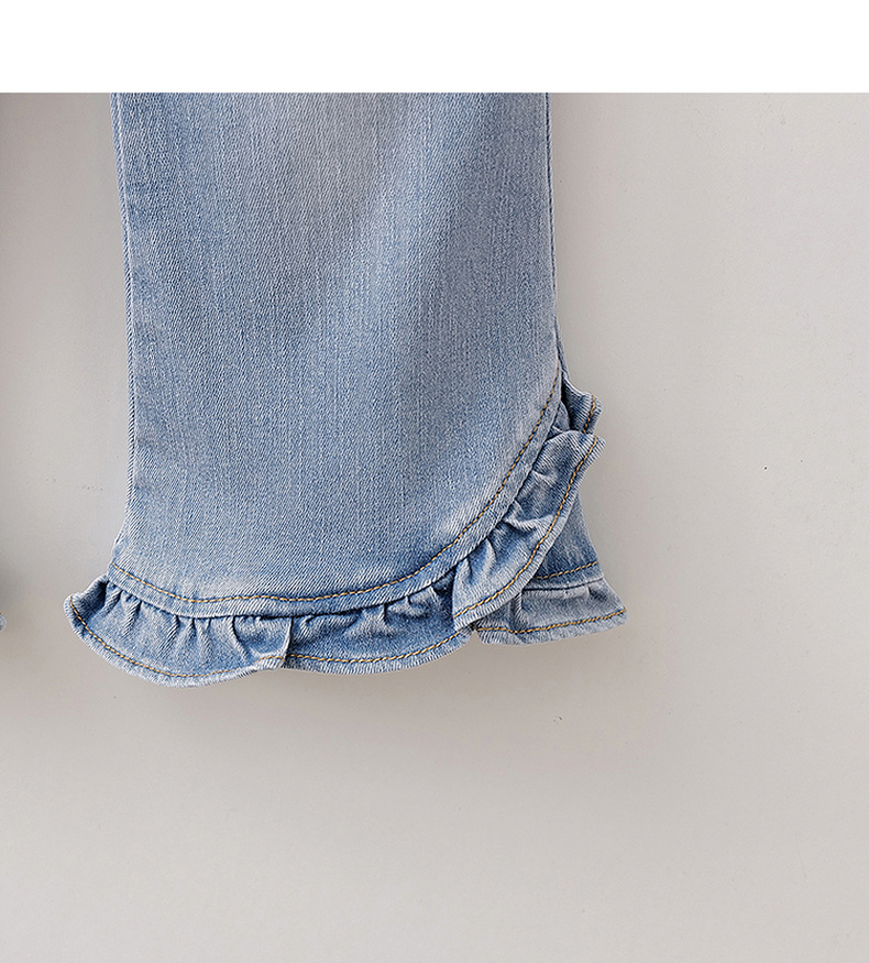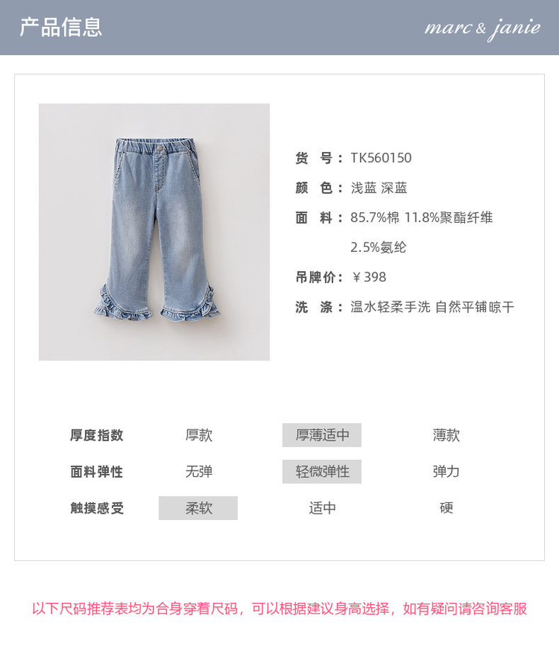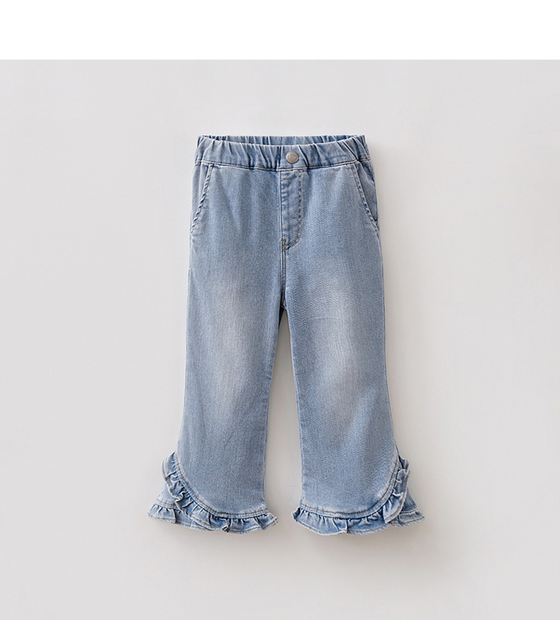 马克珍妮甜美花边女童轻弹牛仔微喇裤2026年春装新款560150