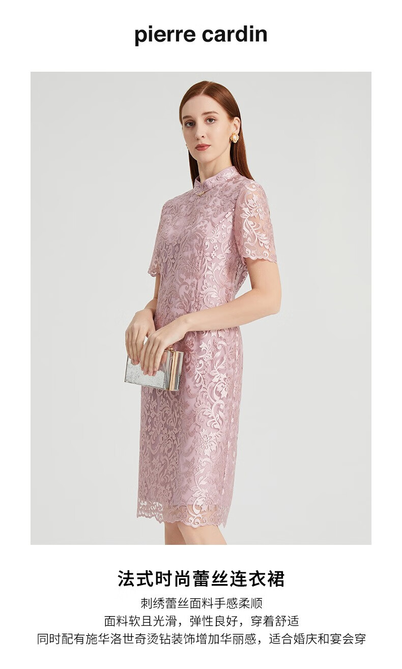 皮尔卡丹女装春季淑女优雅浪漫蕾丝连衣裙P2204D2096F0