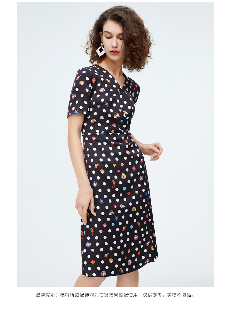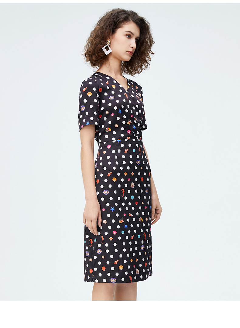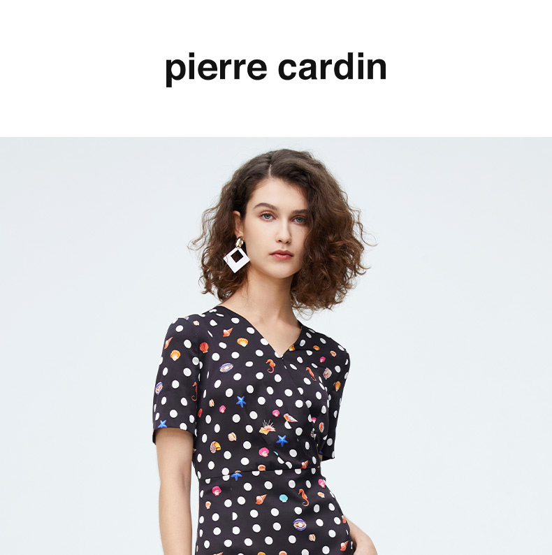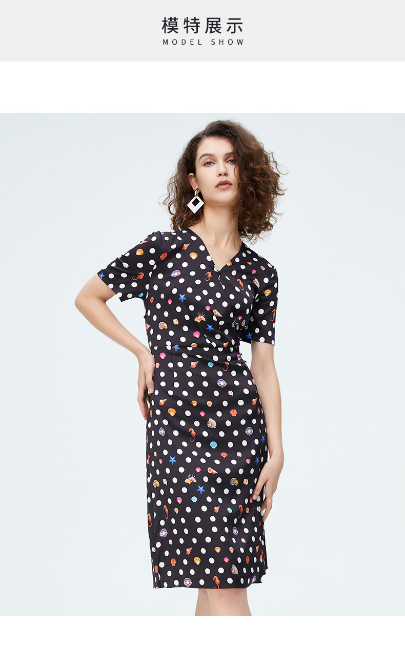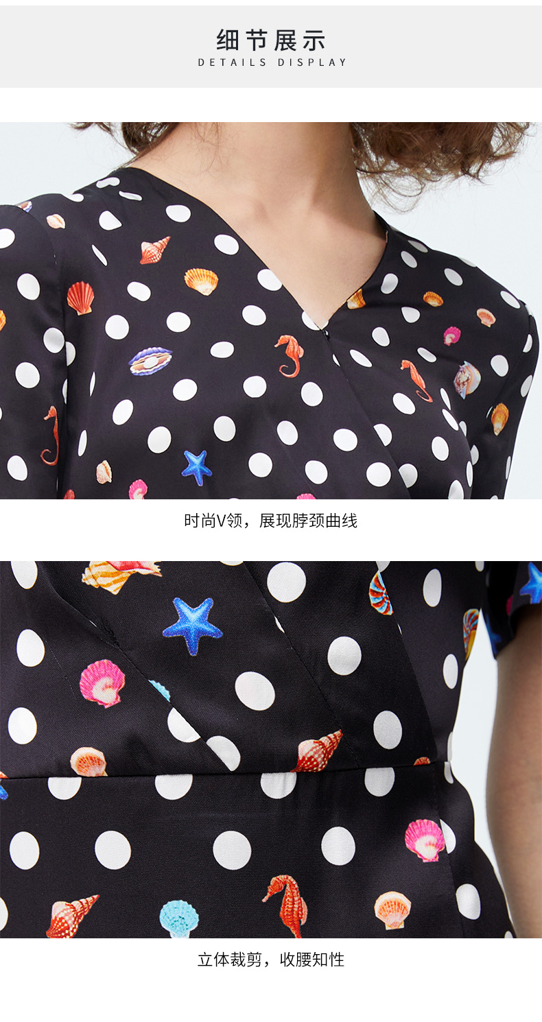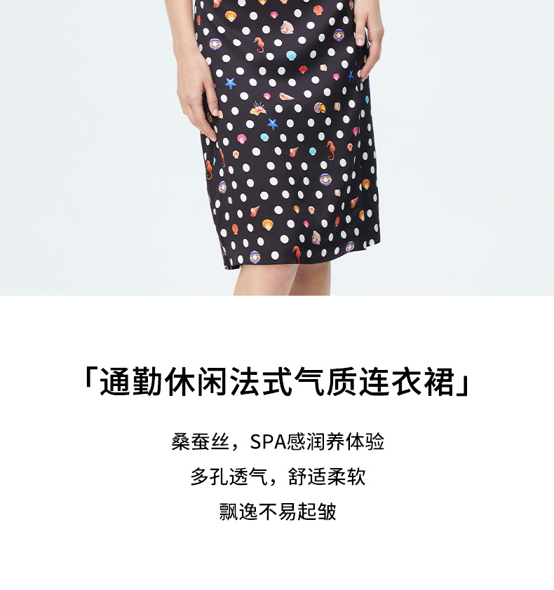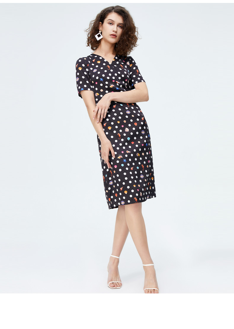 皮尔卡丹女装时尚波点修身通勤短袖真丝连衣裙P4227D4131B3