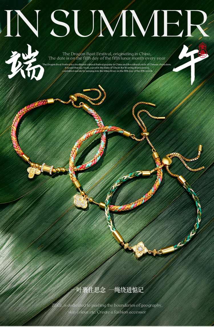 ZEGL端午节五彩绳柿柿如意手链女款手工编织吉祥安康手绳礼物实用