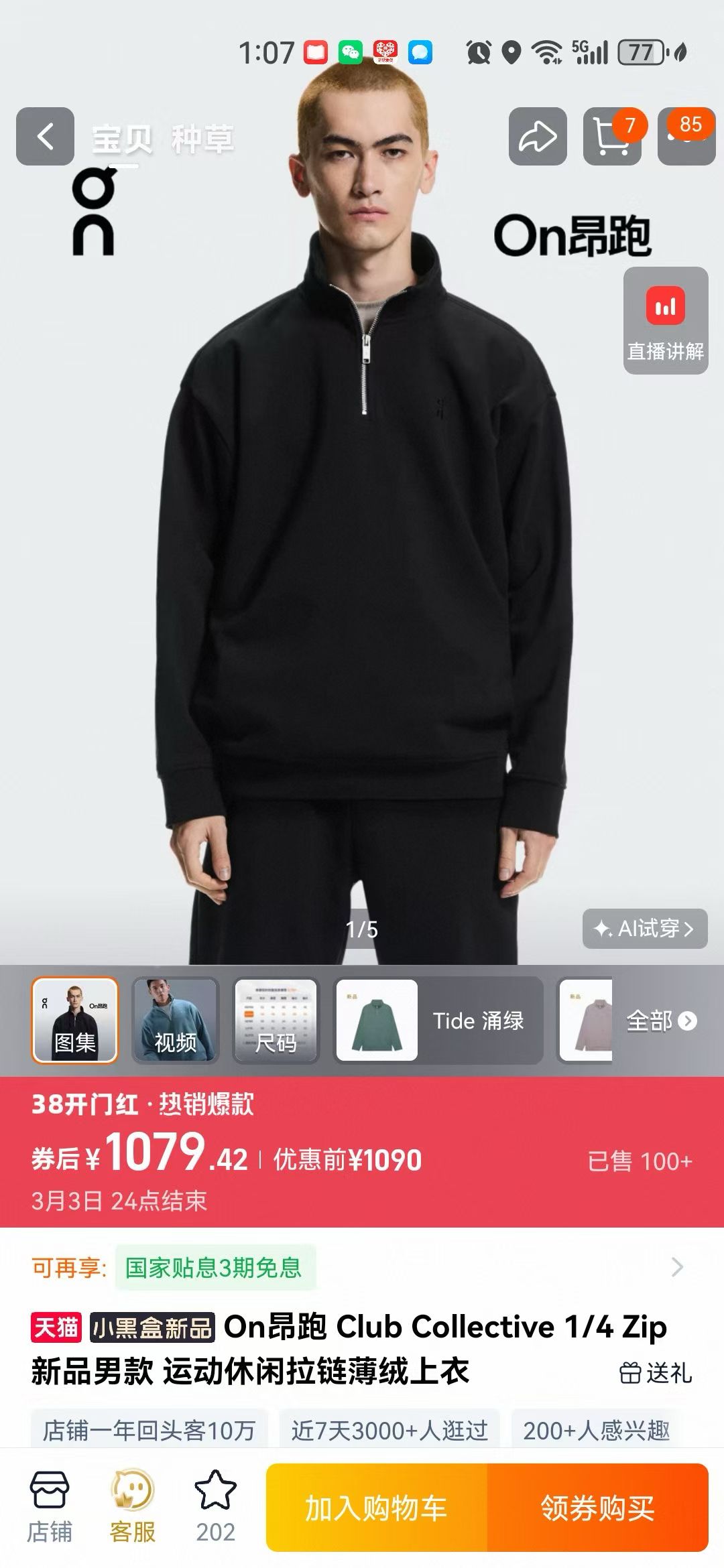 现货 昂跑on的小薄绒春款运动拉链上衣. 专柜1000+