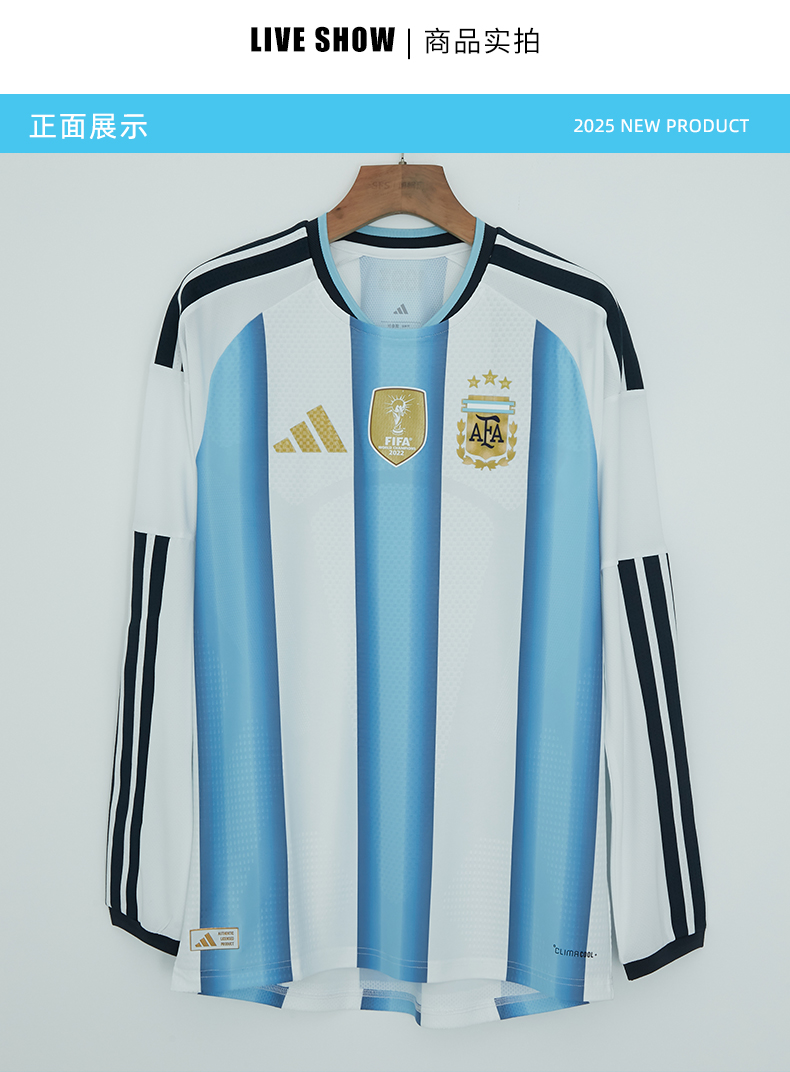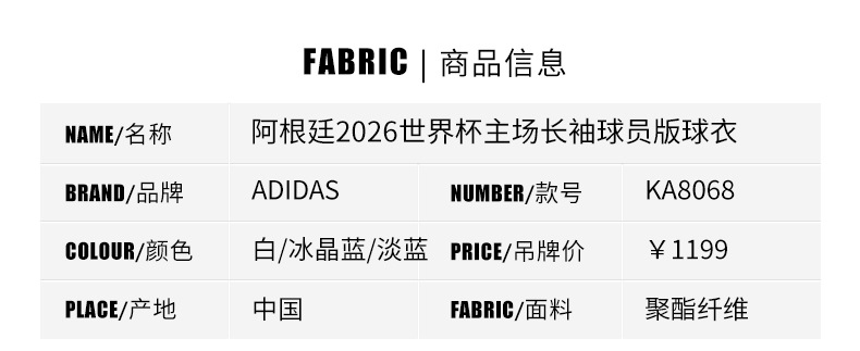 SFS阿迪达斯2026世界杯阿根廷主场长袖球员版球衣足球服男 KA8068
