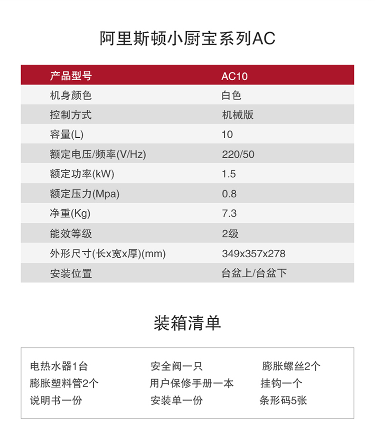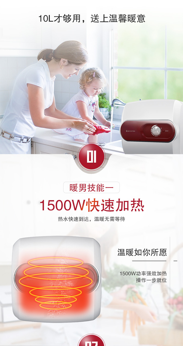 阿里斯顿(ARISTON)电热水器 10升 厨宝 1500W速热 下出水 小厨宝AC10UE1.5