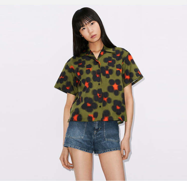 KENZO 高田贤三 女士棉质徽标印花方形短袖衬衫 混色 FD52 CH081 9A3 50