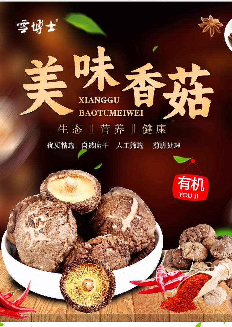 雪博士||有机香菇(80g瓶)香菇干东北有机干货干蘑菇菌类