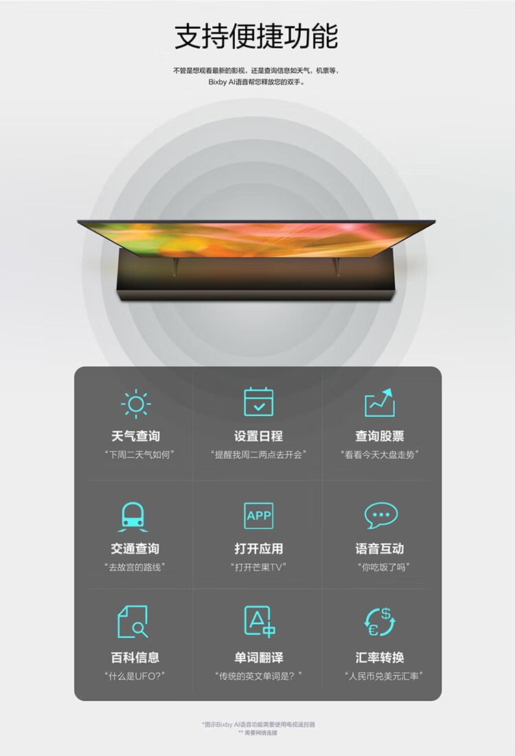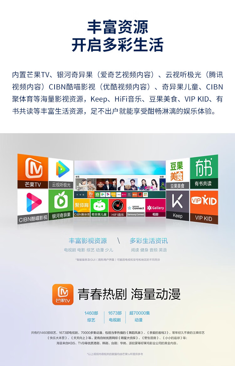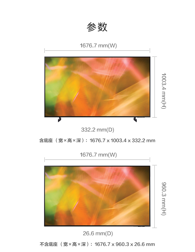 三星(SAMSUNG)75英寸 4K超高清HDR 超薄全面屏 AI智能补帧 杜比音效 平板液晶电视 UA75AU8000JXXZ