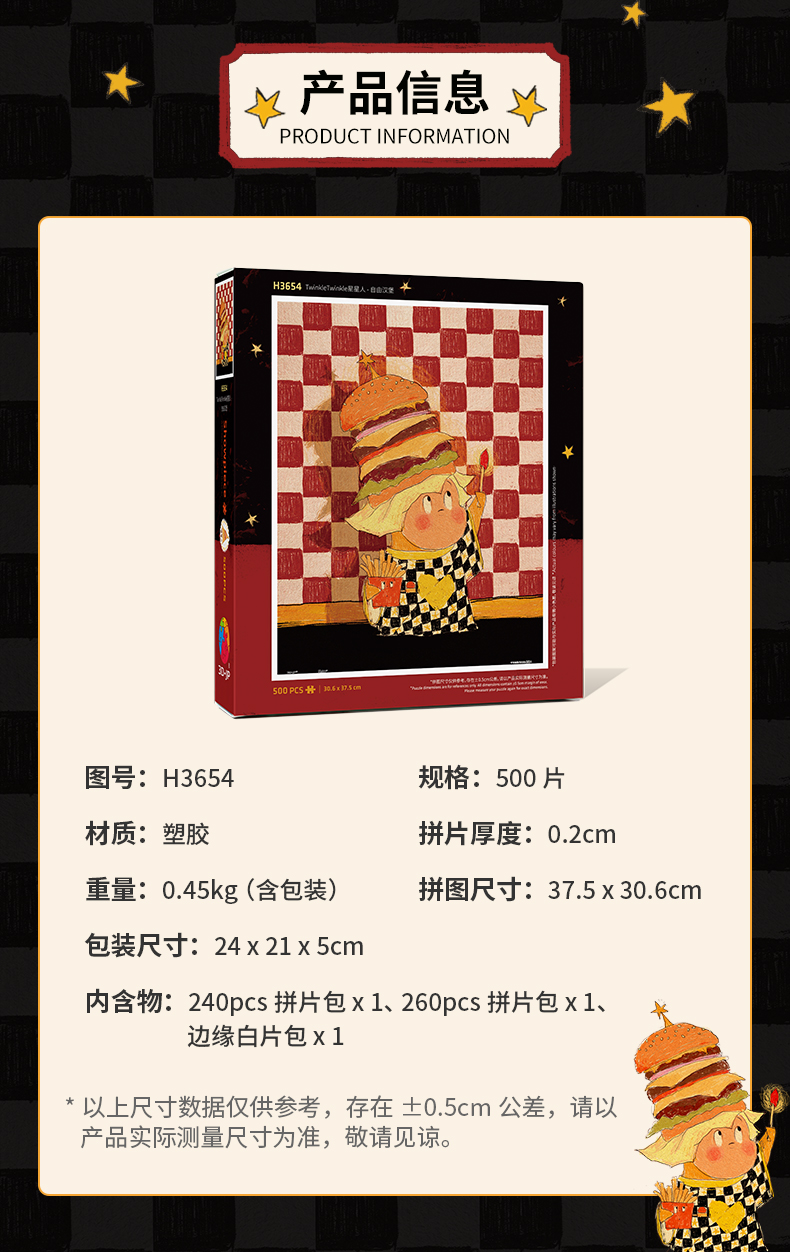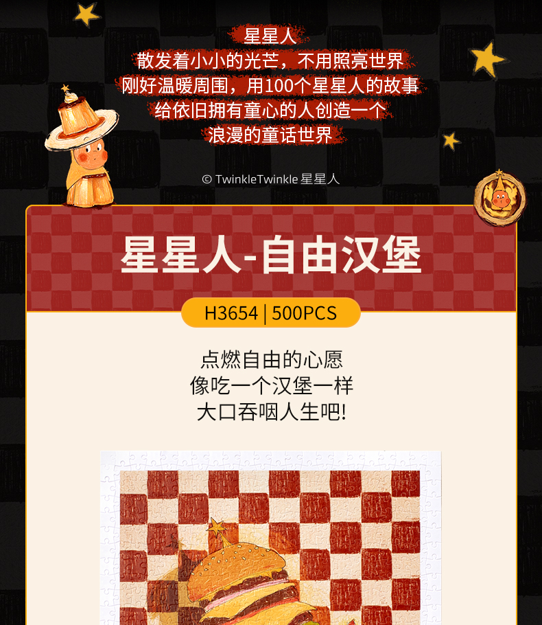 【赠品勿拍】500片 平面拼图 H3654 TwinkleTwinkle星星人-自由汉堡