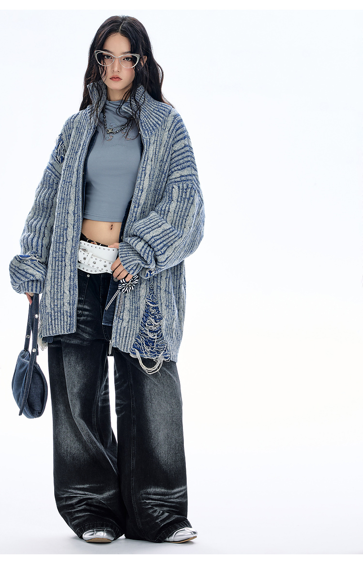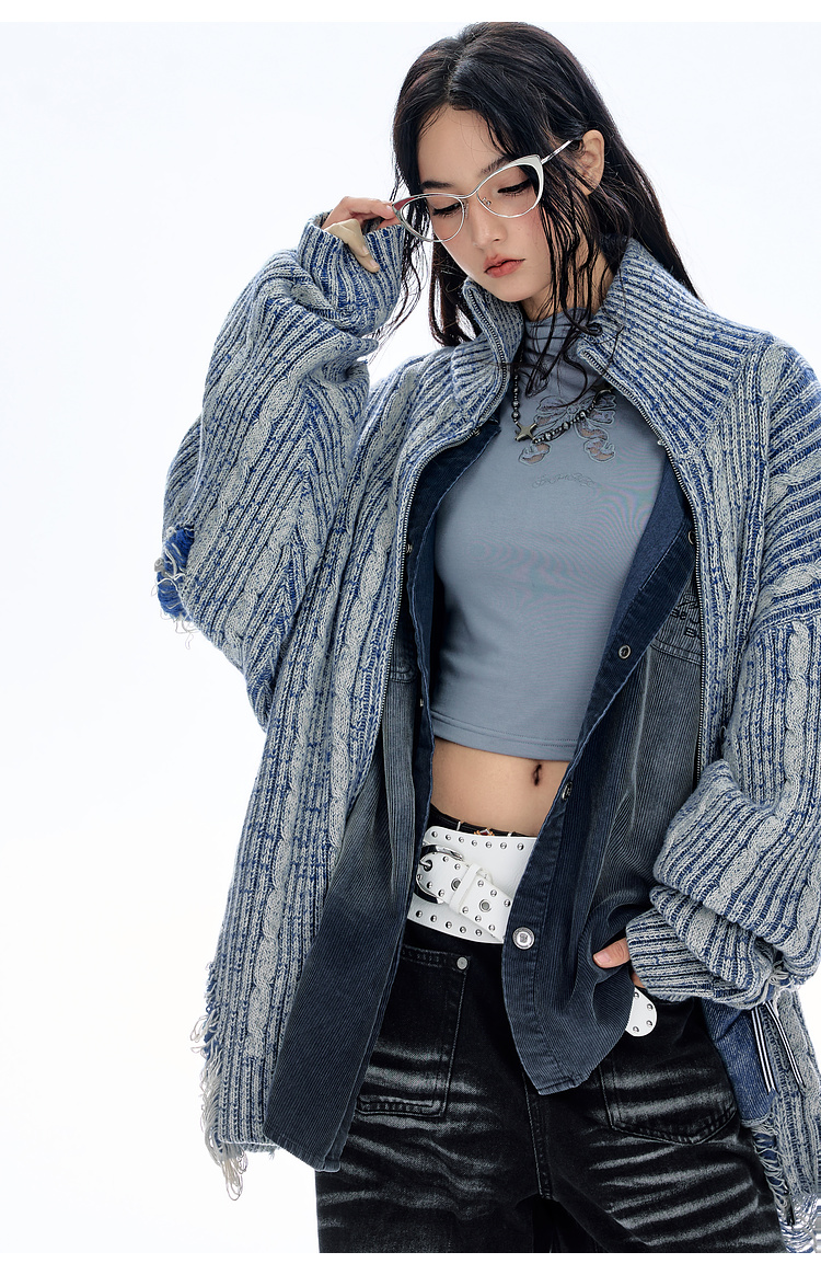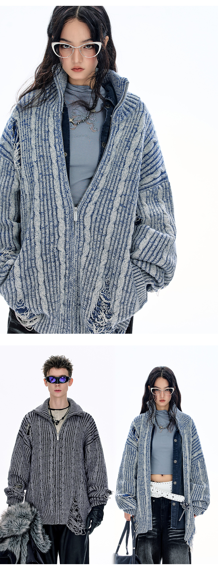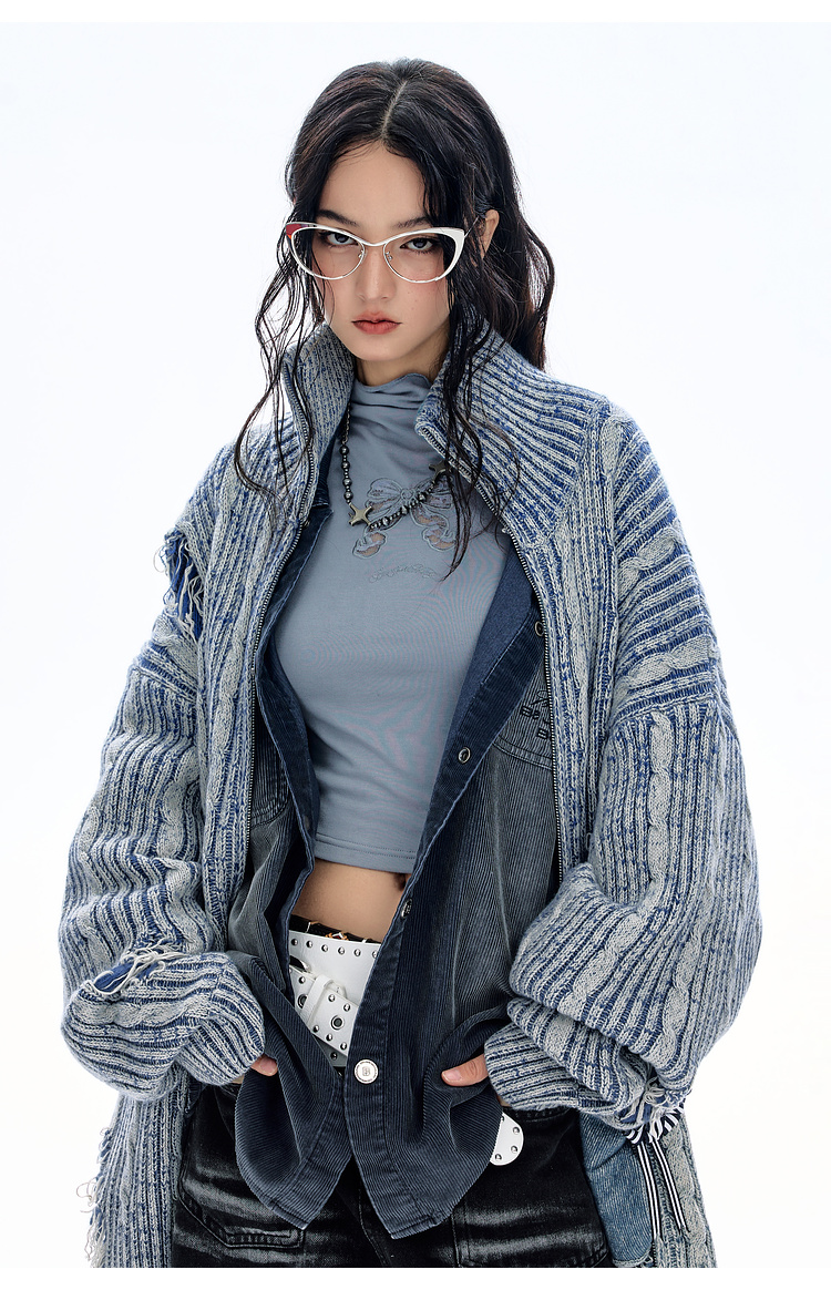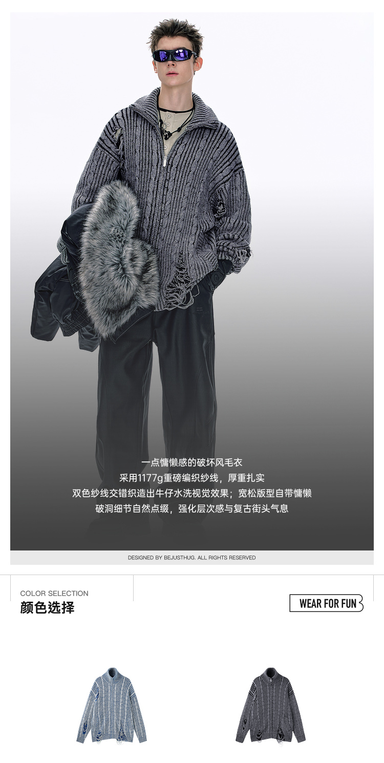BJHG不计后果复古做旧毛衣男款冬季新款重磅仿牛仔水洗保暖外套女