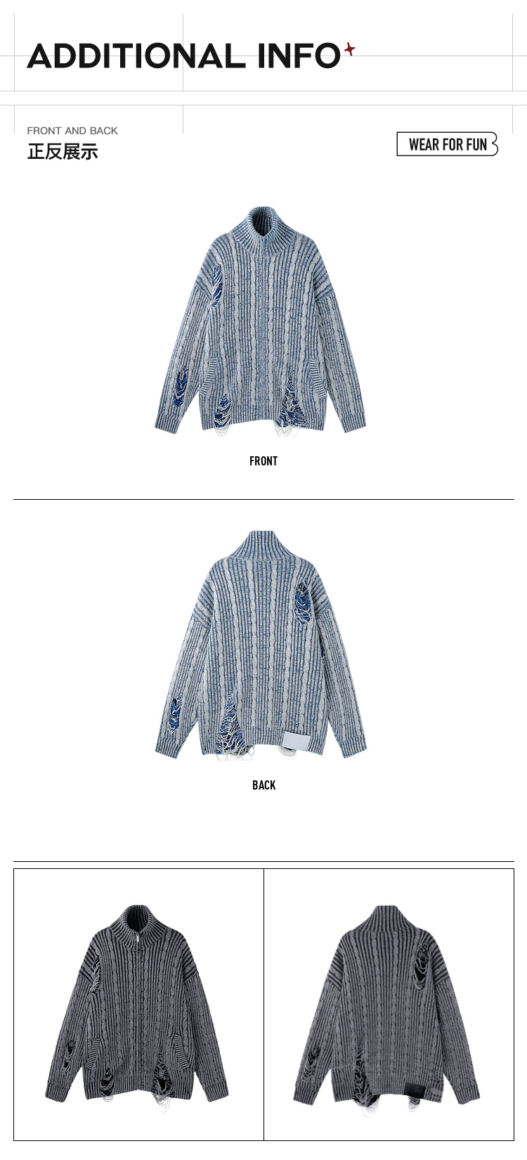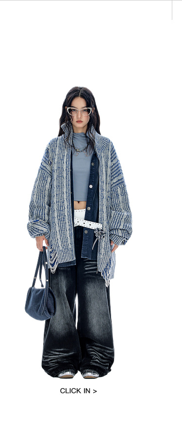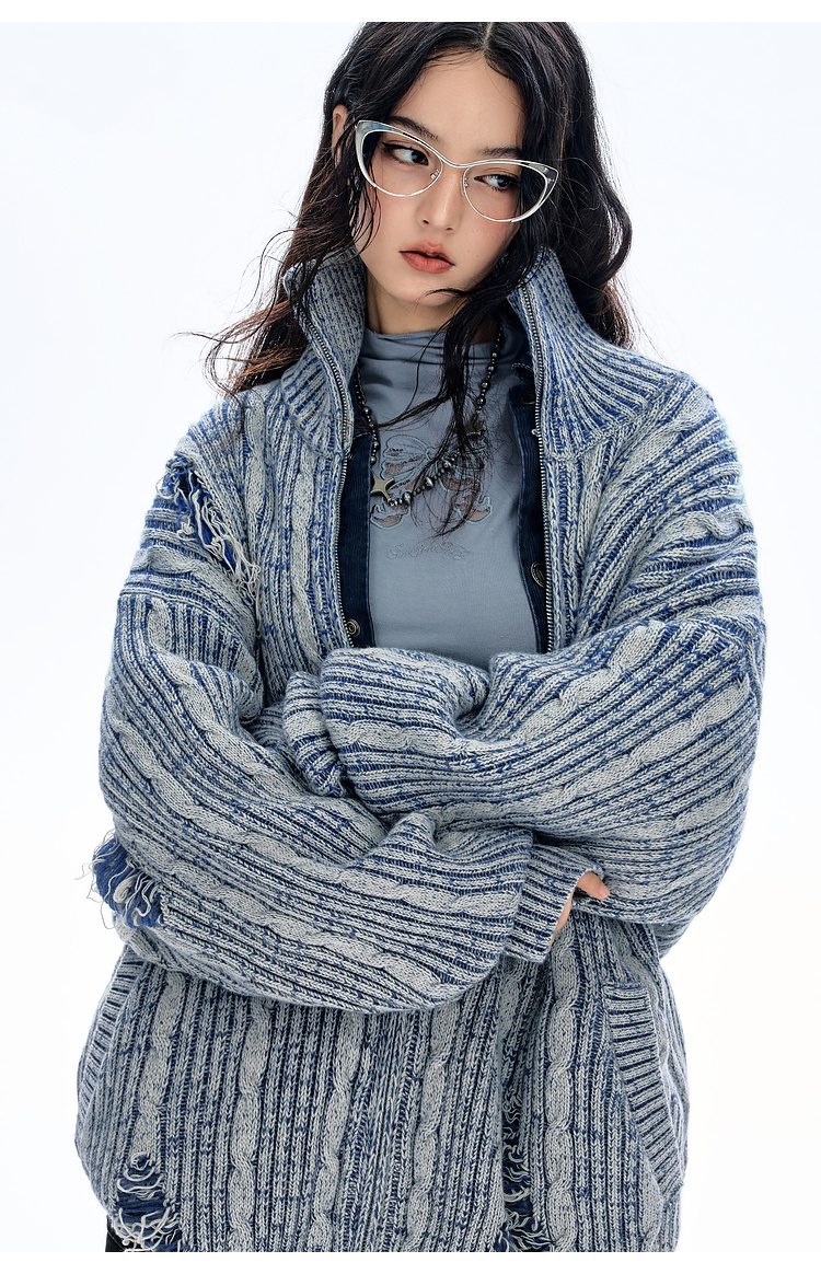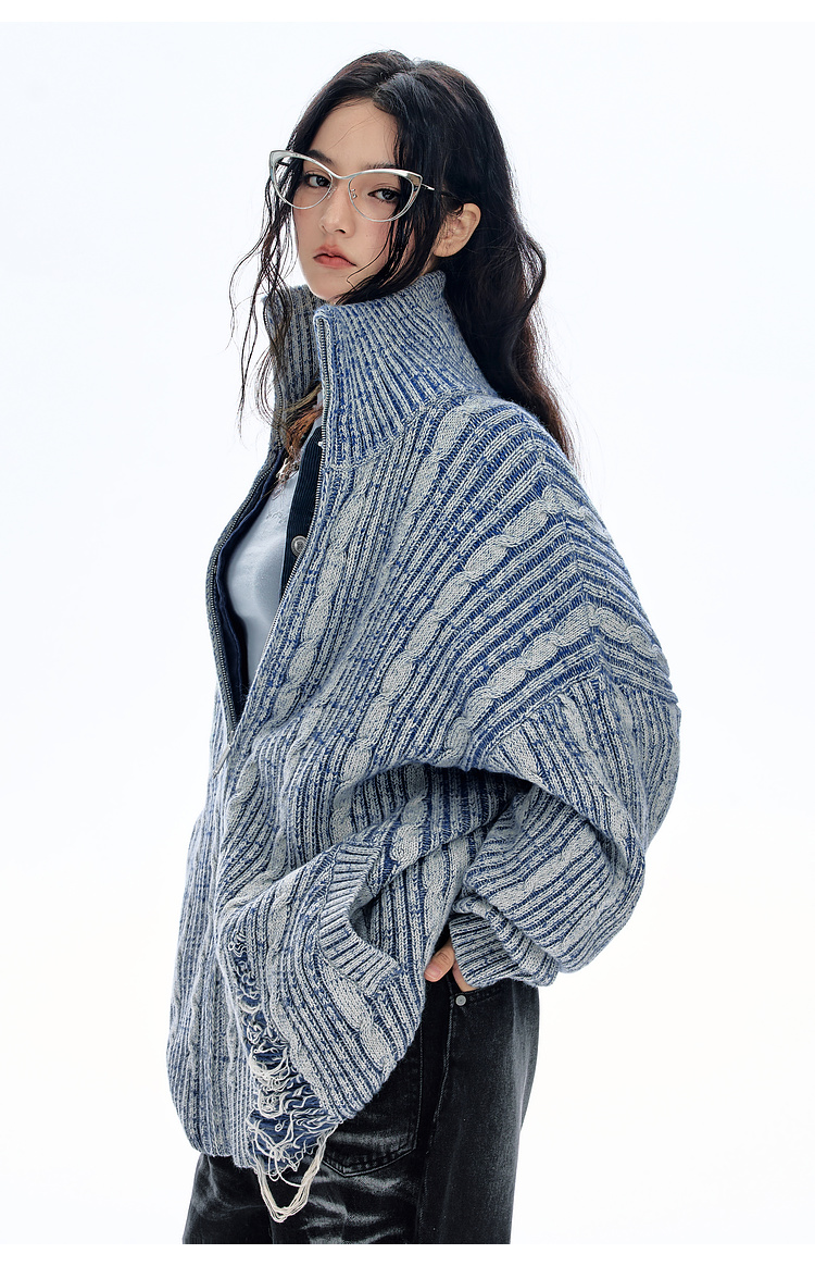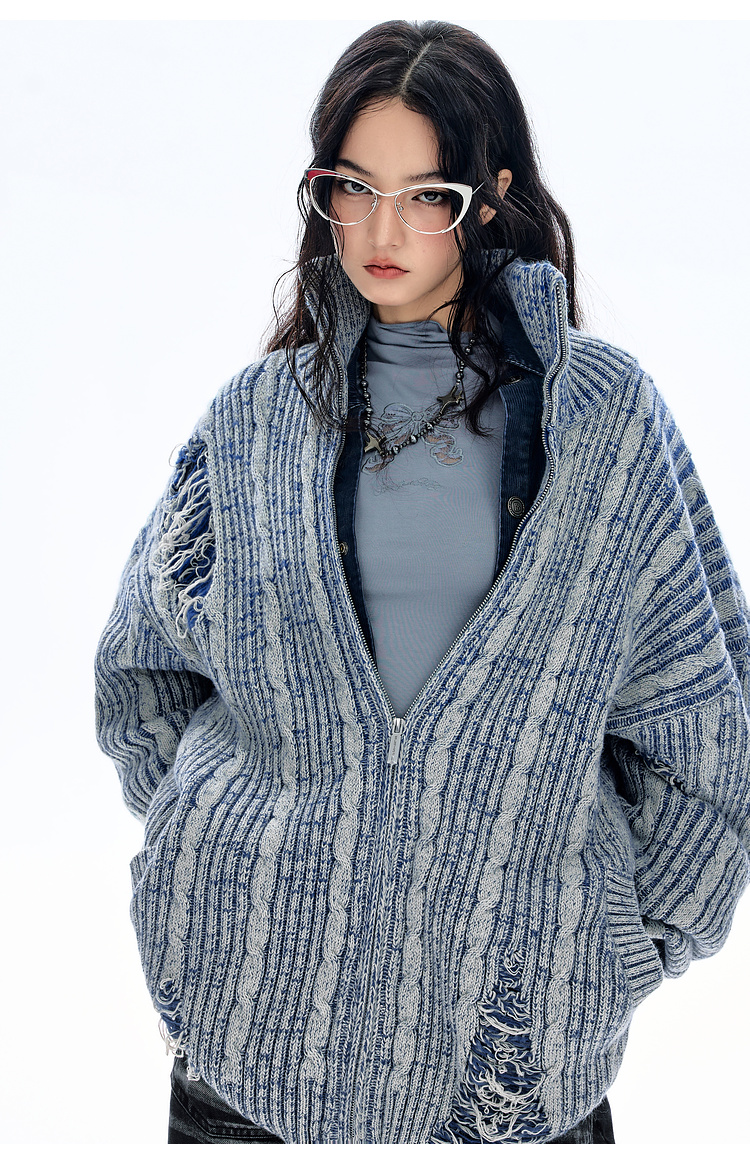 BJHG不计后果复古做旧毛衣男款冬季新款重磅仿牛仔水洗保暖外套女