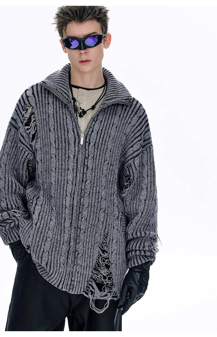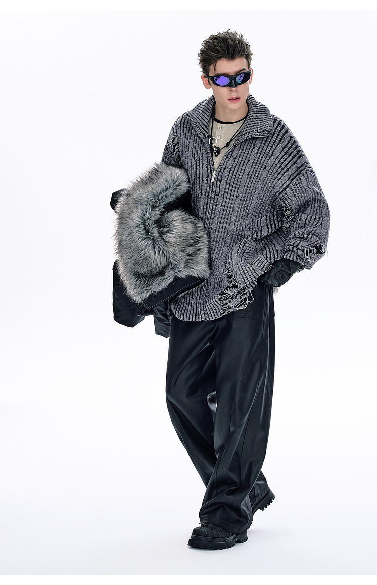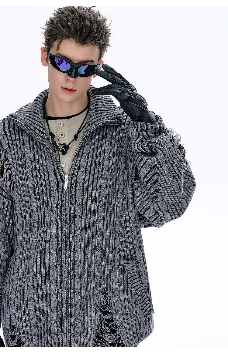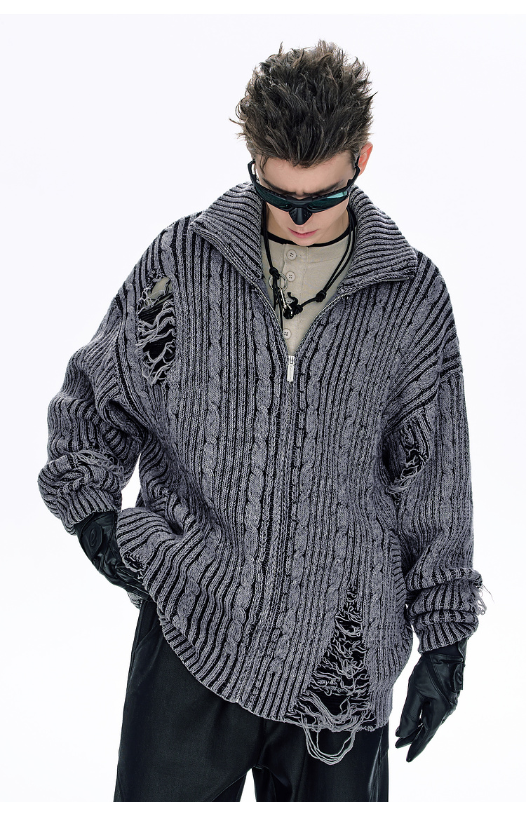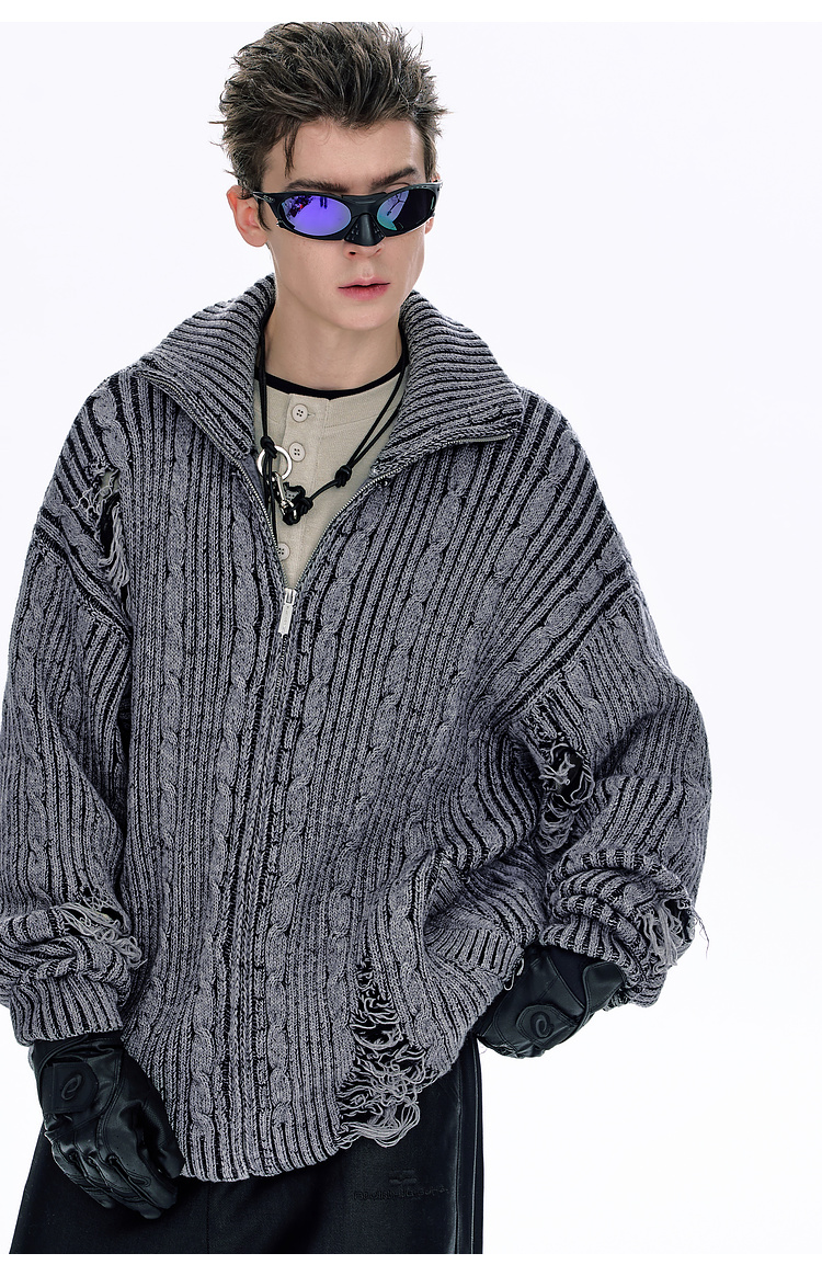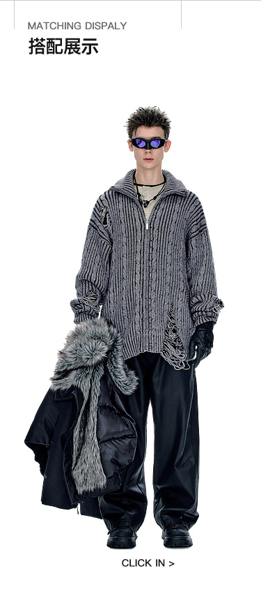 BJHG不计后果复古做旧毛衣男款冬季新款重磅仿牛仔水洗保暖外套女