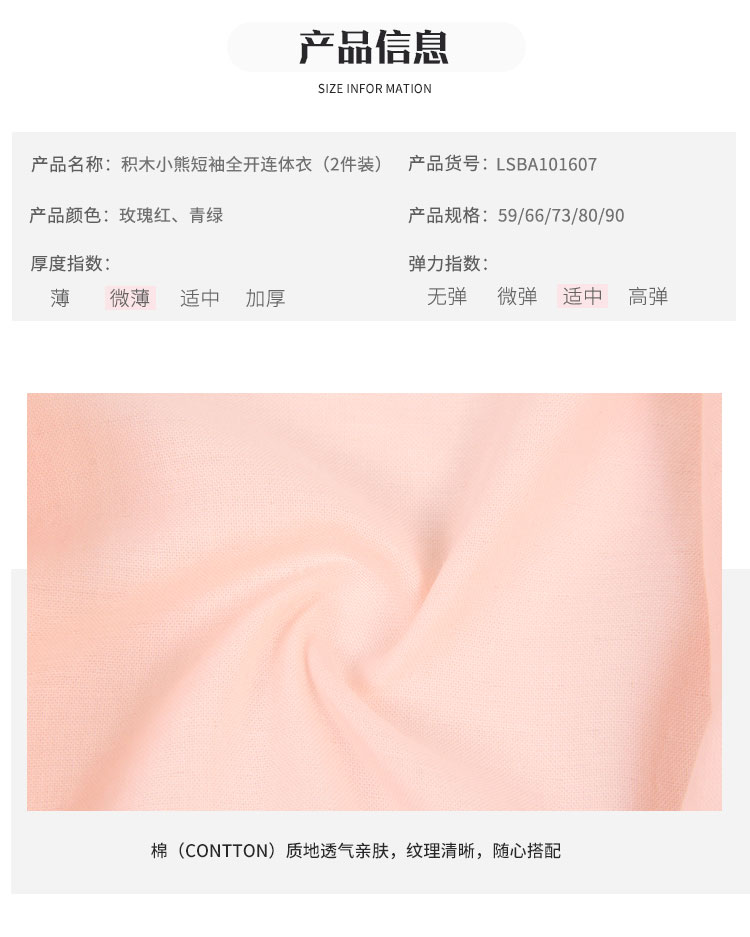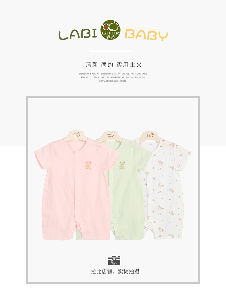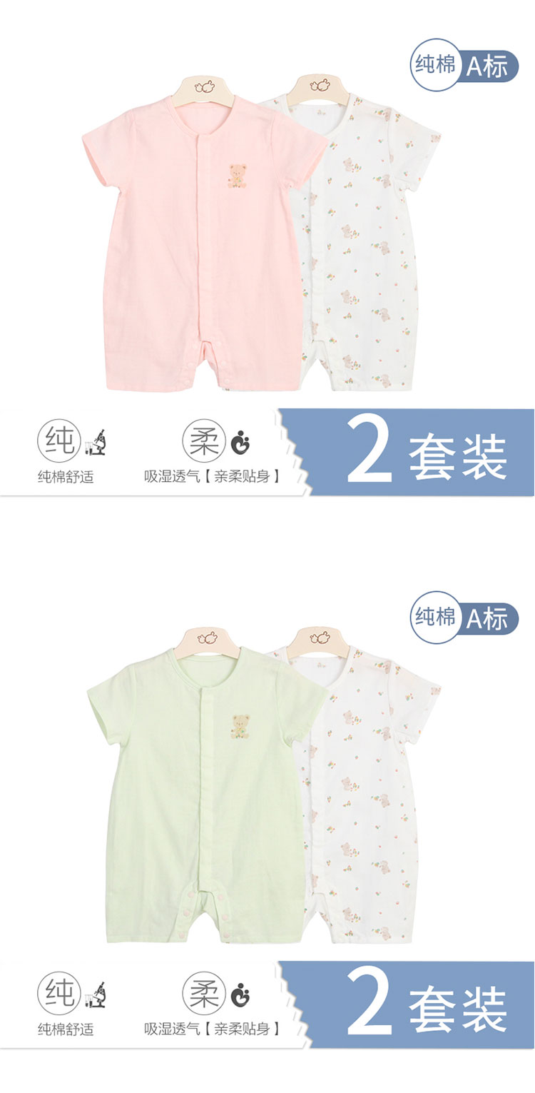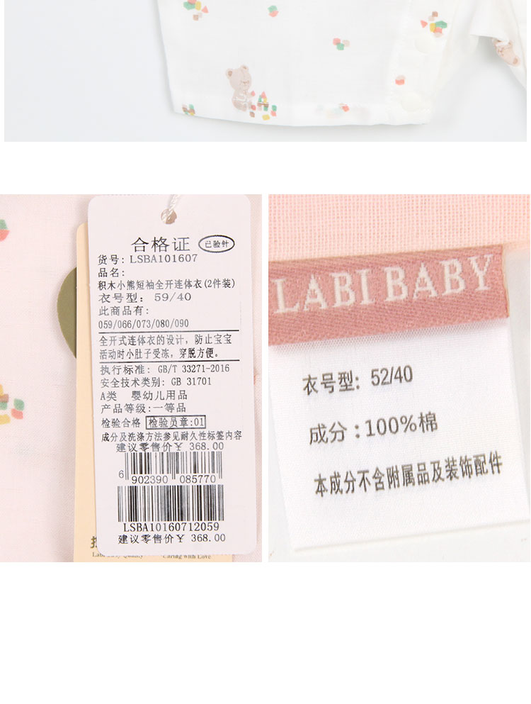 拉比-内衣类(夏)C9积木小熊短袖全开连体衣