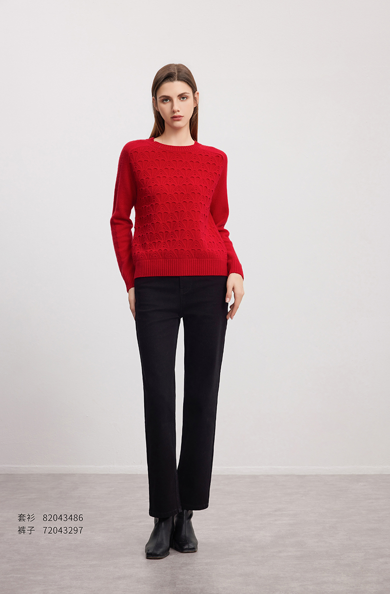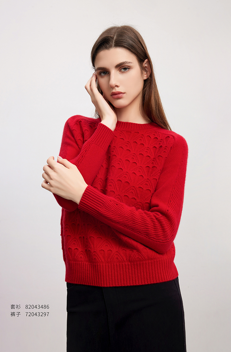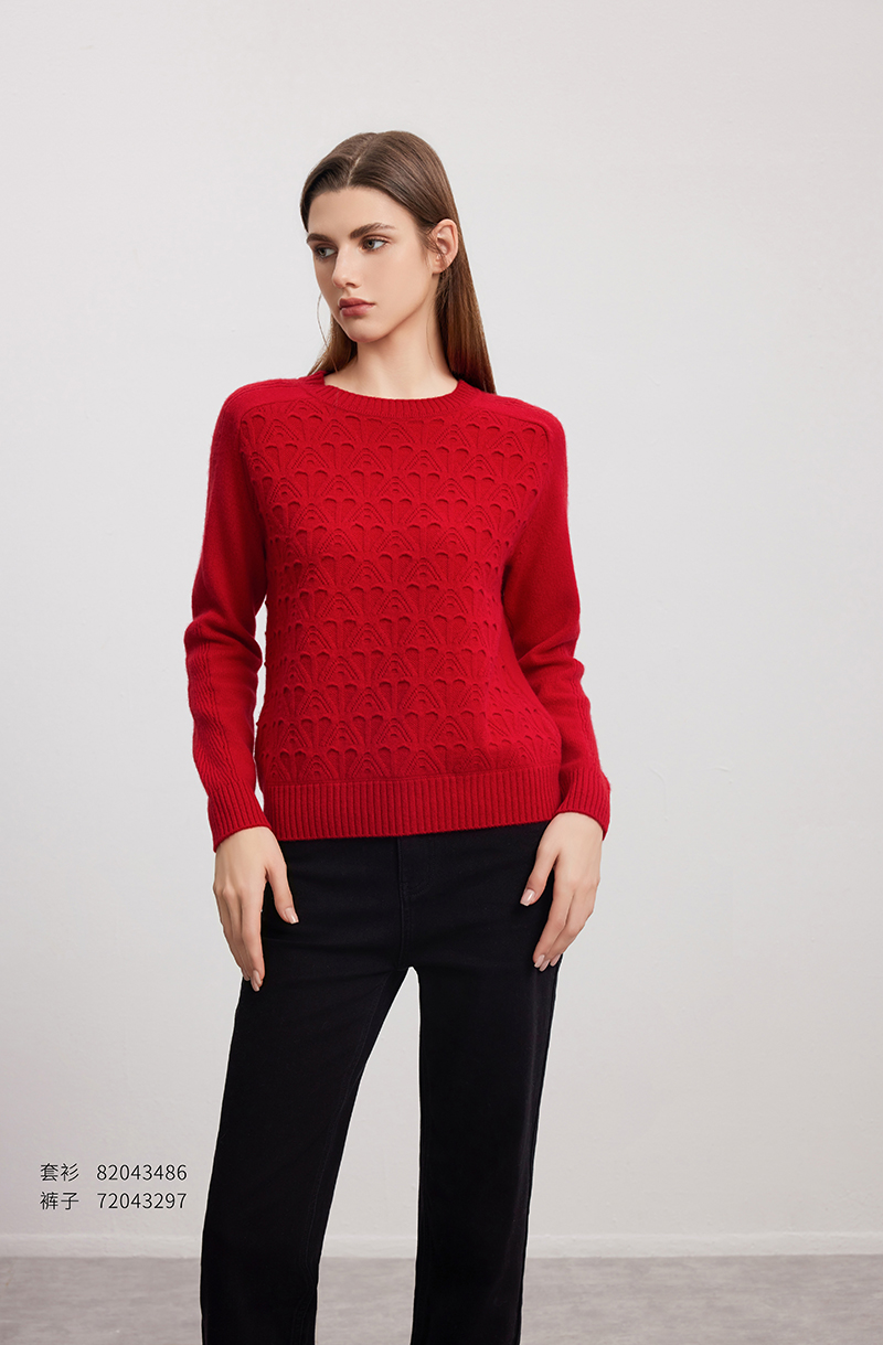 【立体绞花羊绒衫】羊绒世家秋冬新款女士100%山羊绒圆领内搭保暖针织毛衣