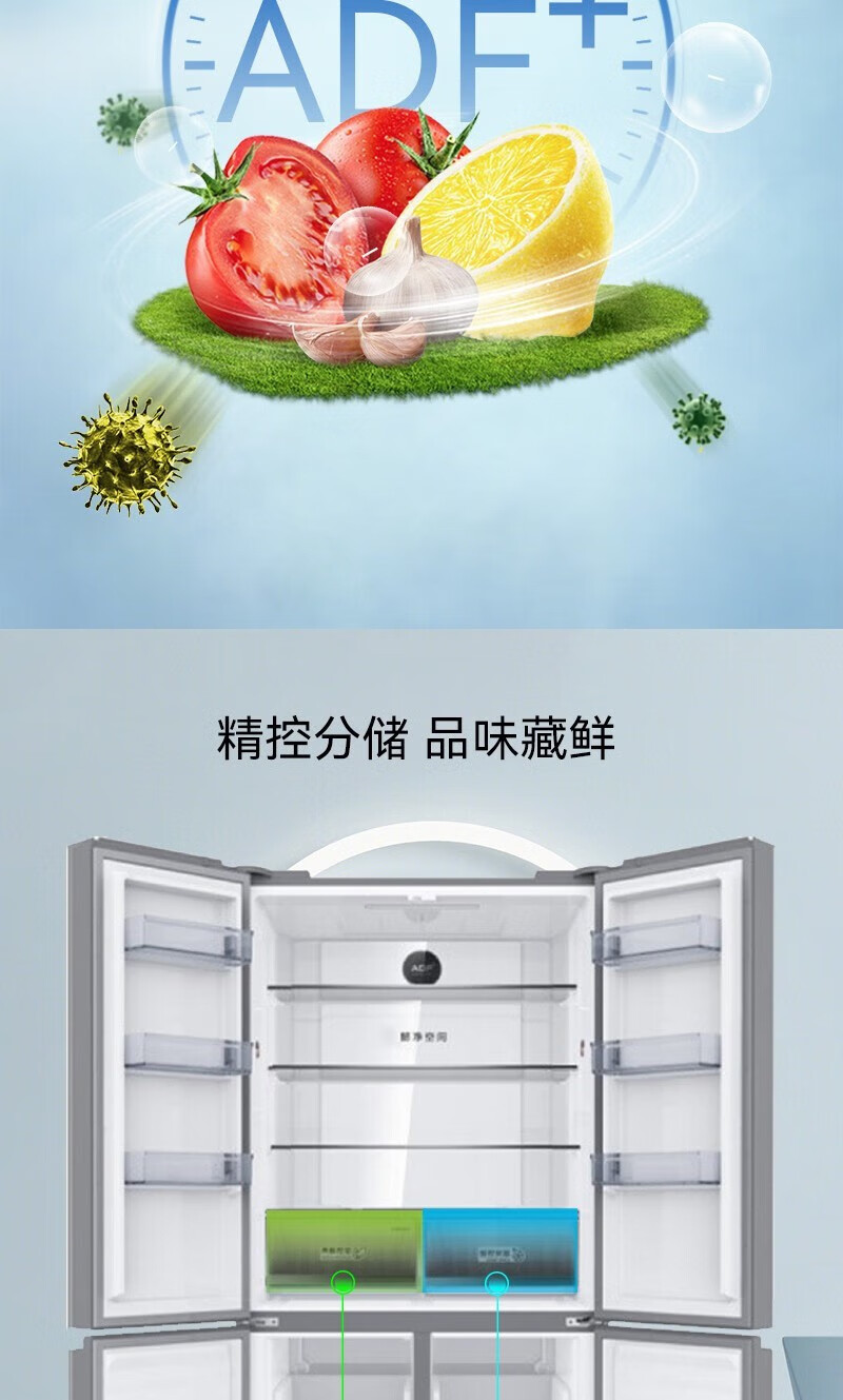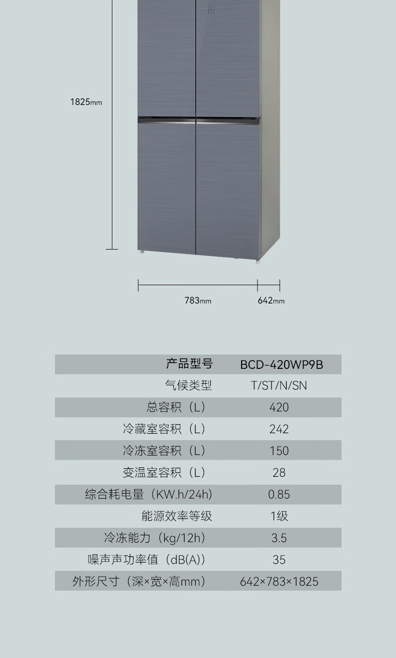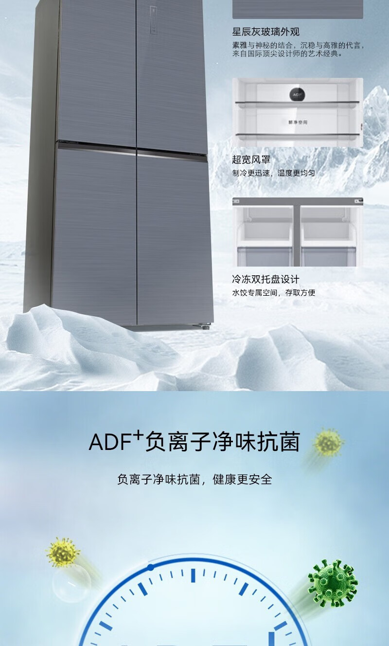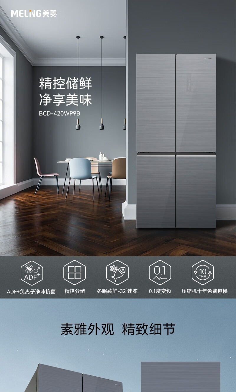 美菱(MELING) 420升变频十字对开门冰箱 一级能效风冷无霜家用双变频钢化玻璃门体 星辰灰 BCD-420WP9B #62