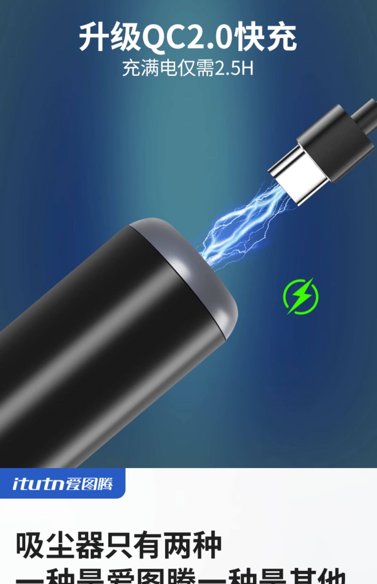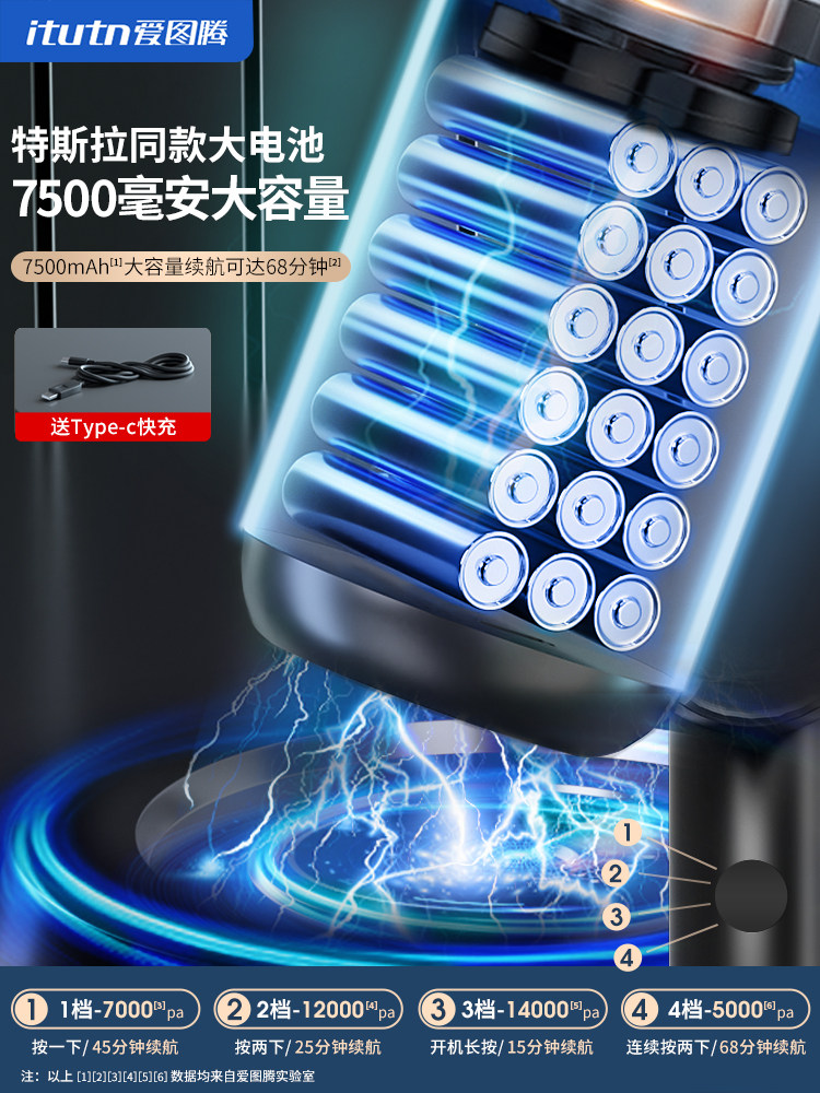 Itutn爱图腾新款金属无线车载吸尘器大吸力小型手持吹气