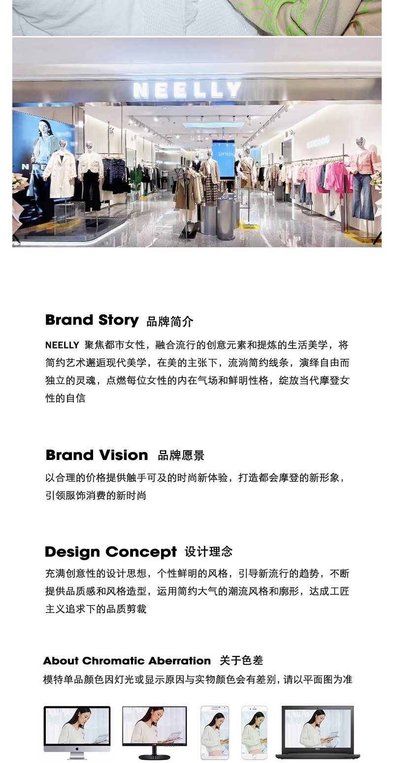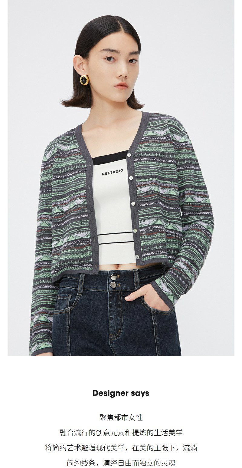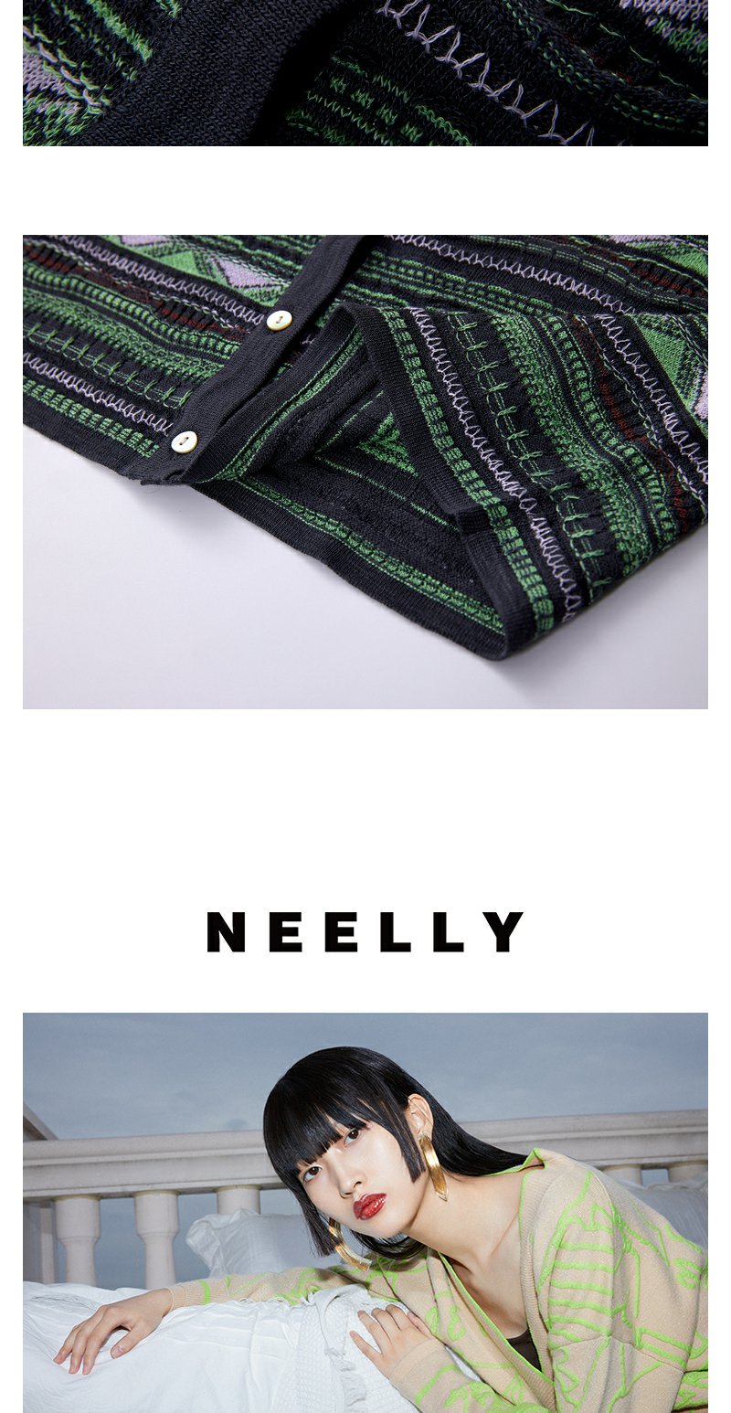 NEELLY纳俪商场同款V领长袖针织开衫女秋季单排扣通勤时尚薄外套