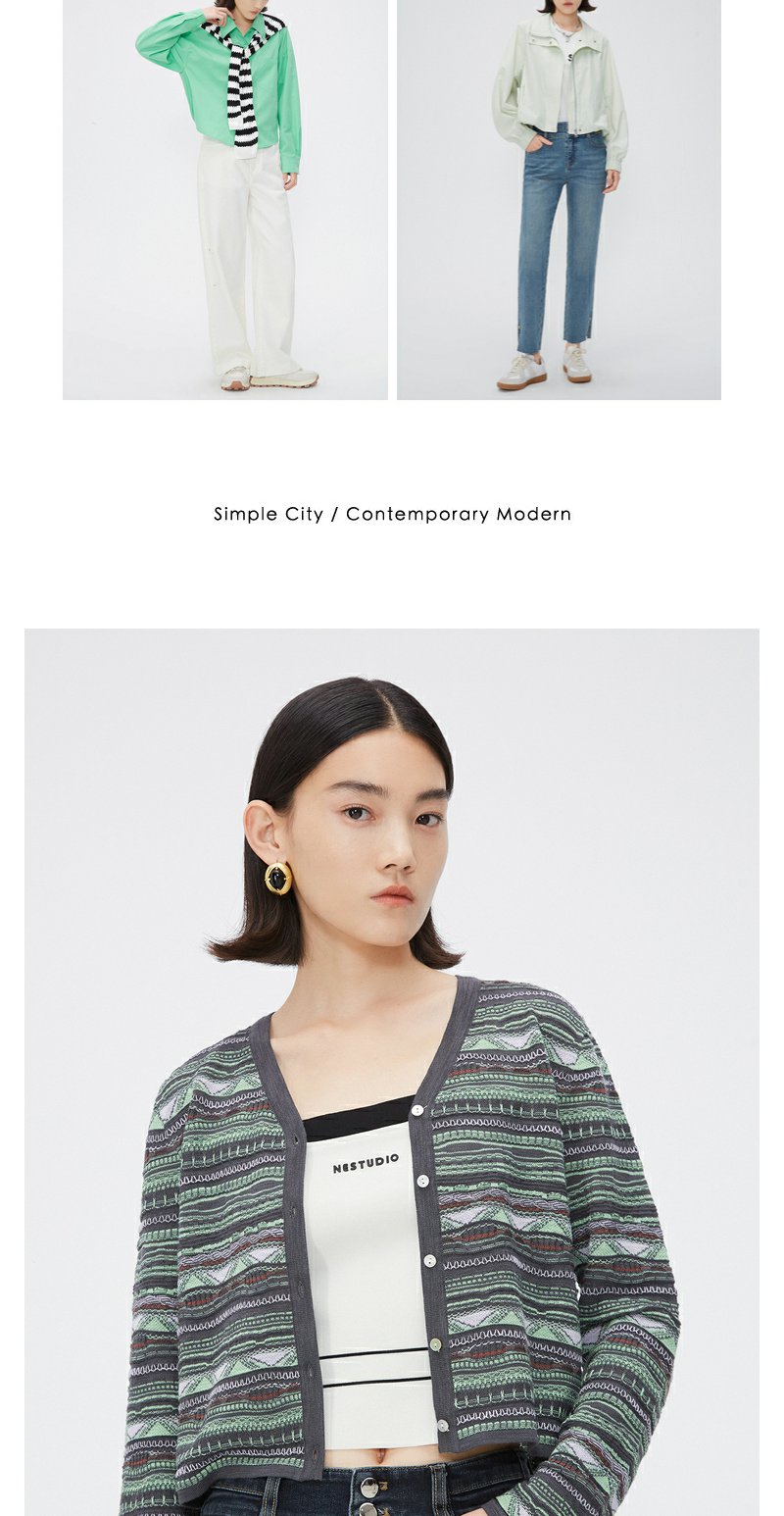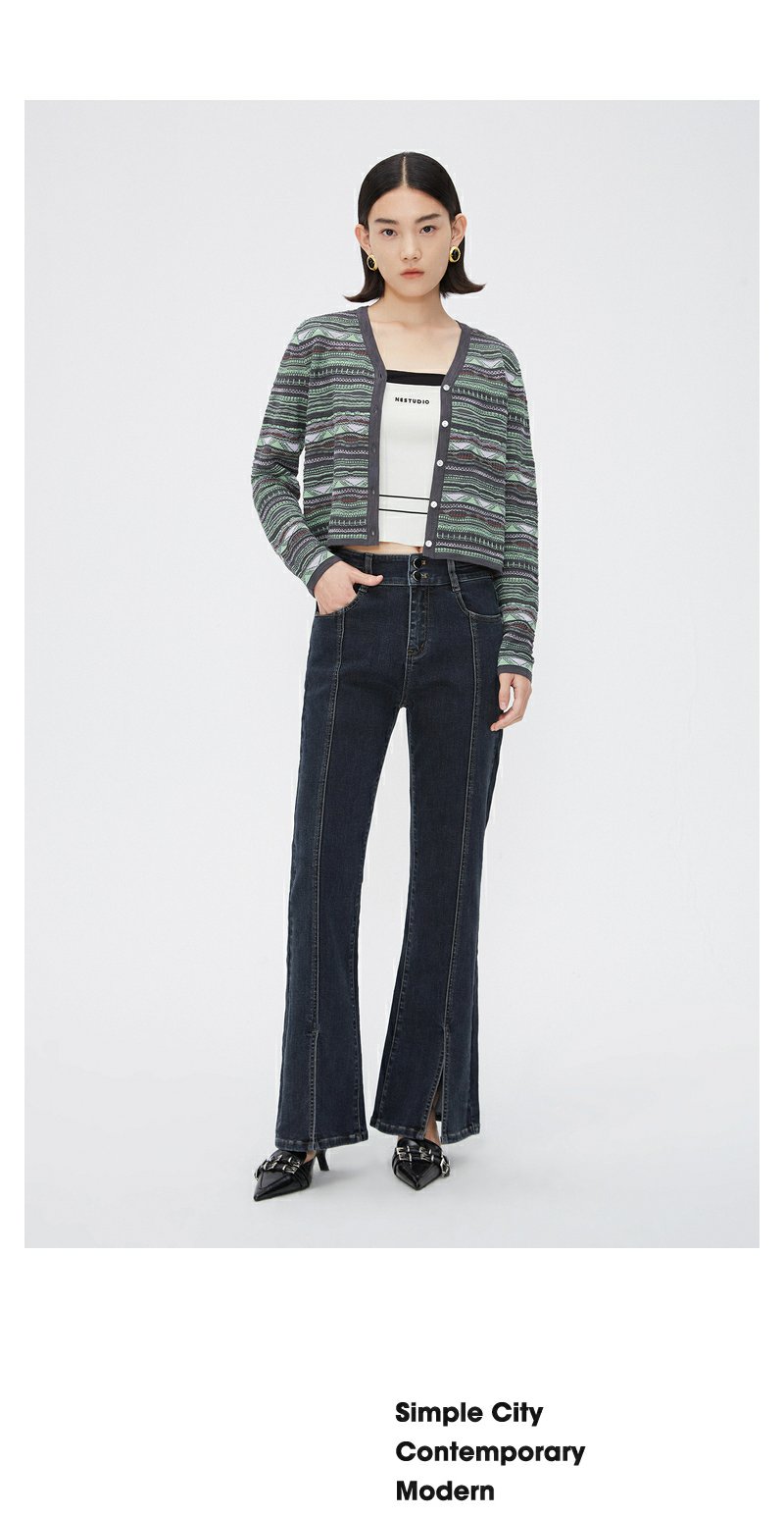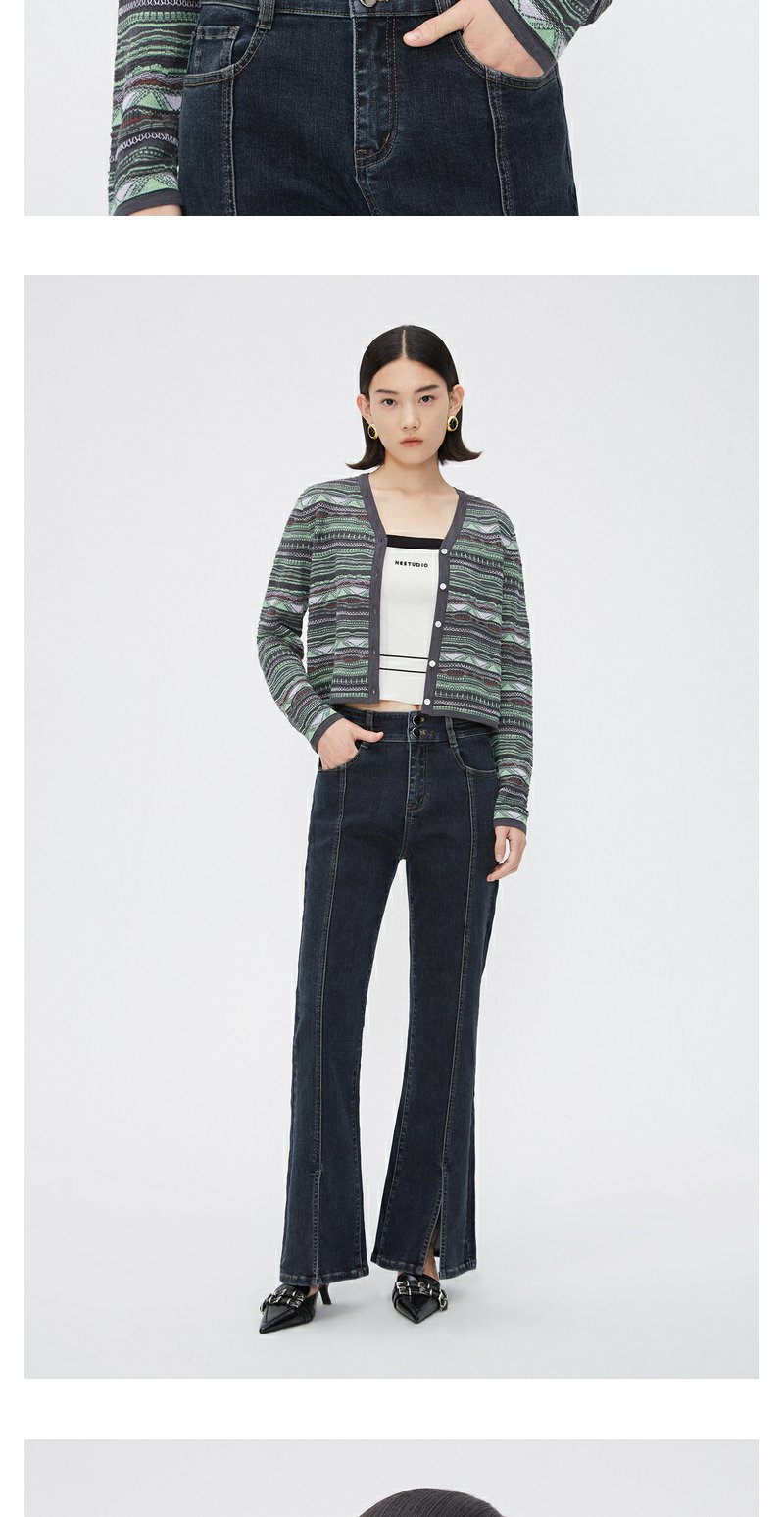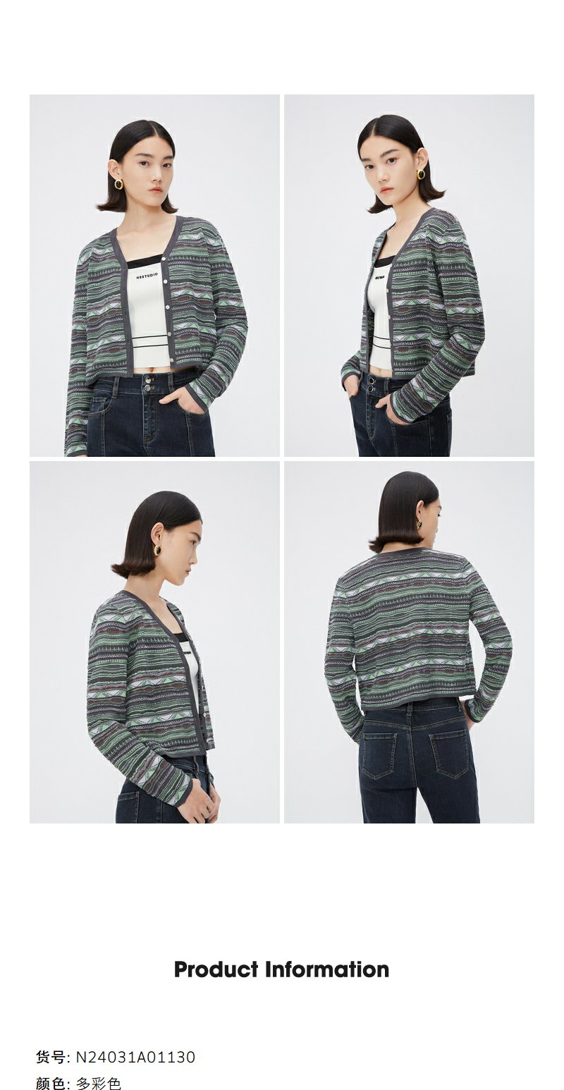 NEELLY纳俪商场同款V领长袖针织开衫女秋季单排扣通勤时尚薄外套
