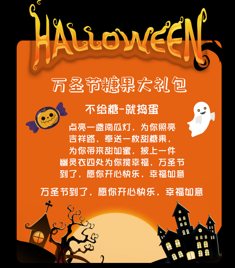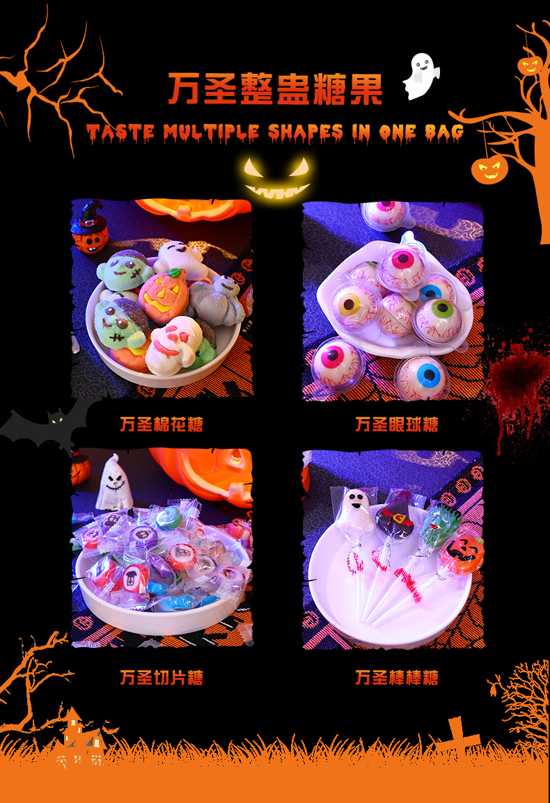 【云优选】万圣节糖果大礼包 不给糖就捣蛋万圣节创意搞怪南瓜幽灵糖果,各种搞怪糖果萌翻万圣,棉花糖儿童休闲小零食糖果袋QQ