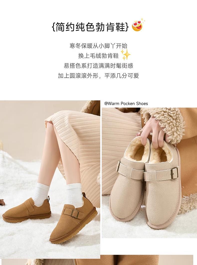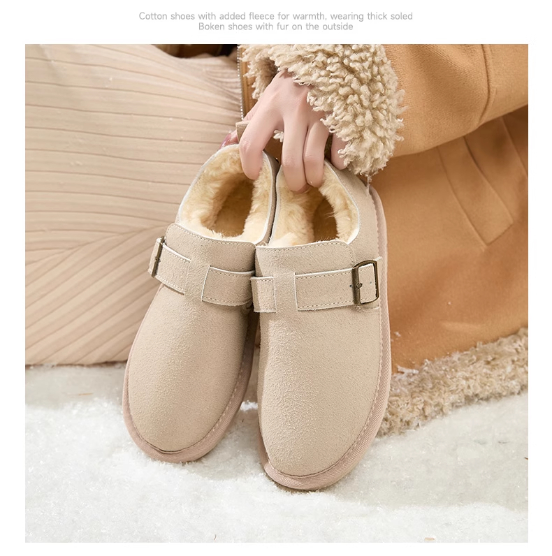 回力加绒勃肯鞋女秋冬新款博肯鞋全包保暖懒人鞋舒适一脚蹬休闲鞋