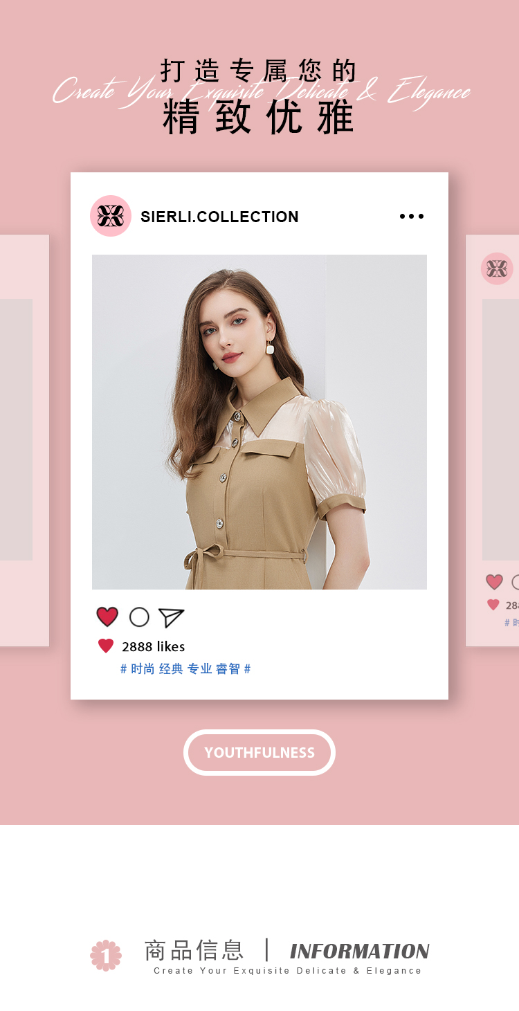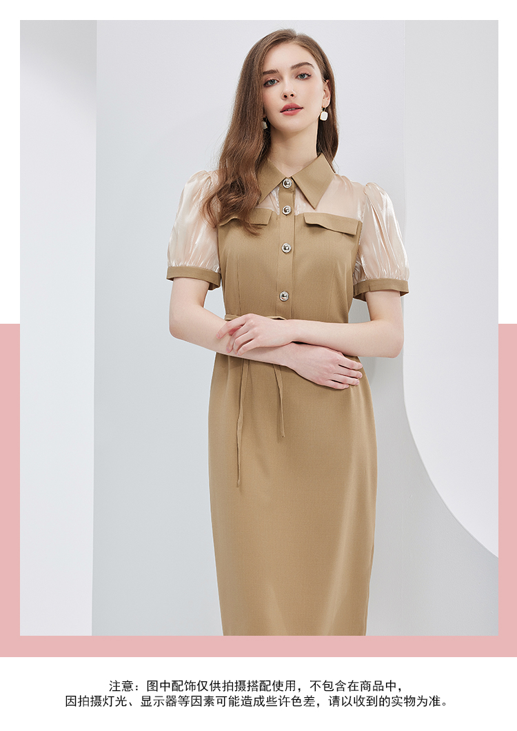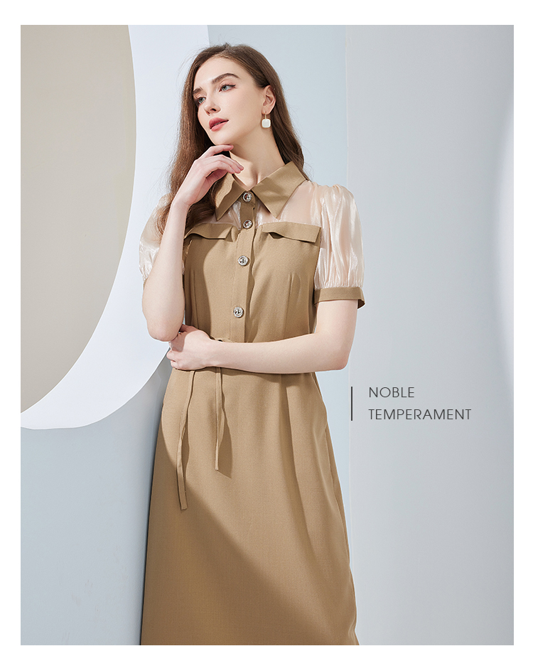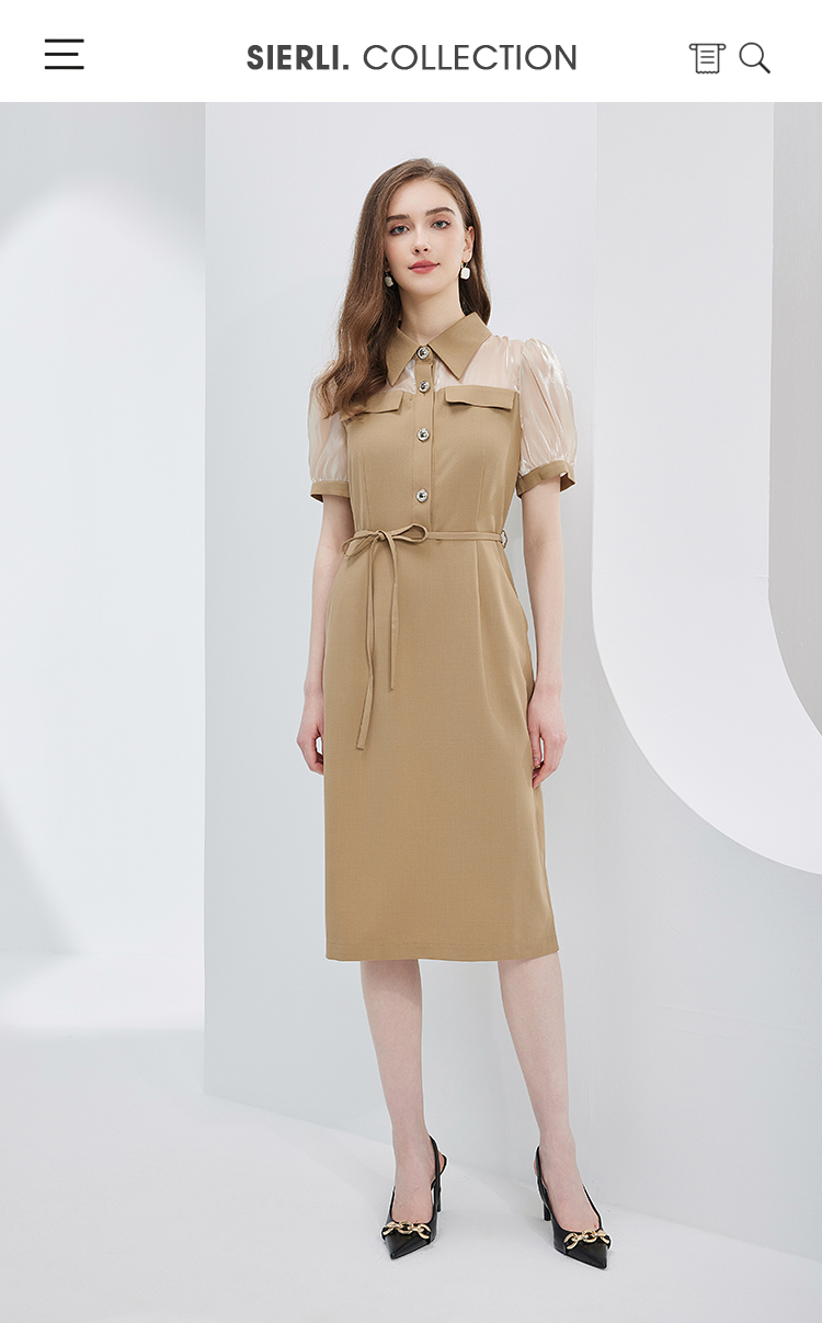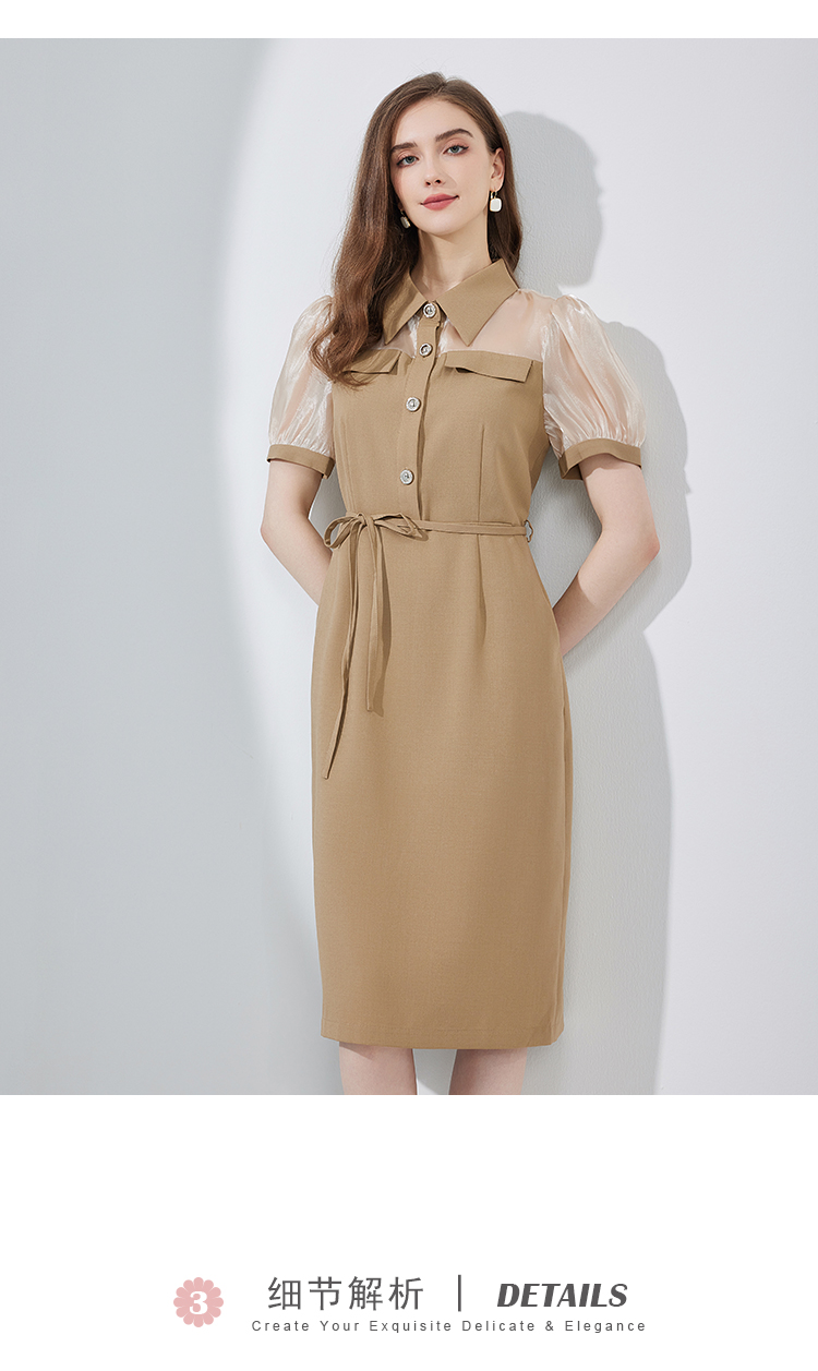 NF8U5斯尔丽瑟俪2023夏季新款撞色衬衣领款OL风连衣裙