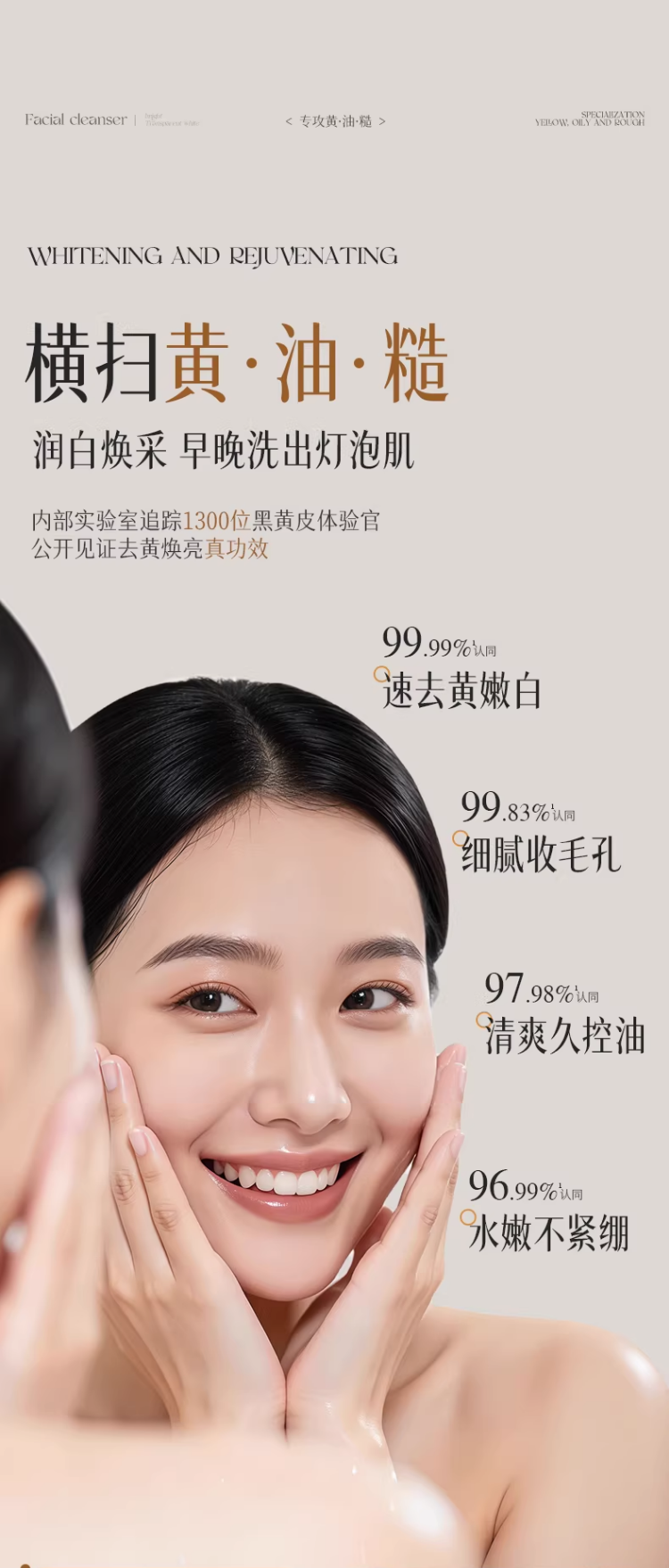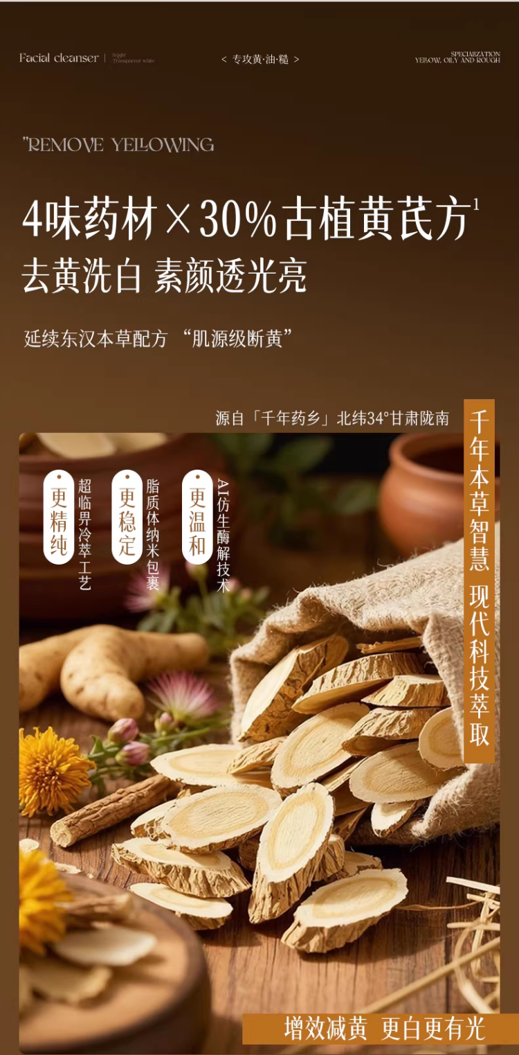 黄芪洗面奶美白控油淡斑提亮男女士深层清洁收缩毛孔氨基酸洁面乳