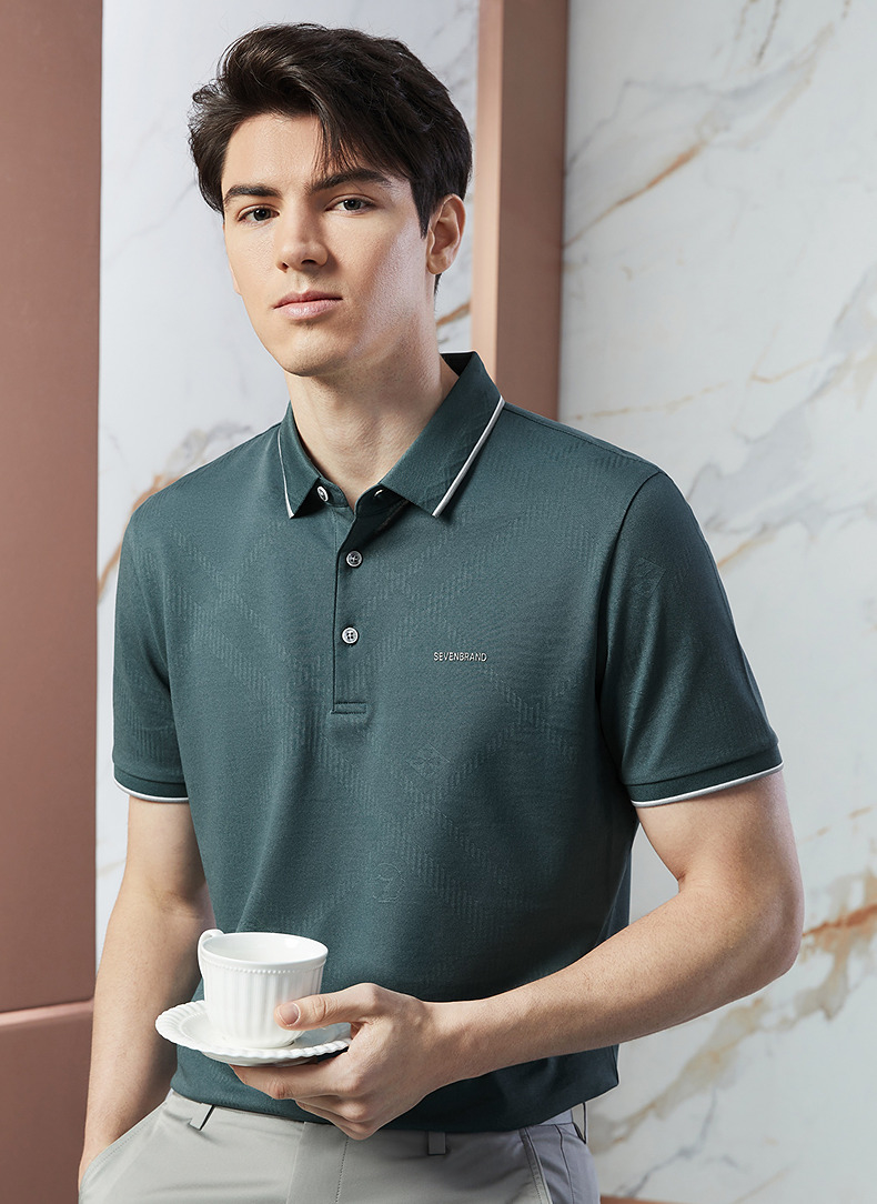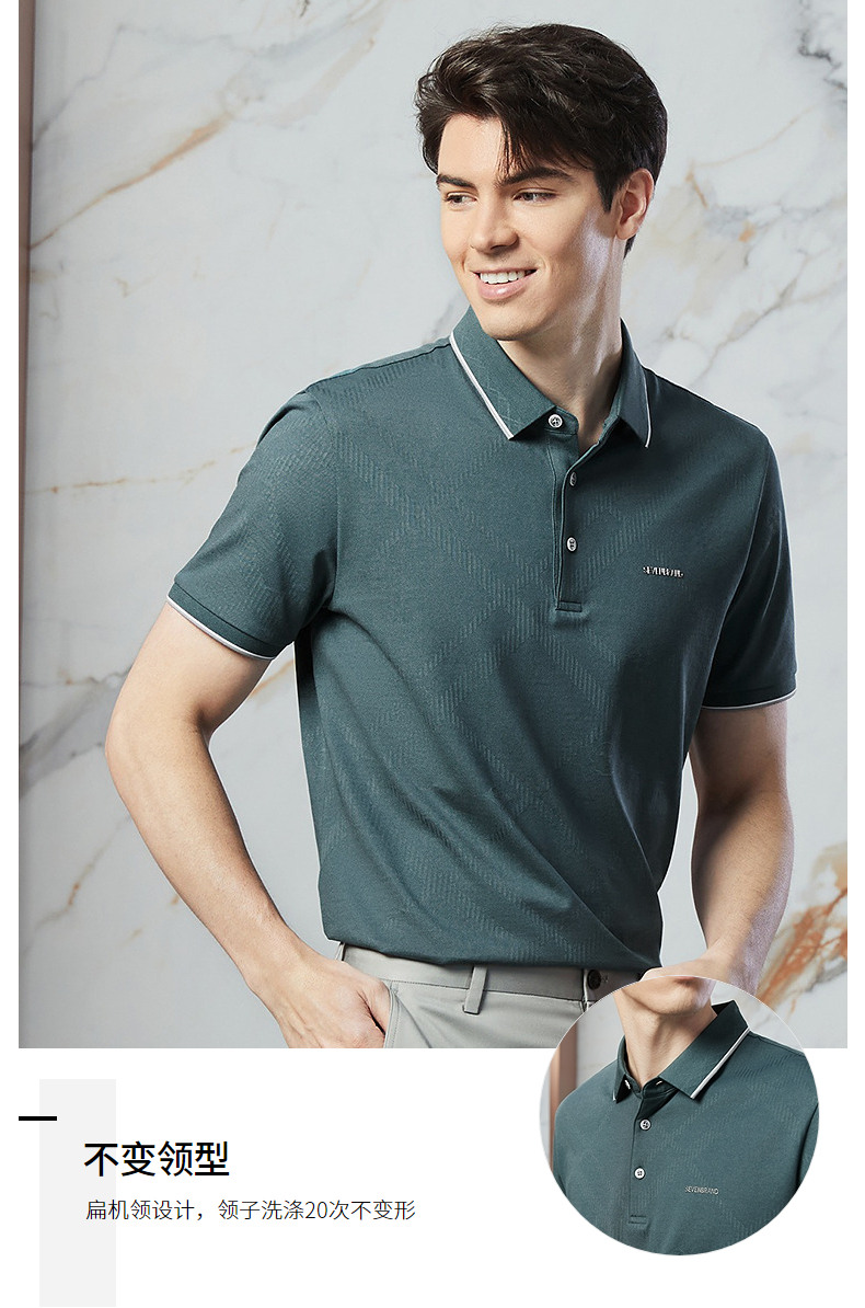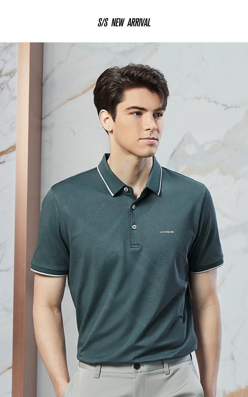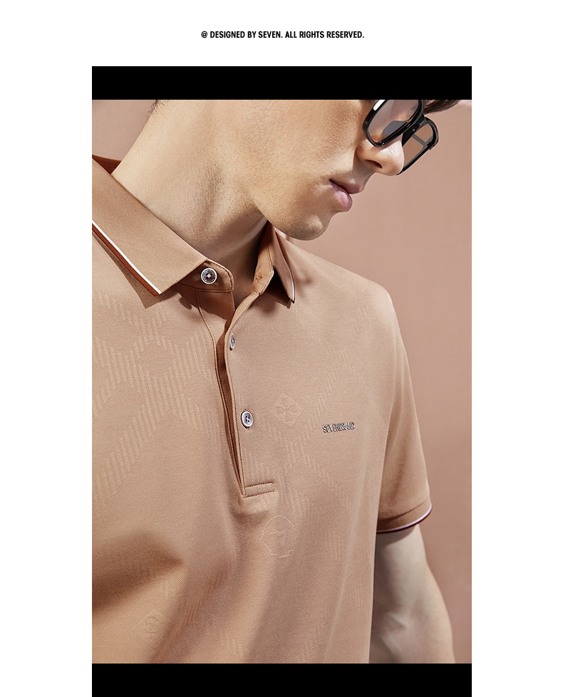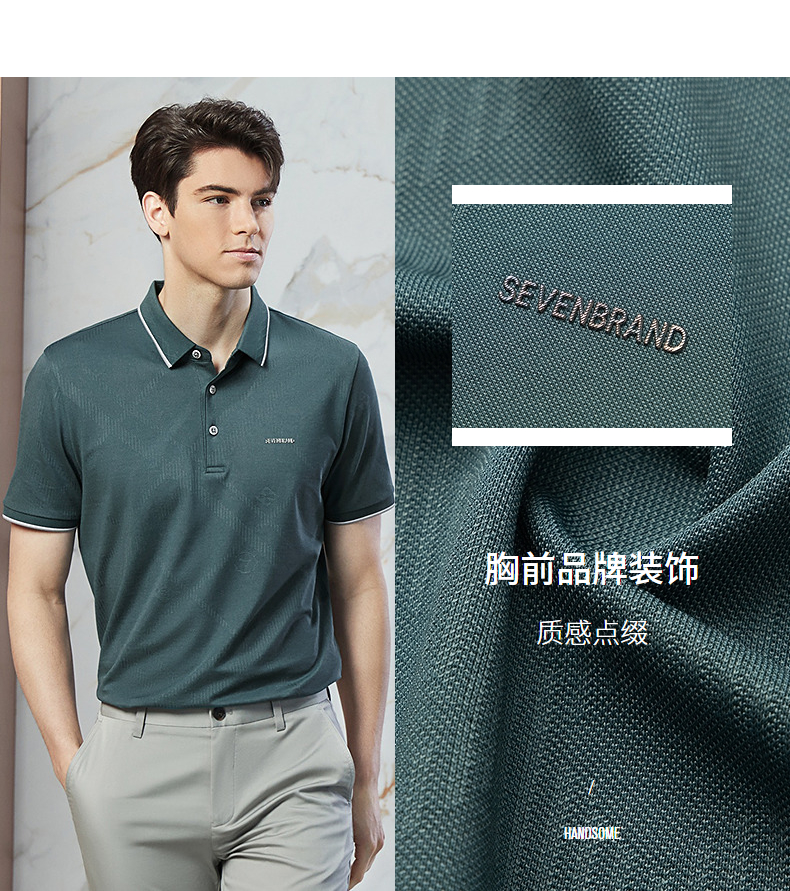 【不变形领】【高端系列】柒牌polo衫短袖男夏季新款格纹提花时尚休闲翻领上衣126T73200