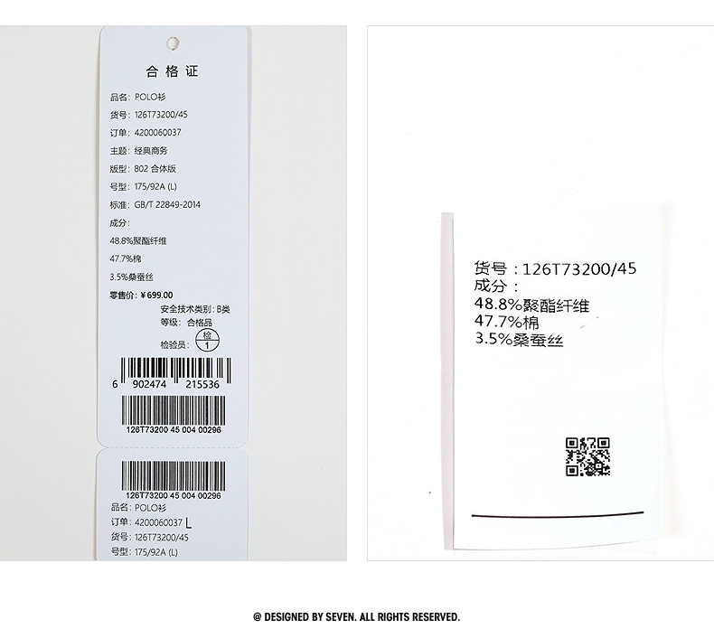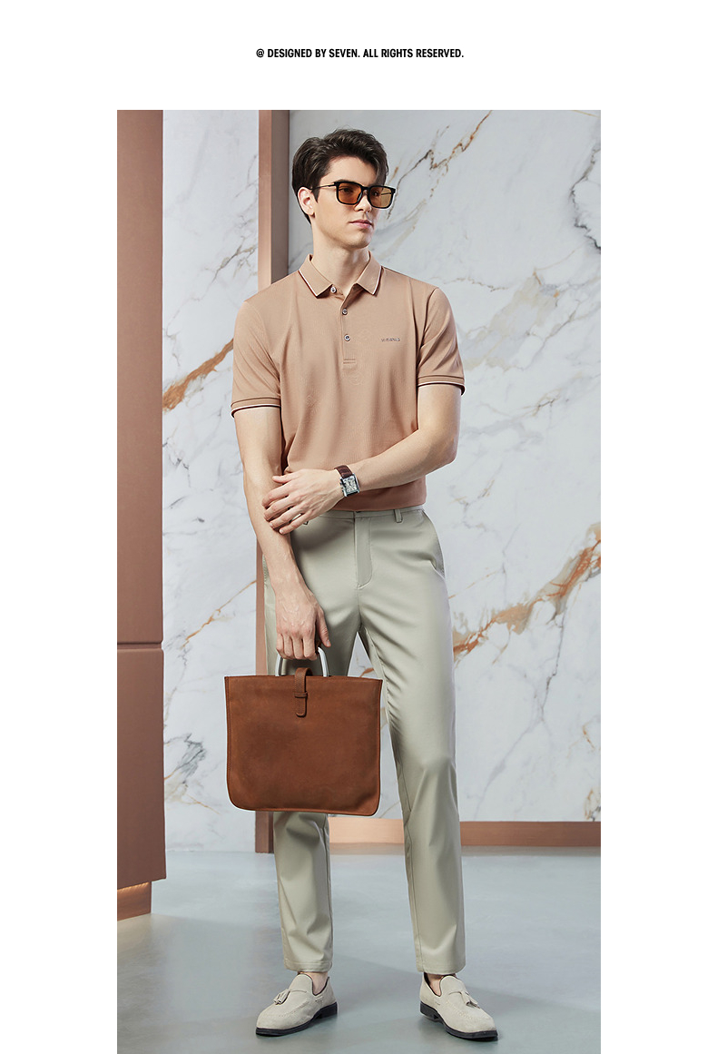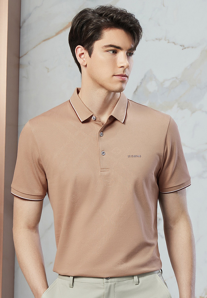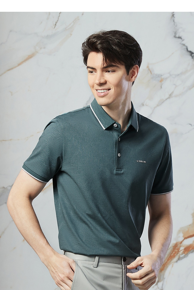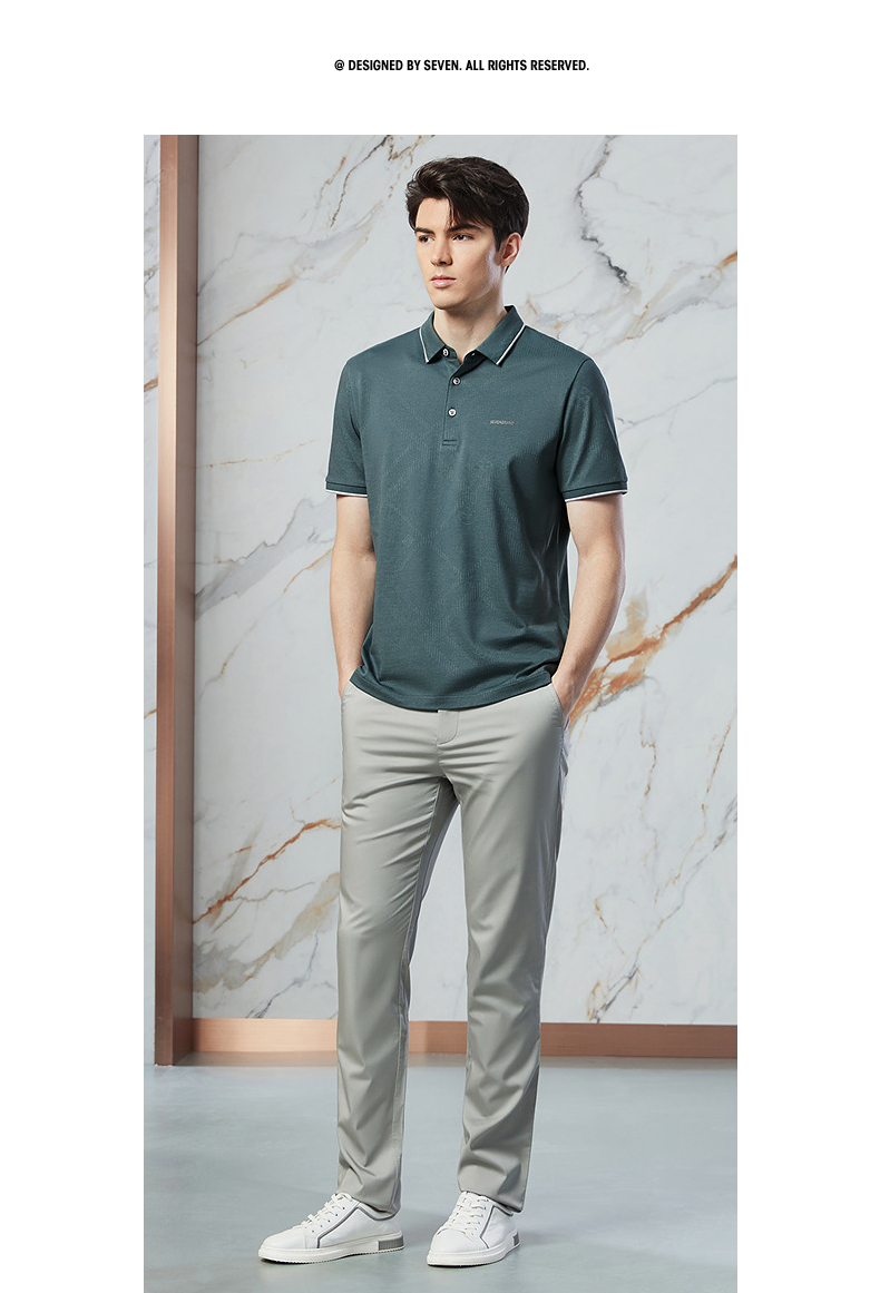 【不变形领】【高端系列】柒牌polo衫短袖男夏季新款格纹提花时尚休闲翻领上衣126T73200