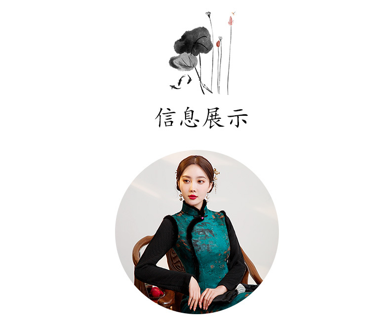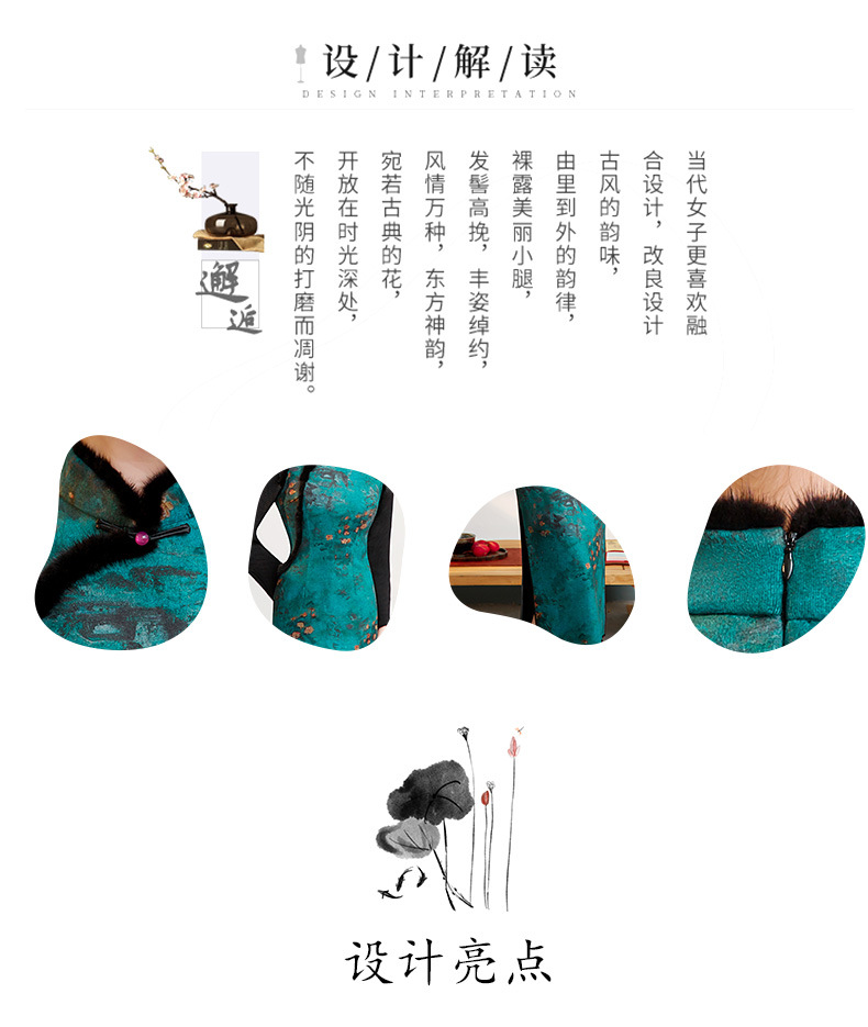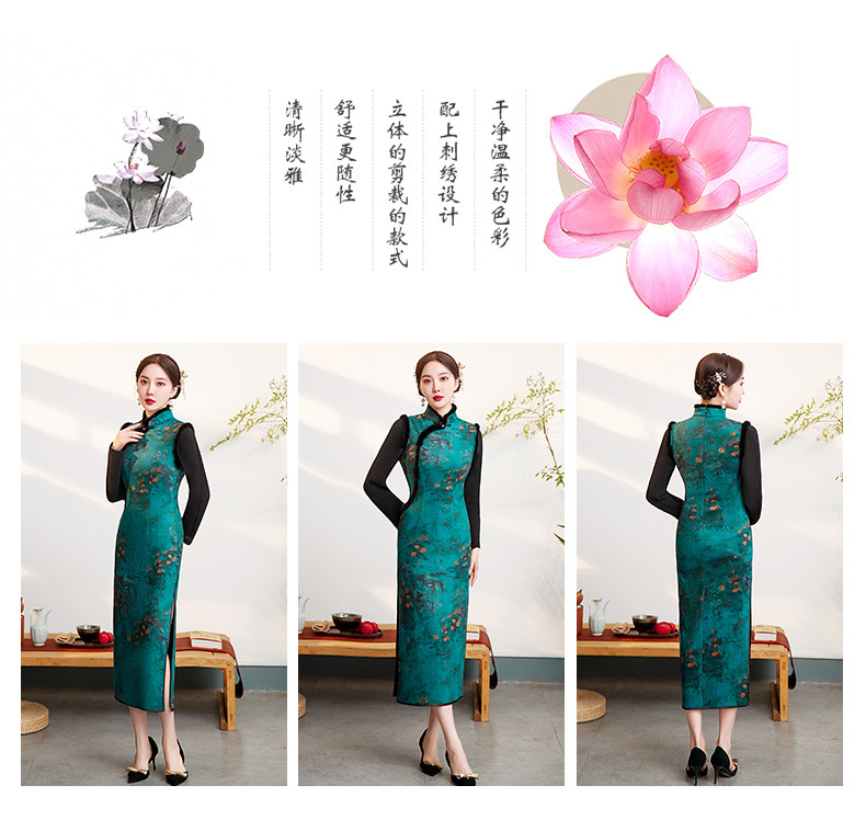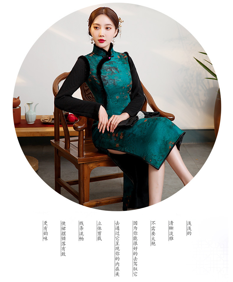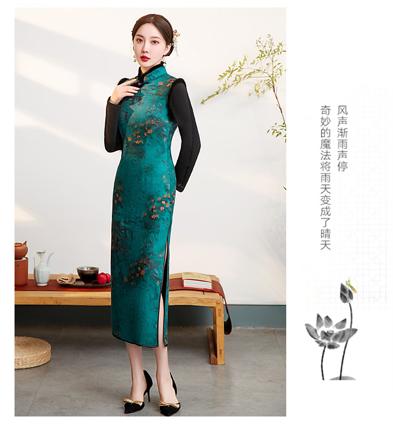 冬季加厚加绒长款旗袍澳绒复合真绒长袖保暖连衣裙GSJ-8501