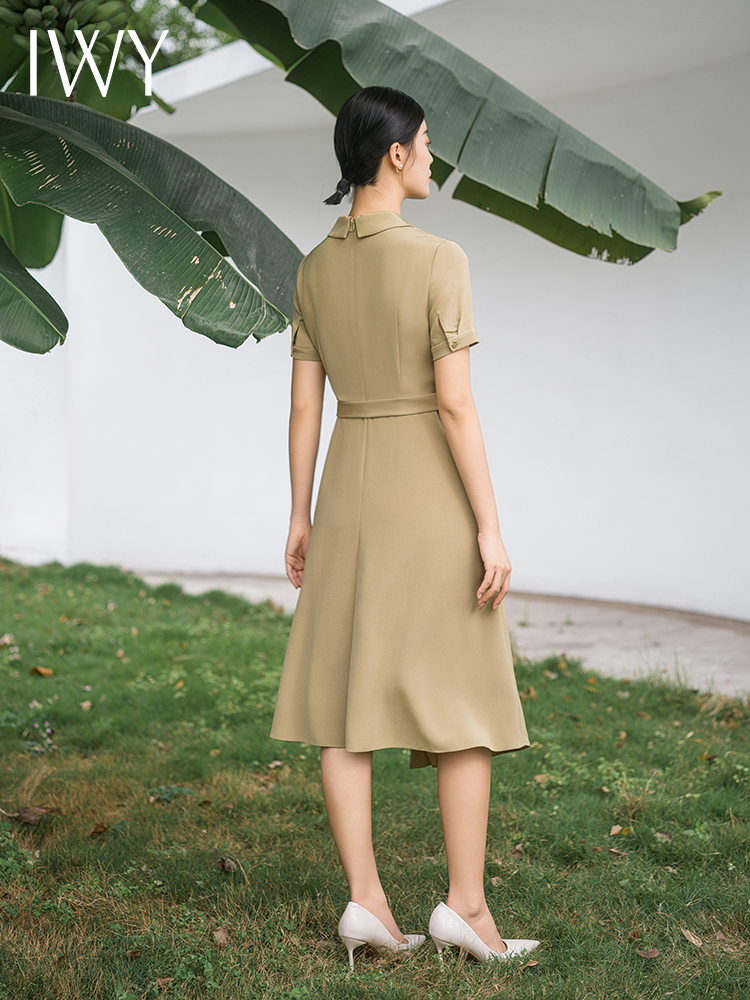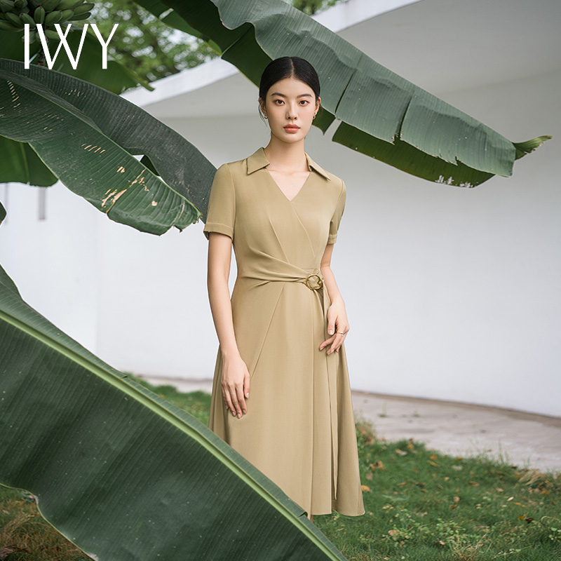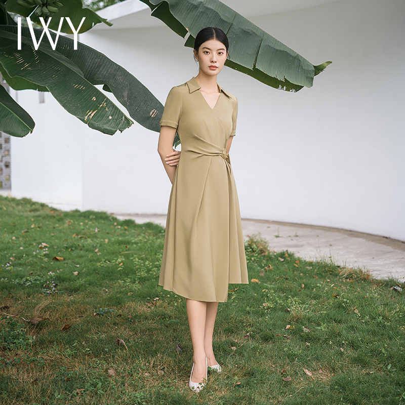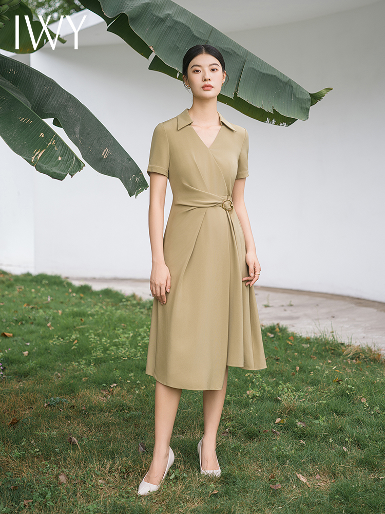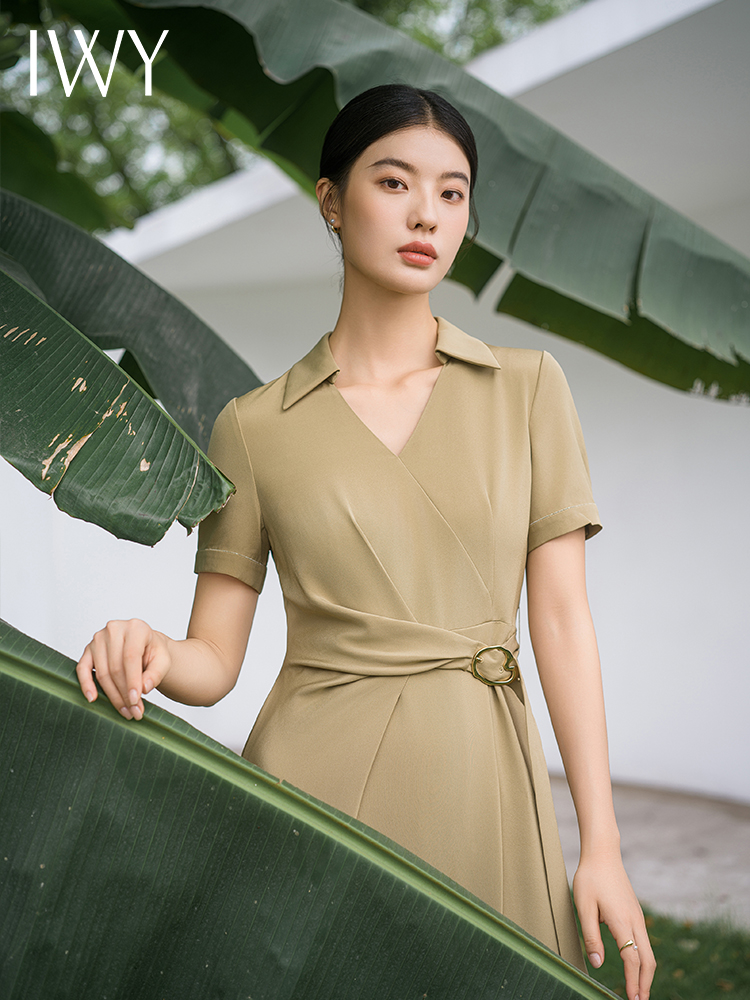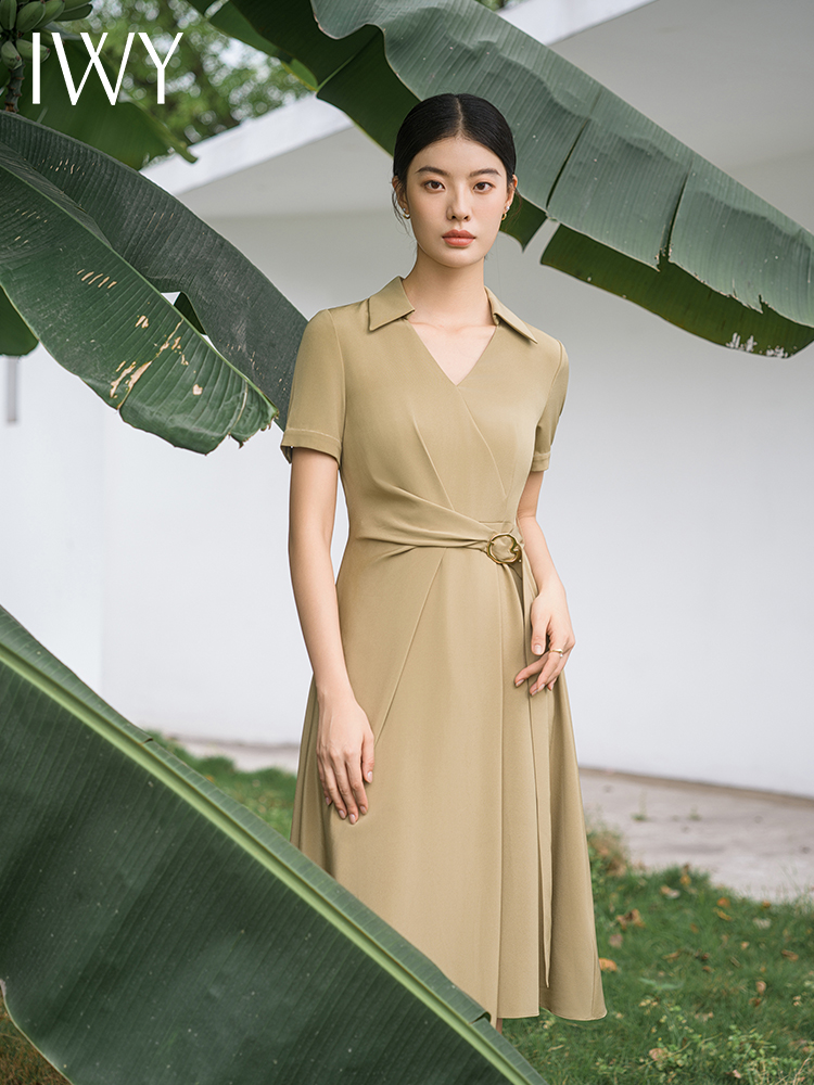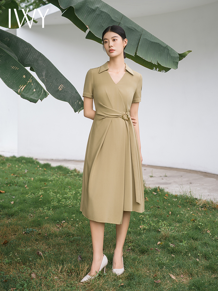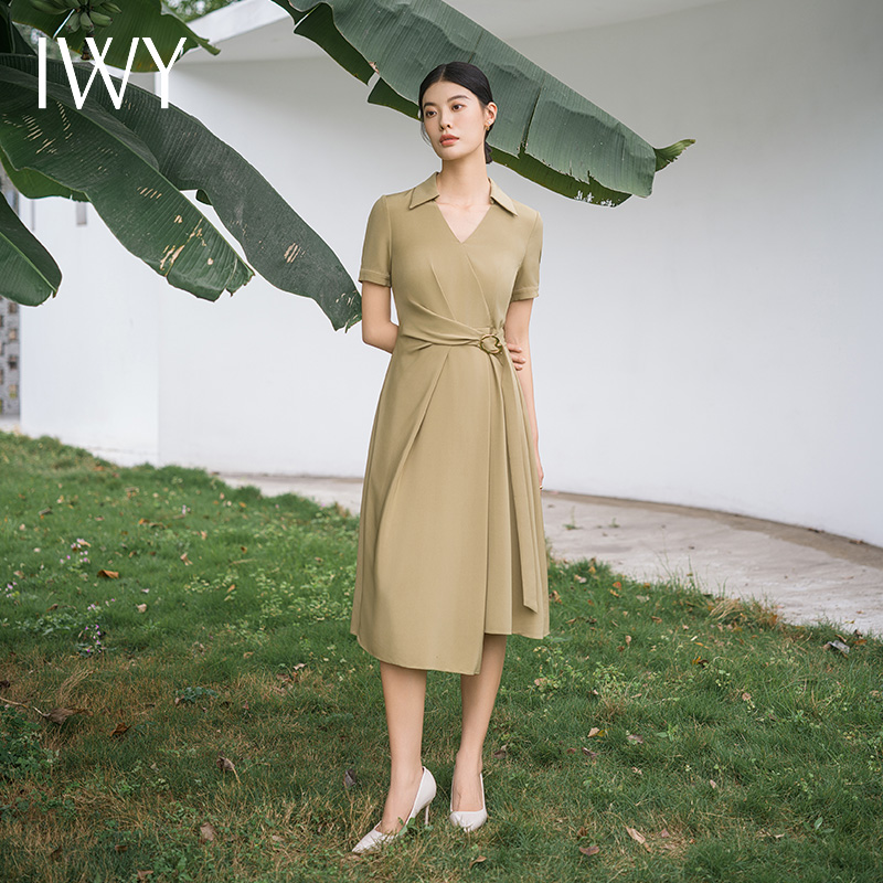 IWY/优雅卡其色连衣裙女经理上班商务裙子设计感不规则名媛工作服面试Q14254