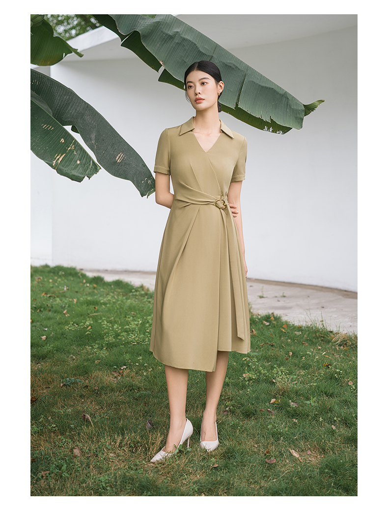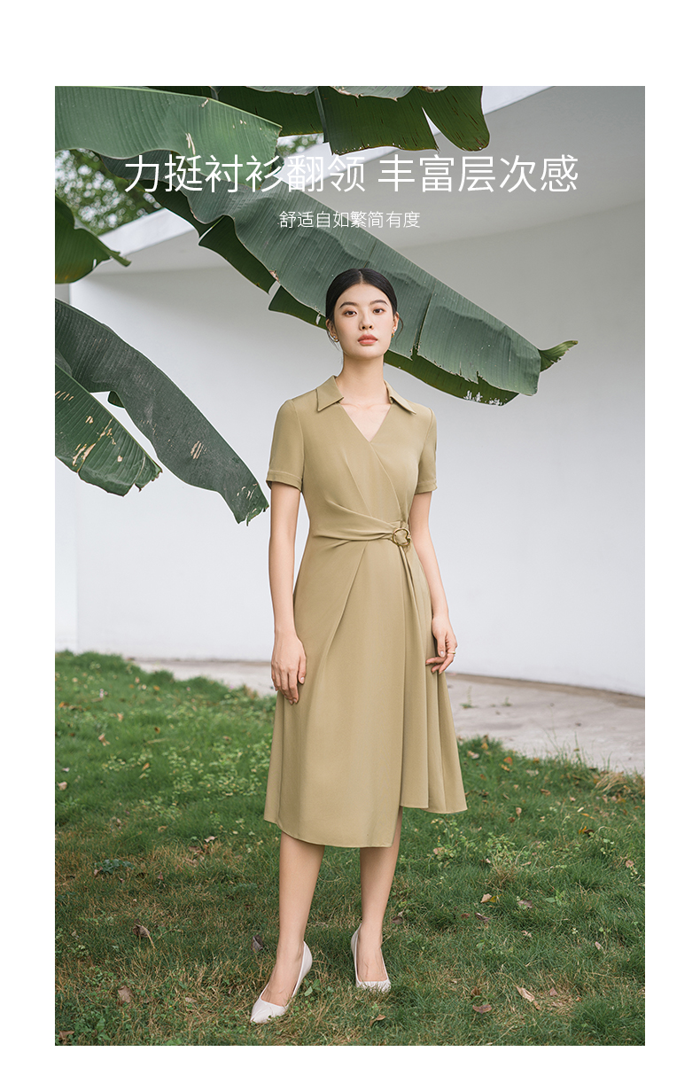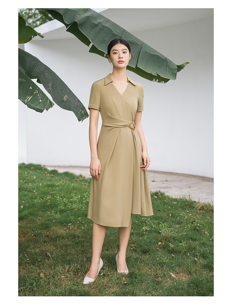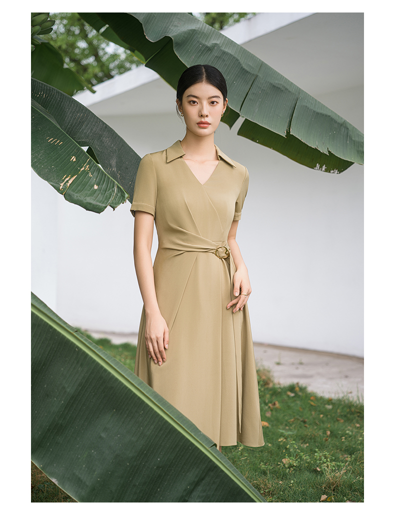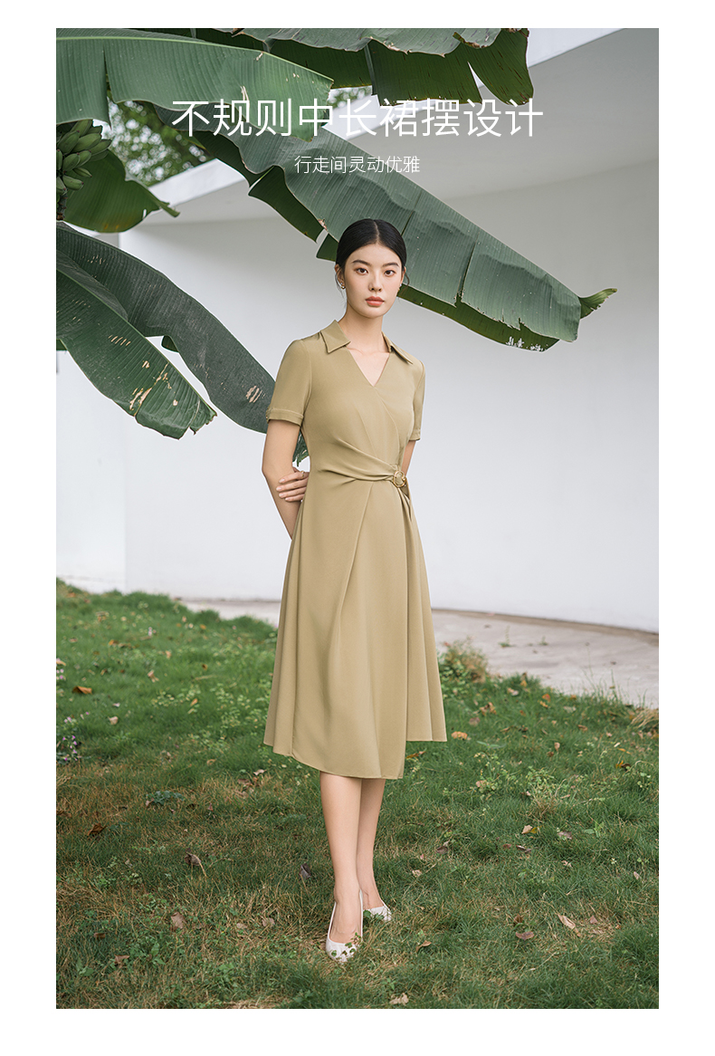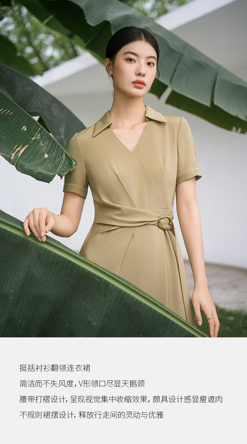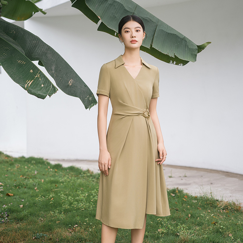 IWY/优雅卡其色连衣裙女经理上班商务裙子设计感不规则名媛工作服面试Q14254