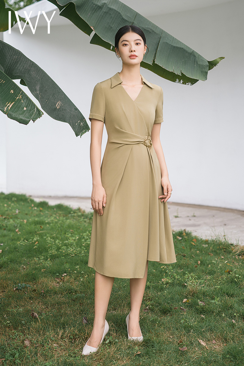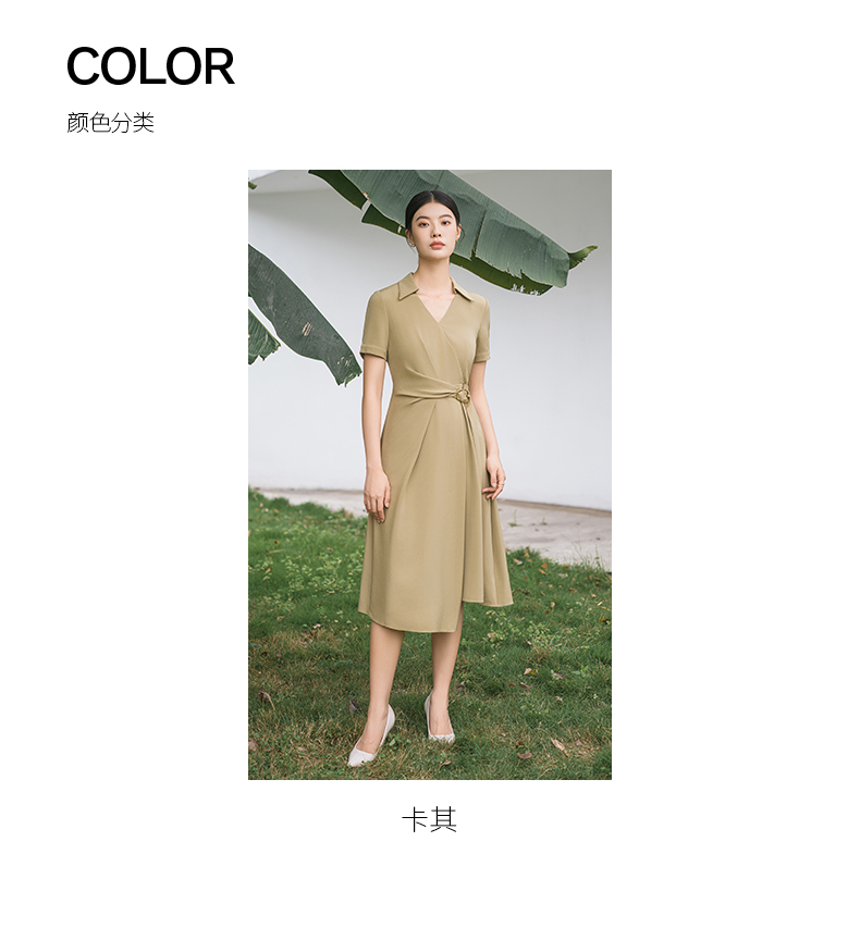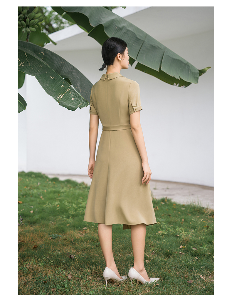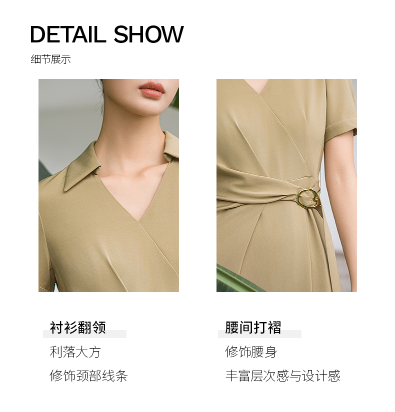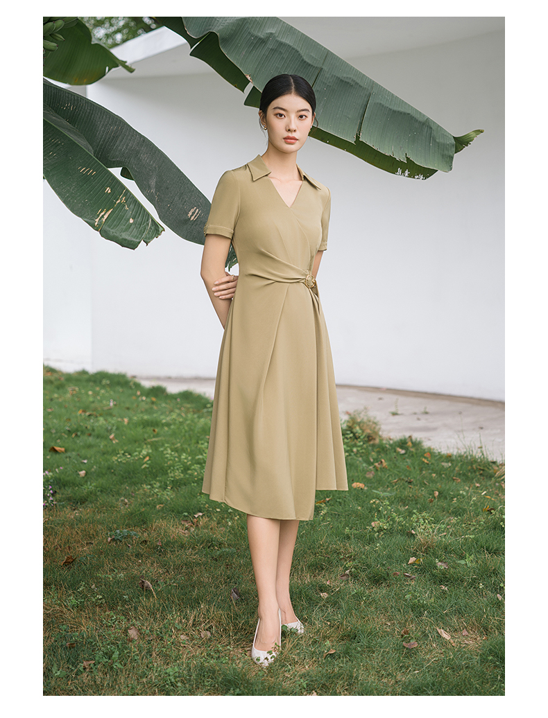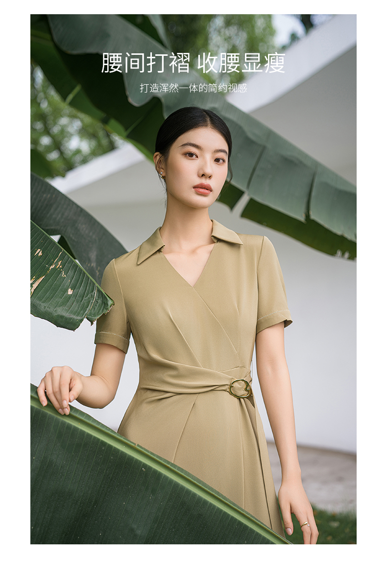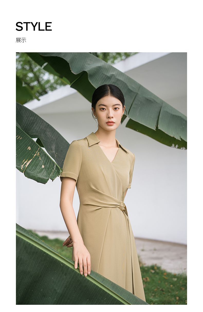 IWY/优雅卡其色连衣裙女经理上班商务裙子设计感不规则名媛工作服面试Q14254