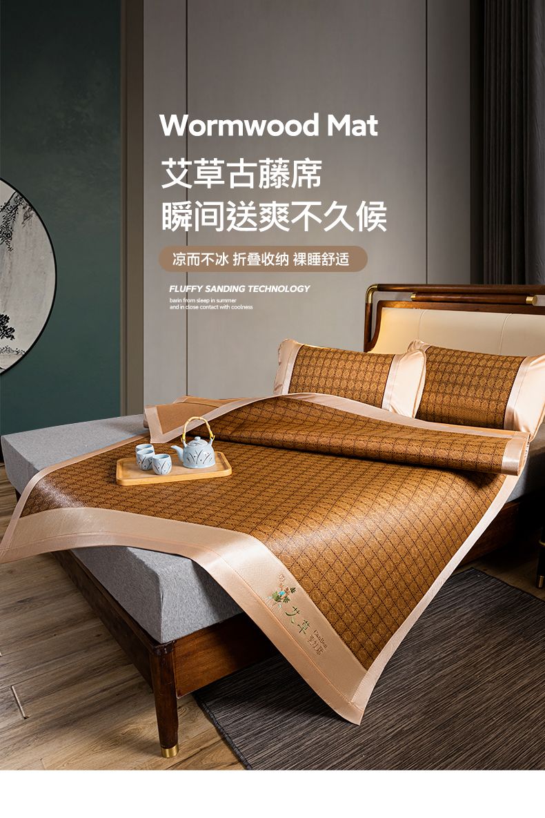 艾草驱蚊席古藤席家用宿舍空调软席可折叠宿舍凉席
