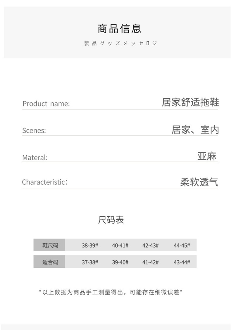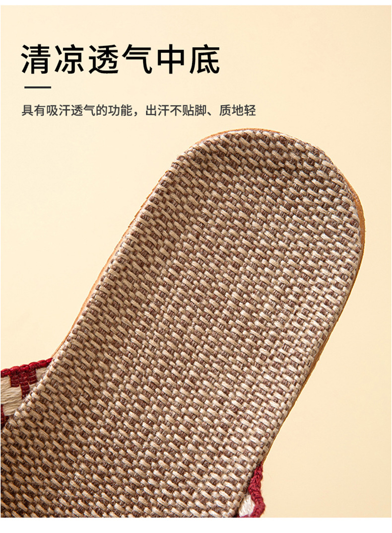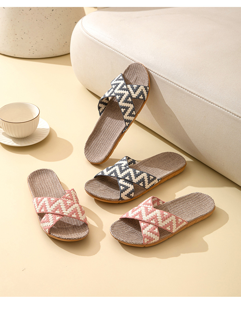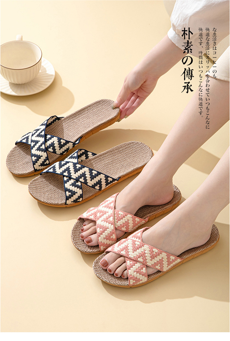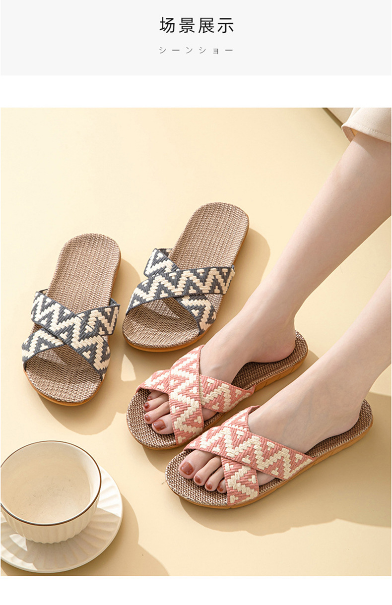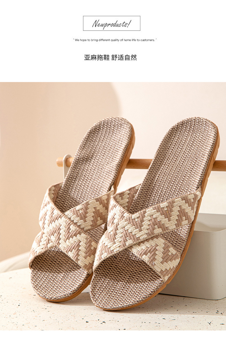 日式无印家居亚麻交叉拖鞋情侣款 A-4348