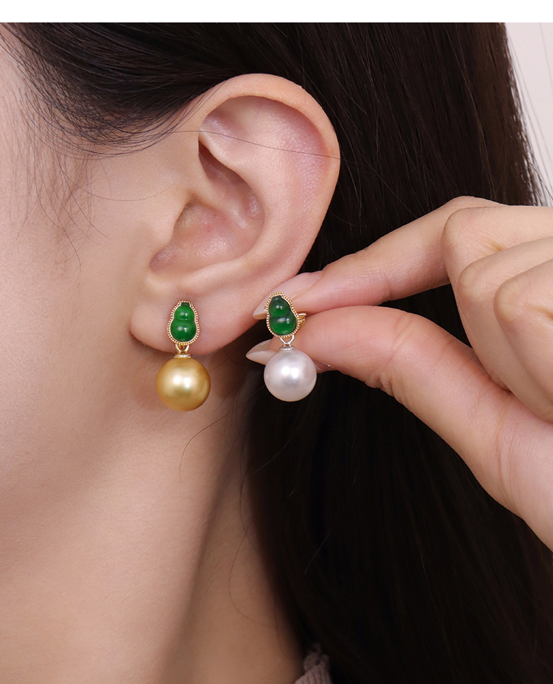 【天猫同款】葫芦两戴款-18K金翡翠耳夹