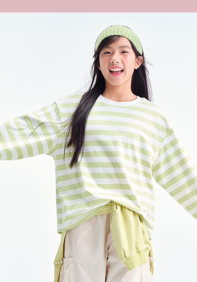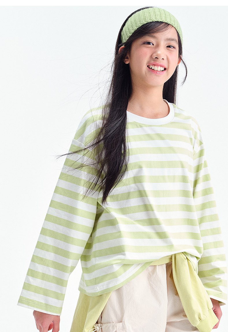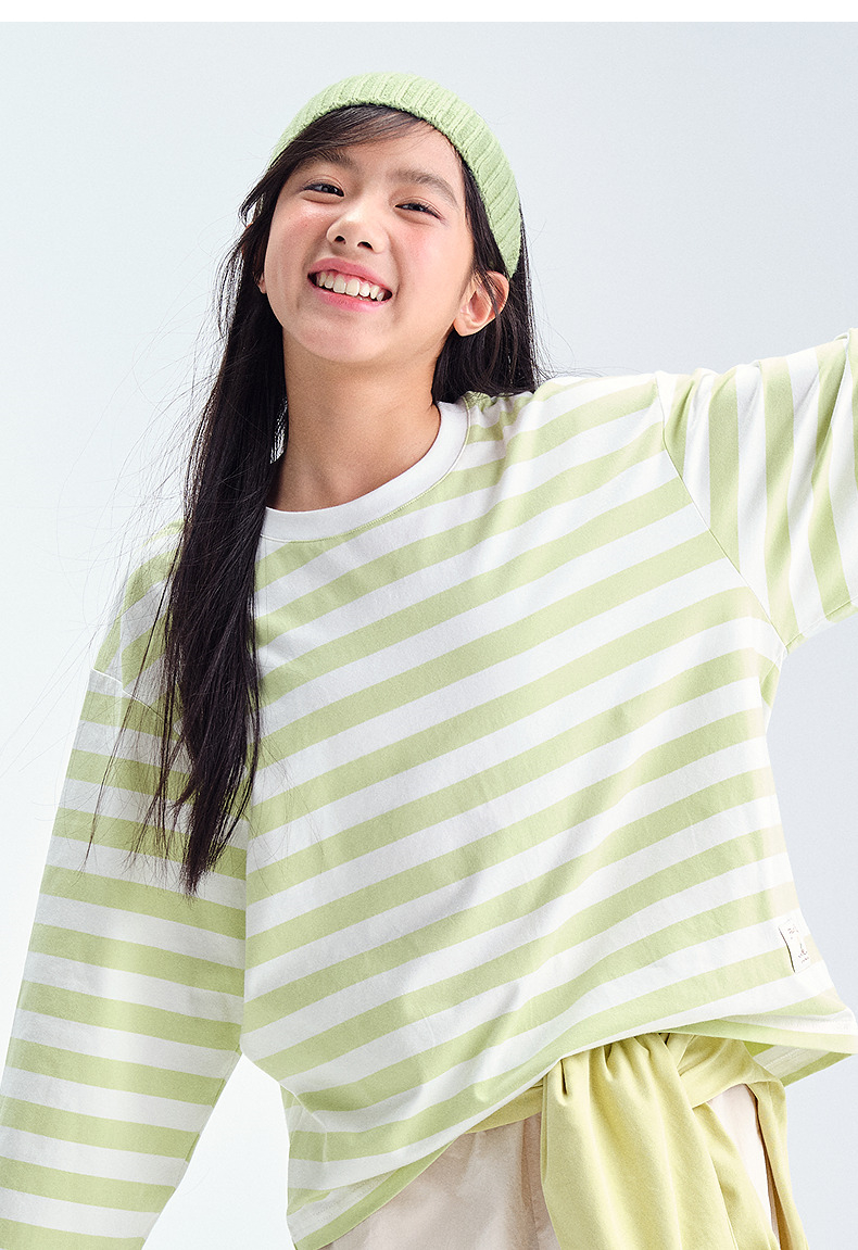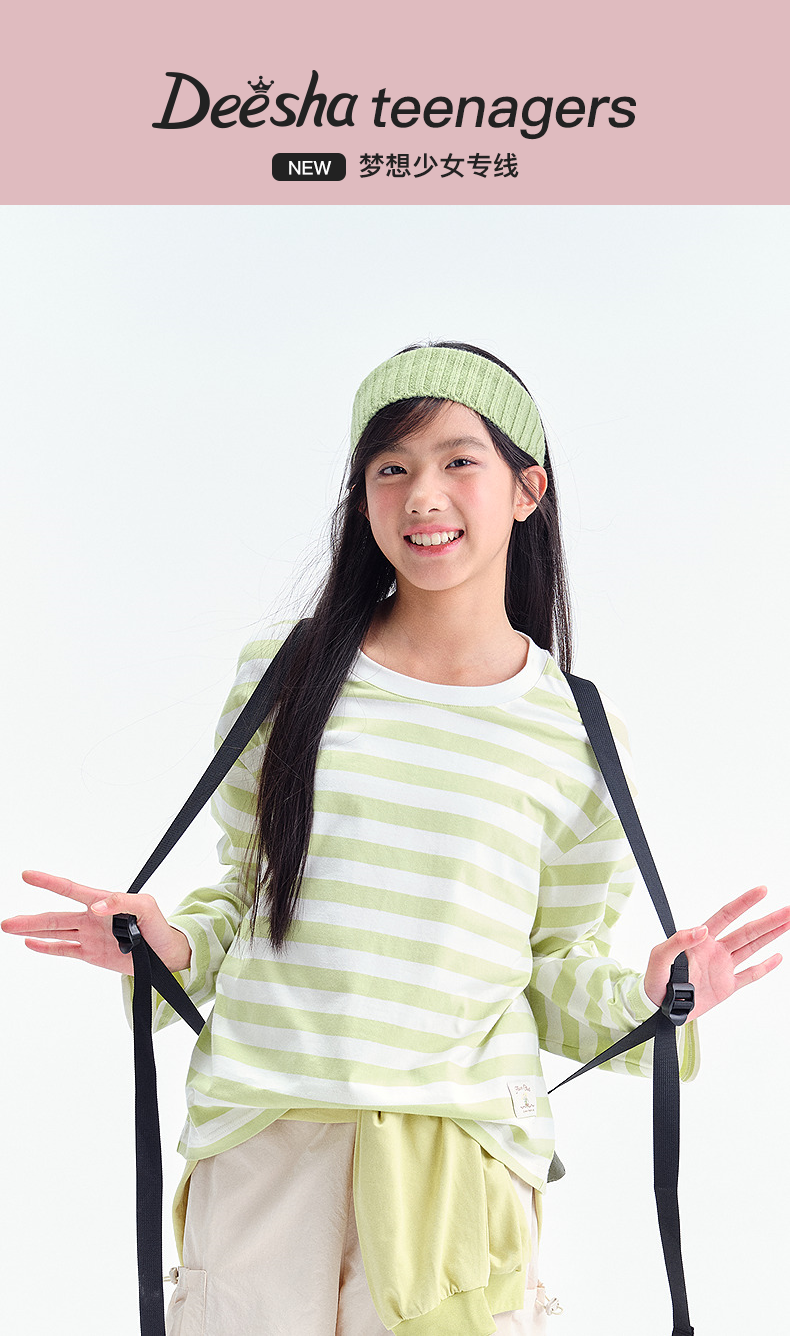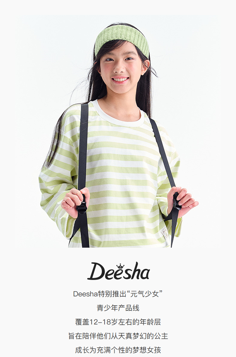 笛莎Deesha青少年女童T恤2025春季女童宽松版型长袖T恤