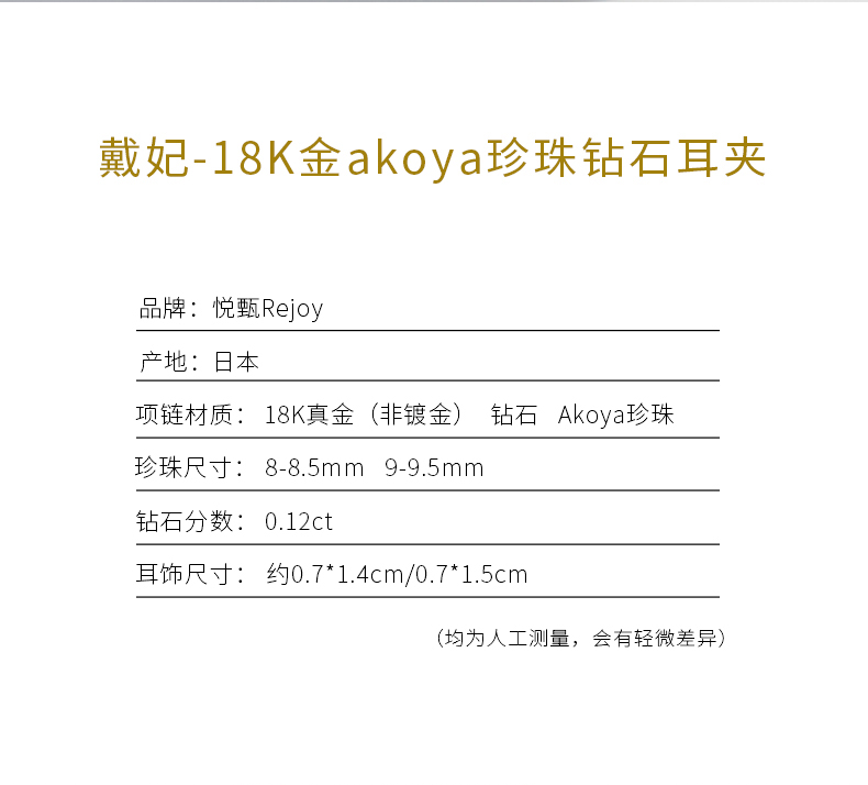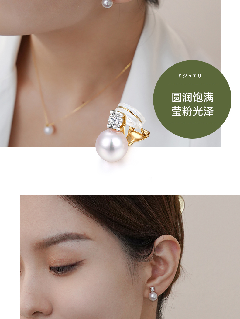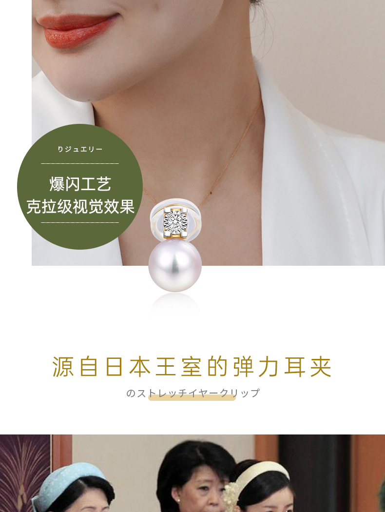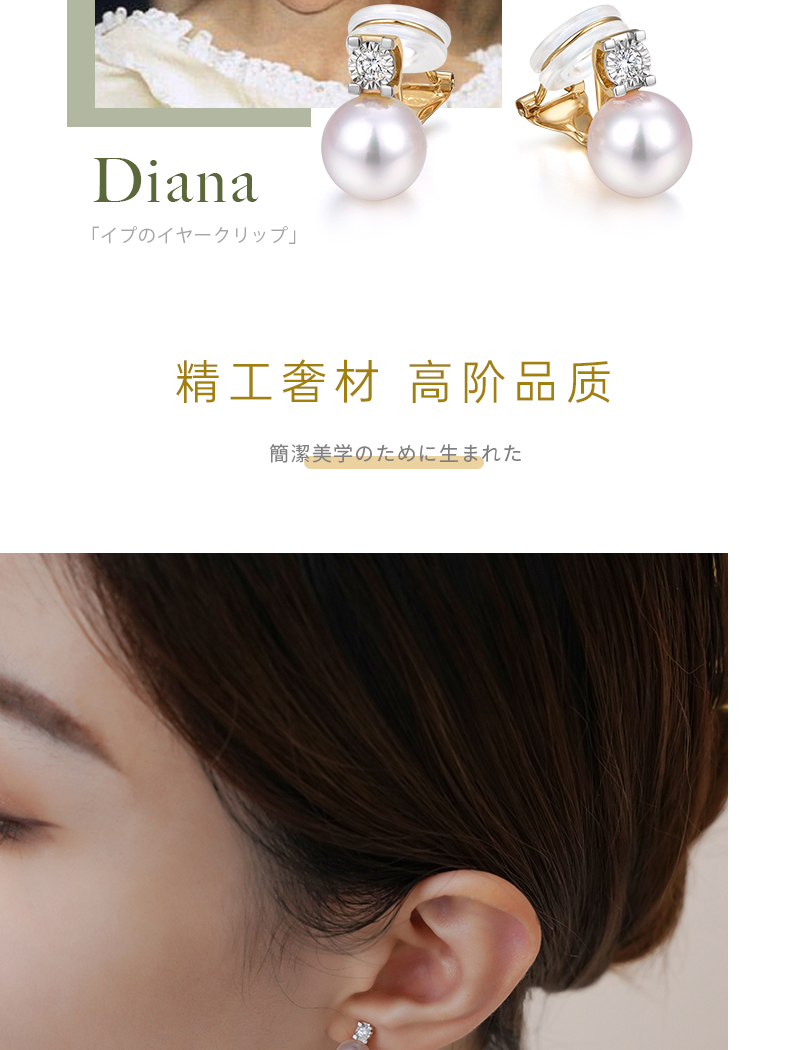 【天猫同款】悦甄 18k金Akoya珍珠钻石耳夹 戴妃