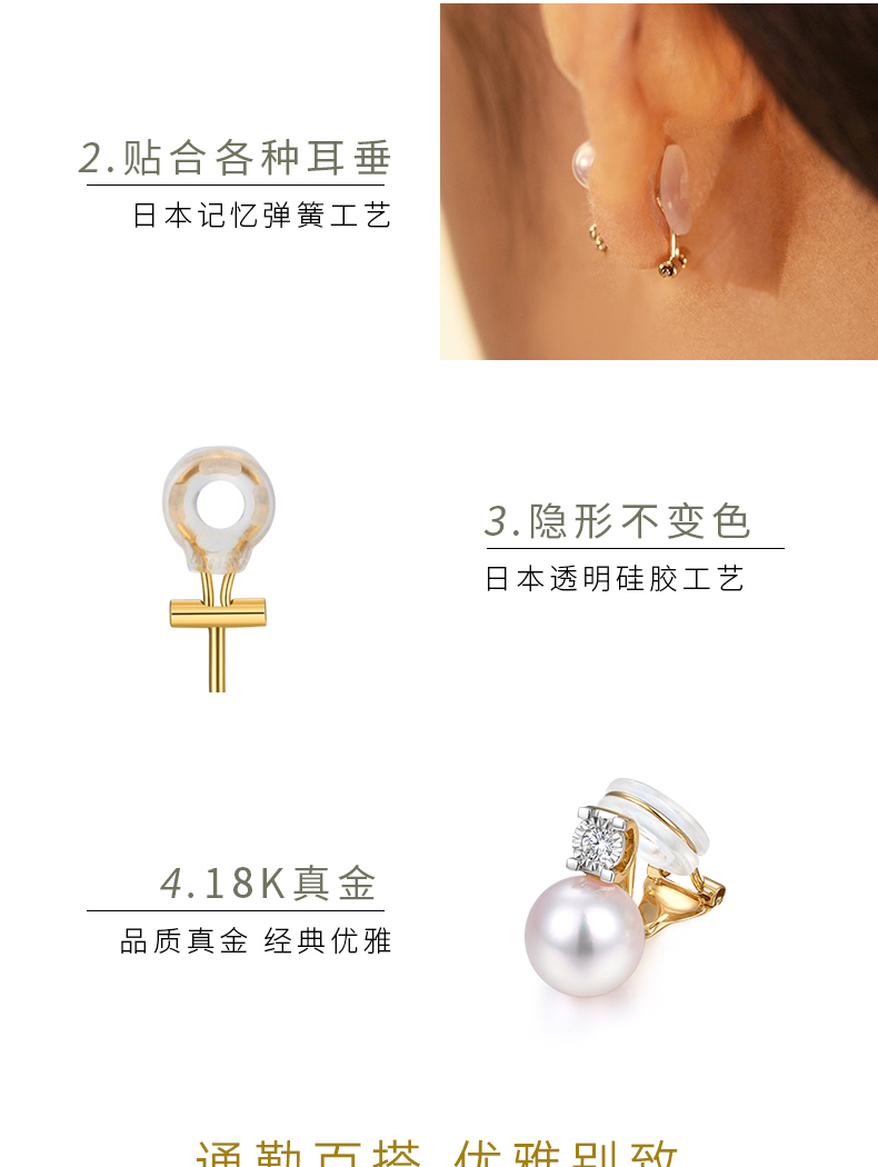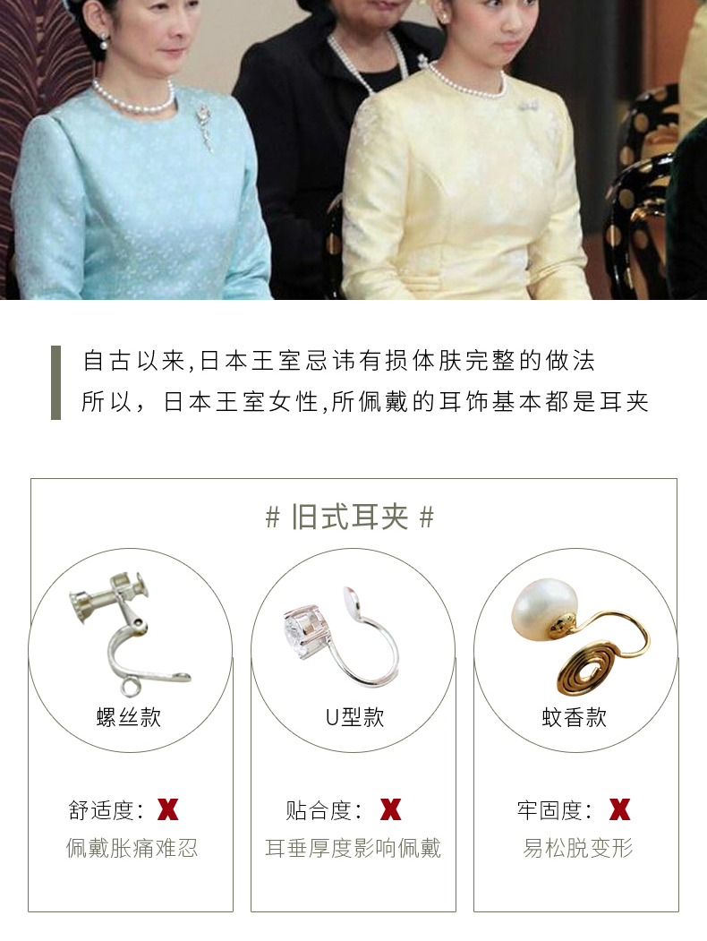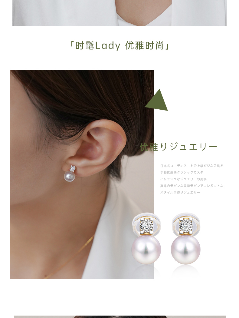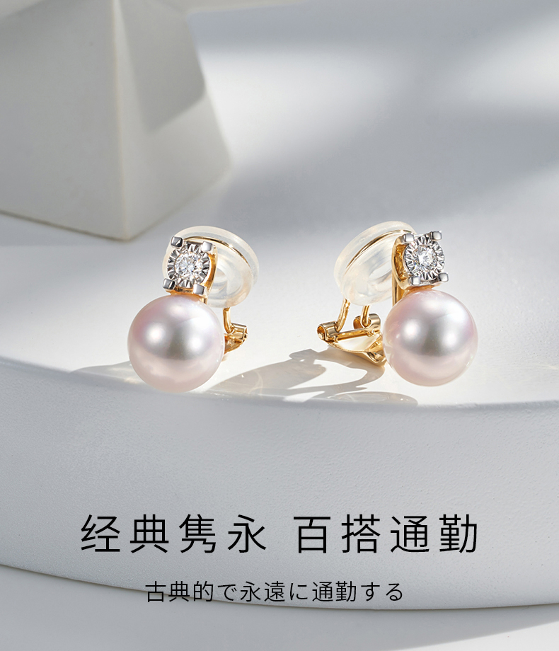 【天猫同款】悦甄 18k金Akoya珍珠钻石耳夹 戴妃