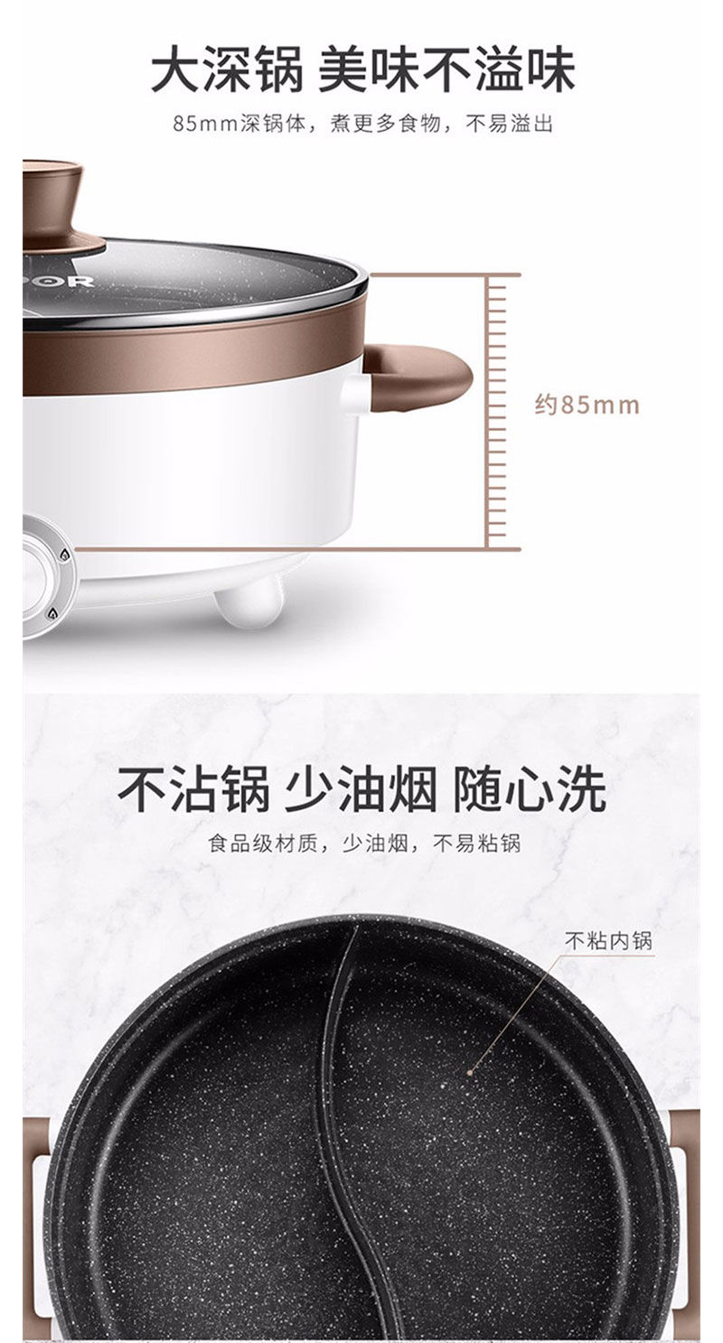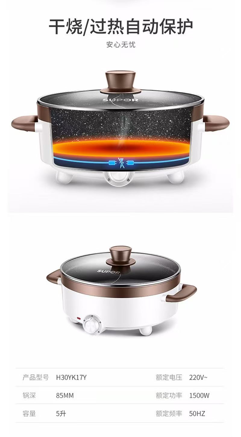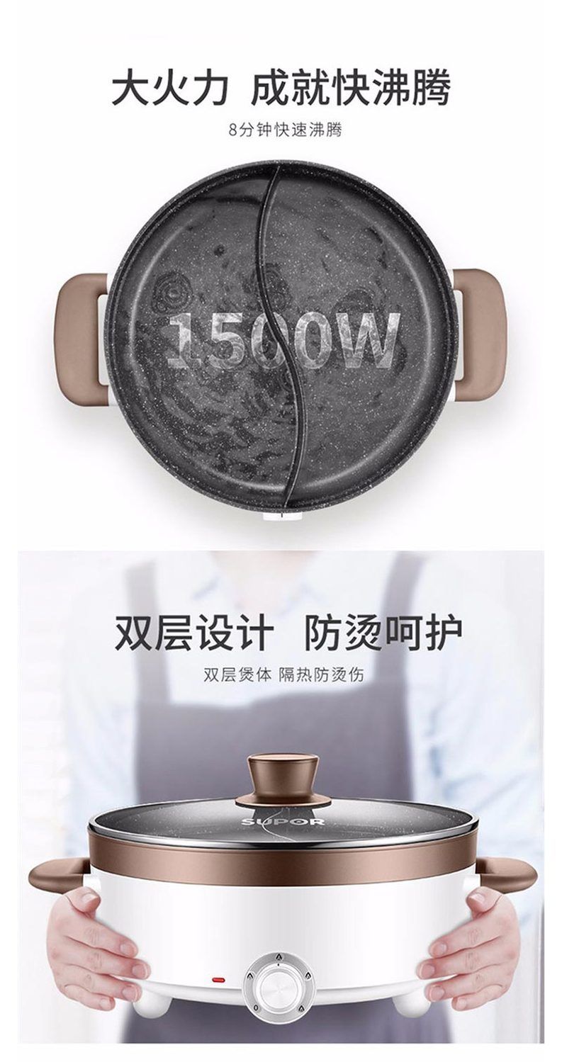 苏泊尔正品鸳鸯电火锅家用小型电热一体宿舍多功能大容量电热煮锅