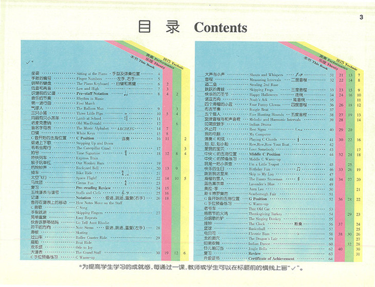 《乐理》是与《基础》相辅相成的配套教程,将浅显易懂的乐理知识融入简短的小乐曲中,寓教于乐,便于学生更加深入地理解和表现音乐。