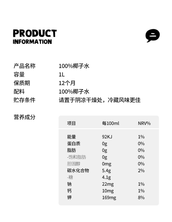 椰子知道100%NFC椰子水1L/瓶