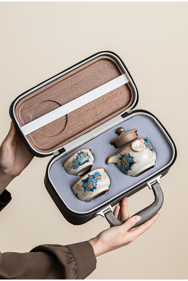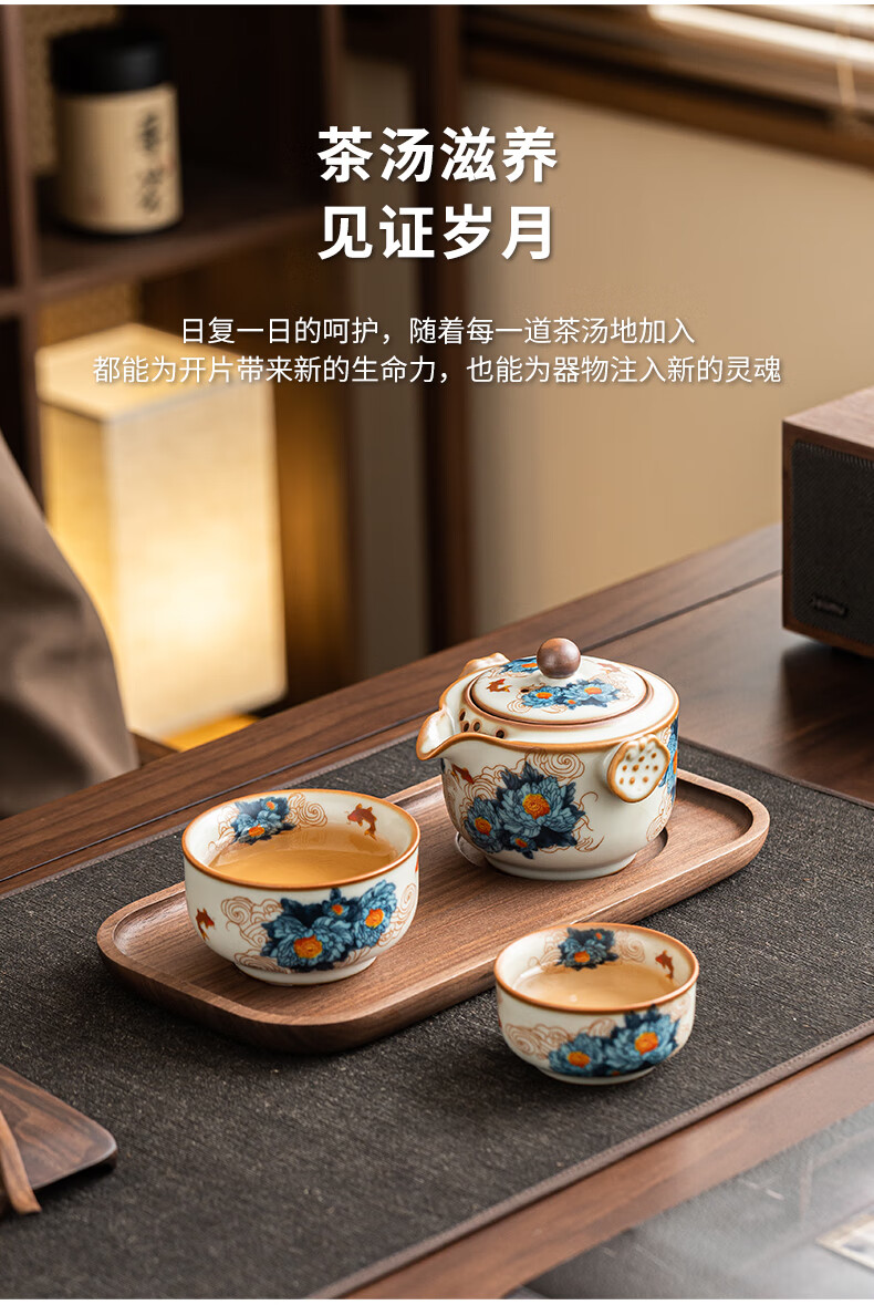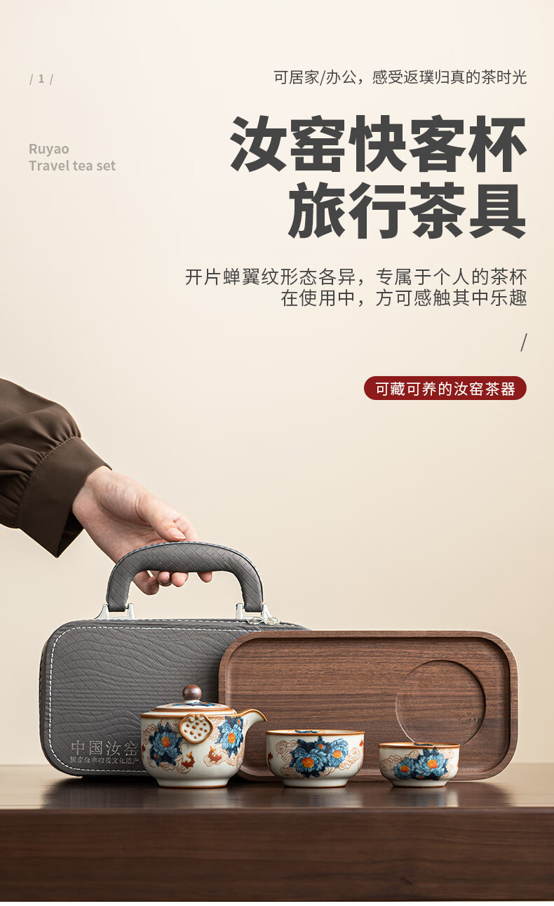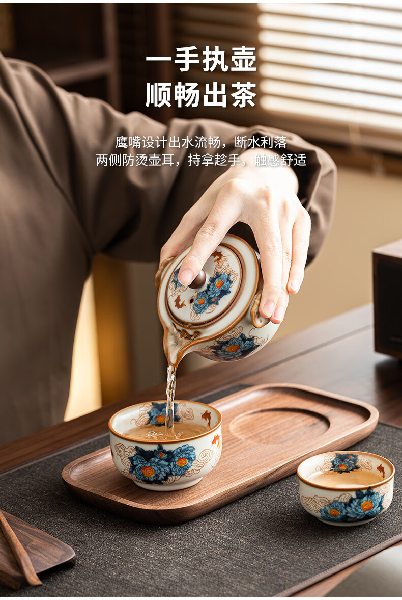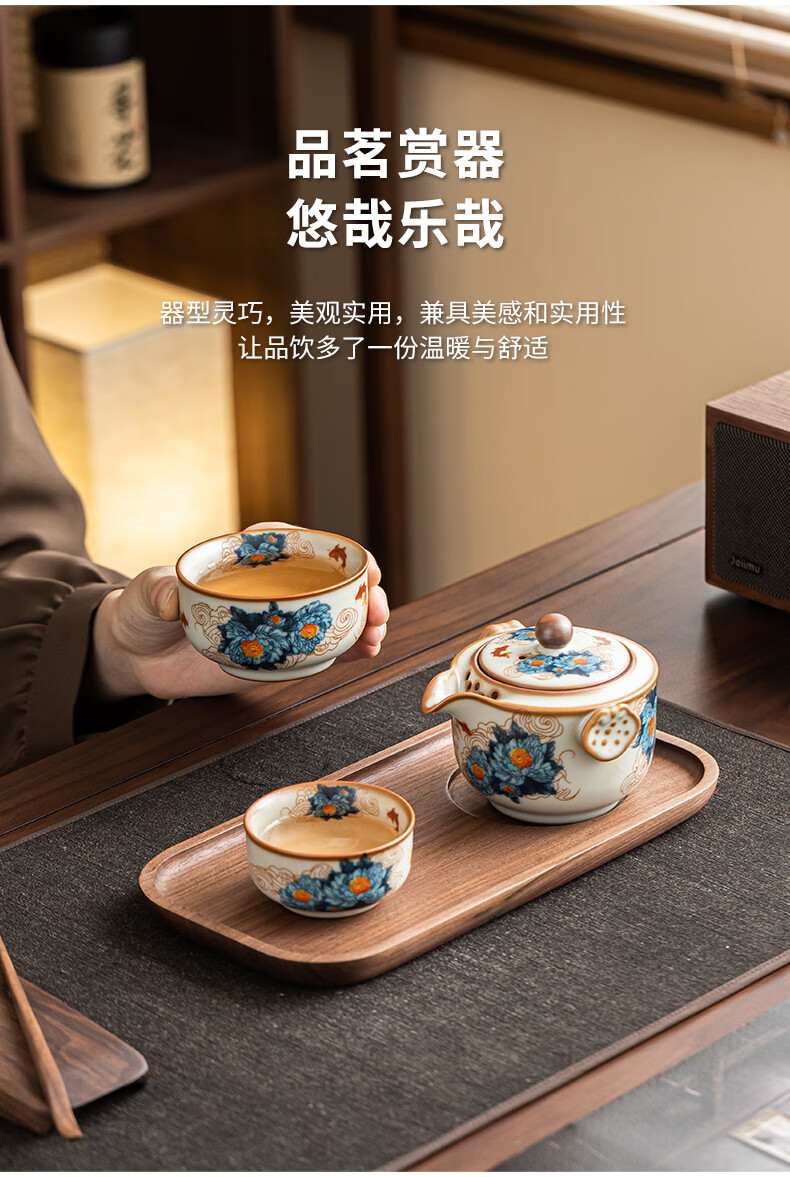 咏幻金万花汝窑快客杯旅行茶具套装陶瓷一壶二杯
