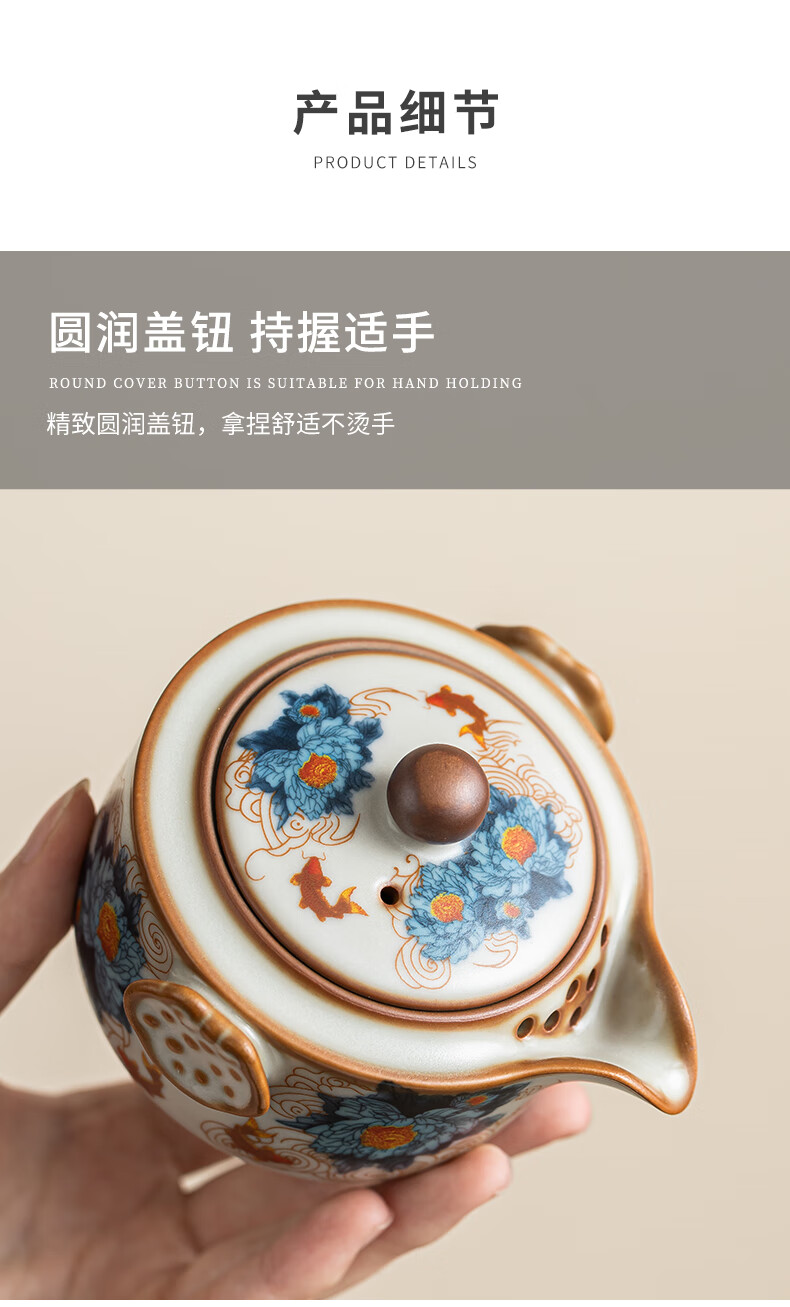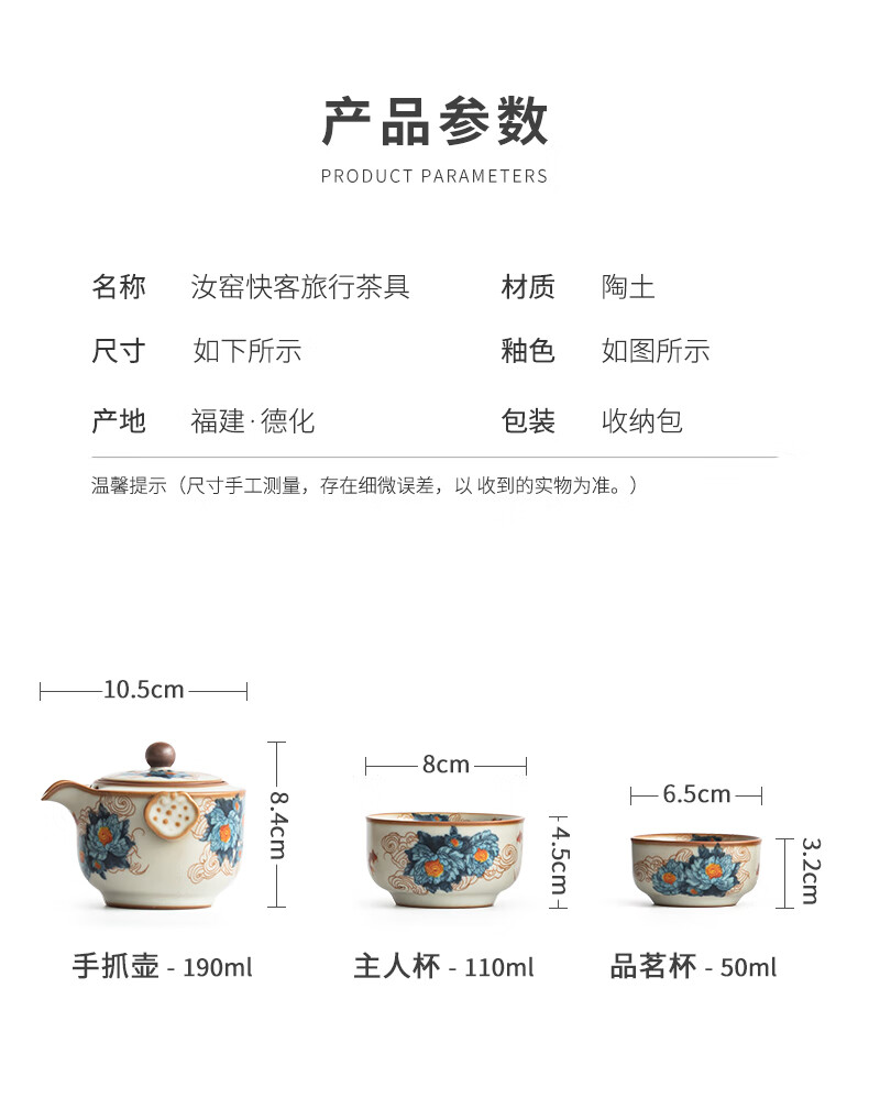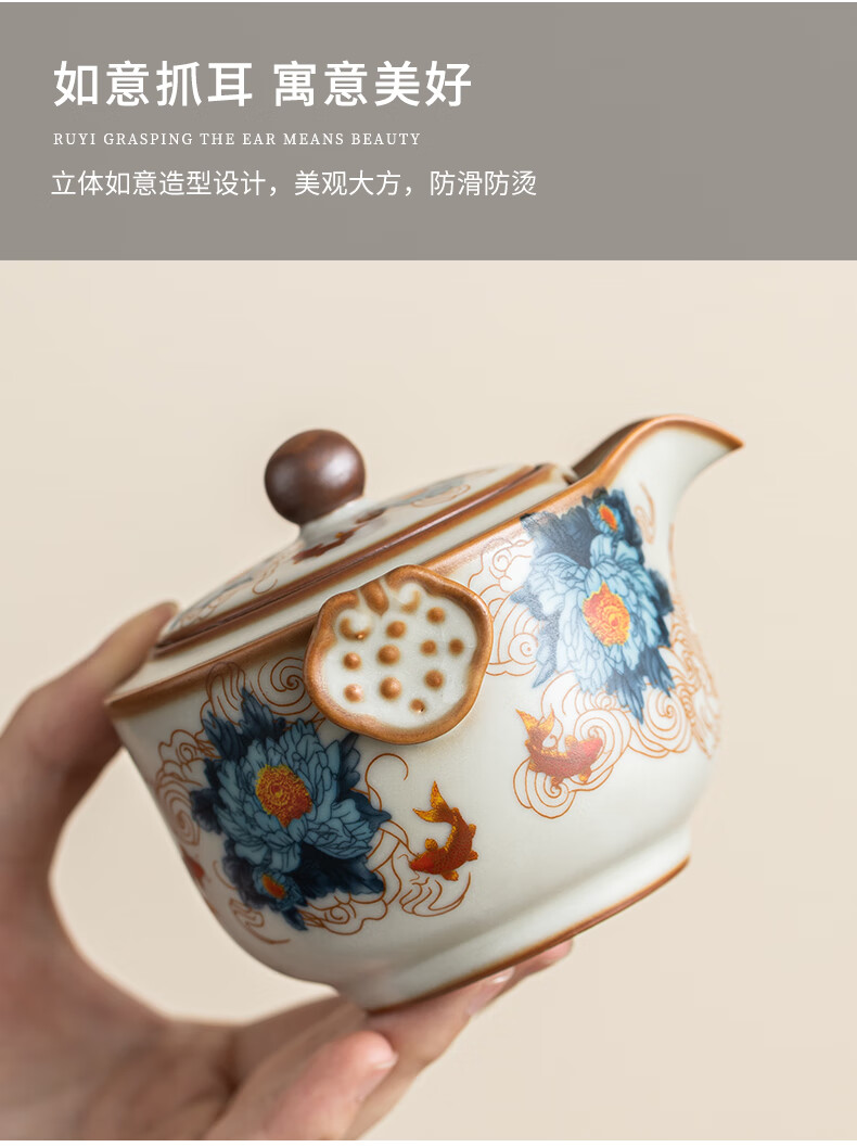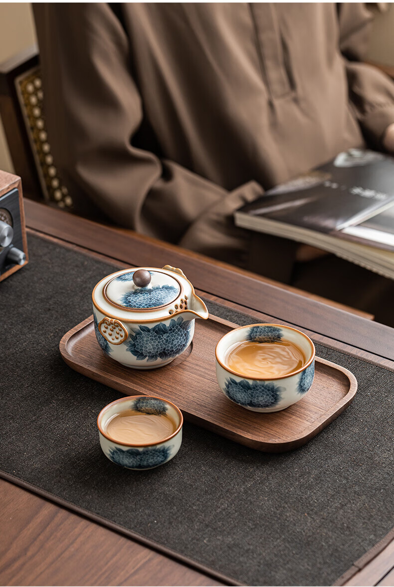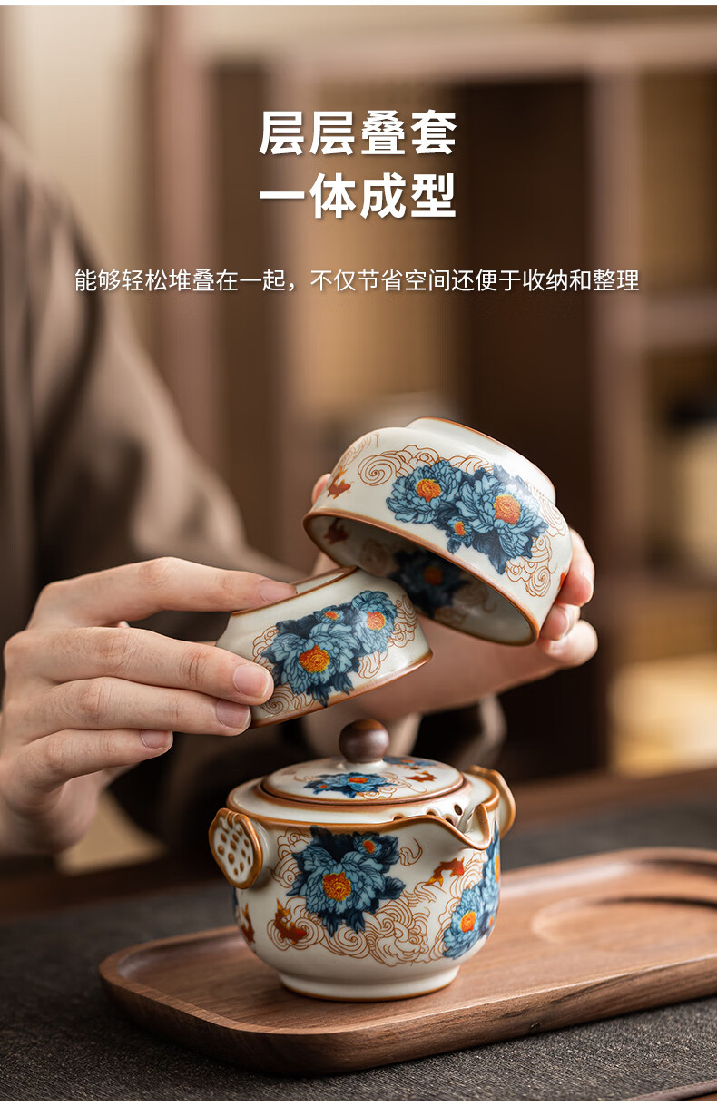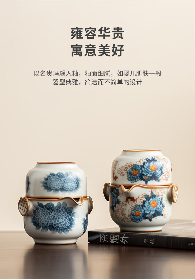 咏幻金万花汝窑快客杯旅行茶具套装陶瓷一壶二杯