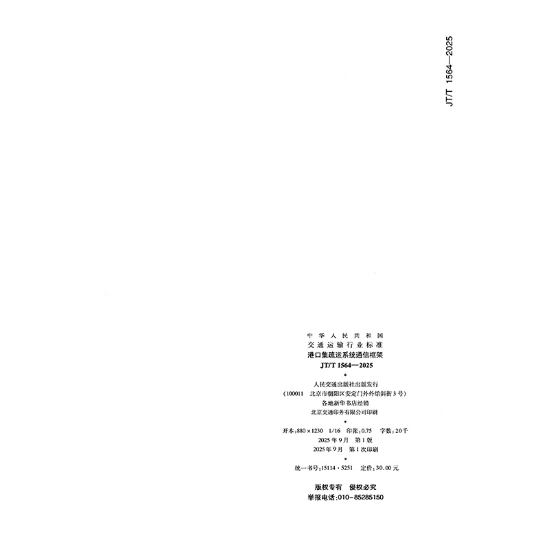 书名:港口集疏运系统通信框架(JT/T 1564—2025)