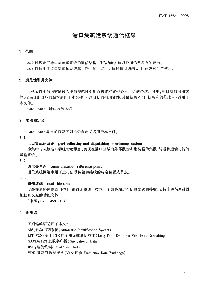港口集疏运系统通信框架(JT/T 1564—2025)