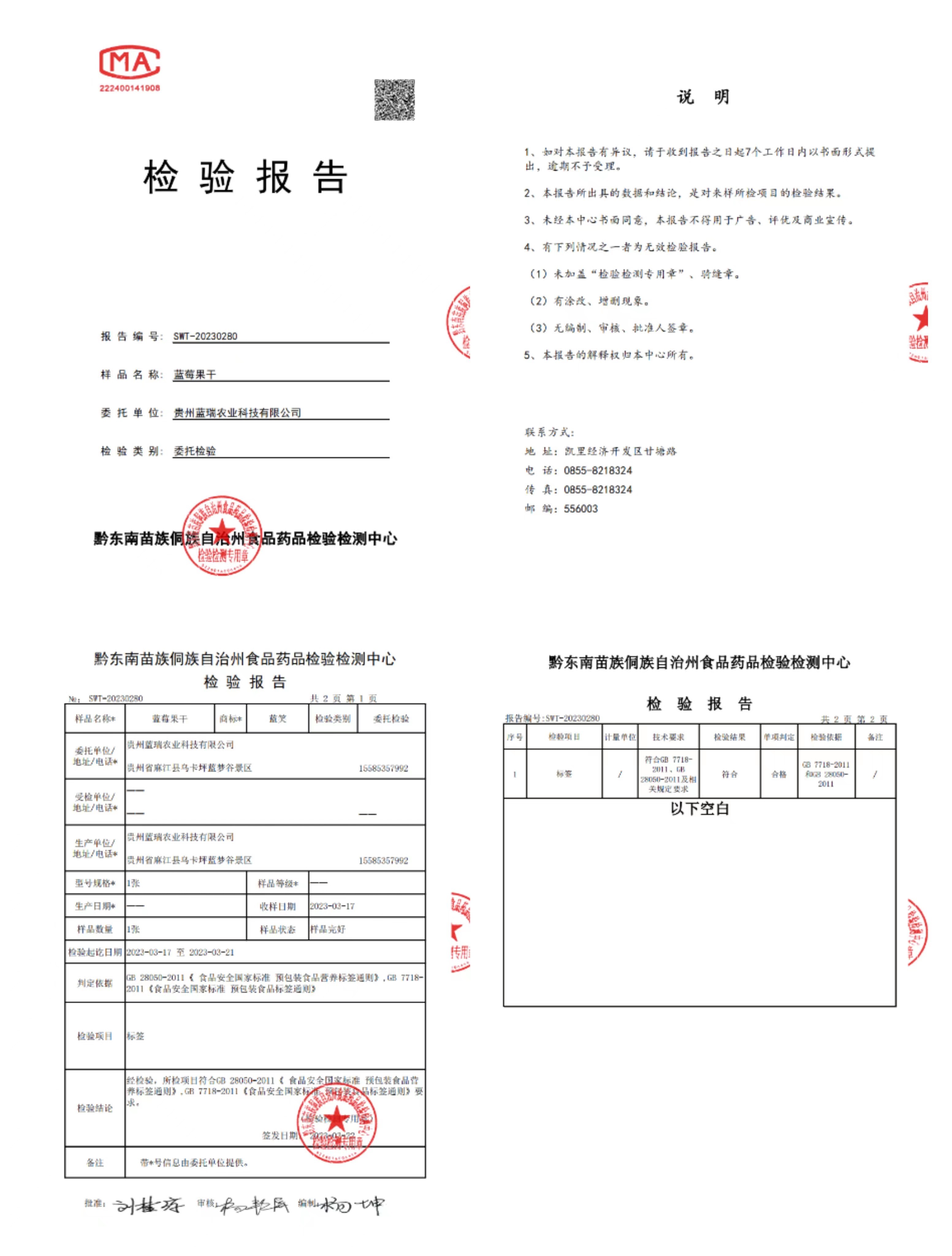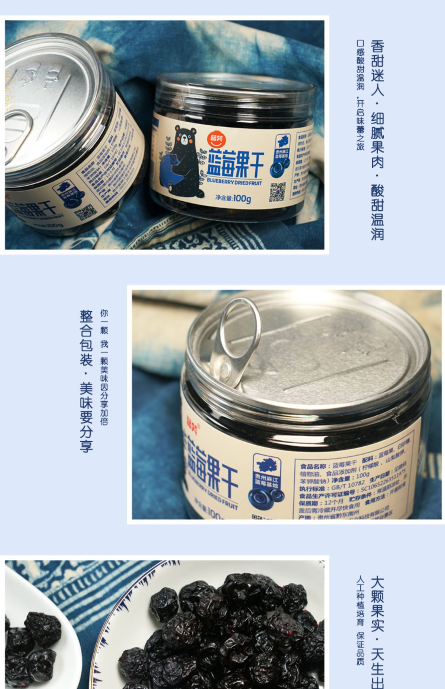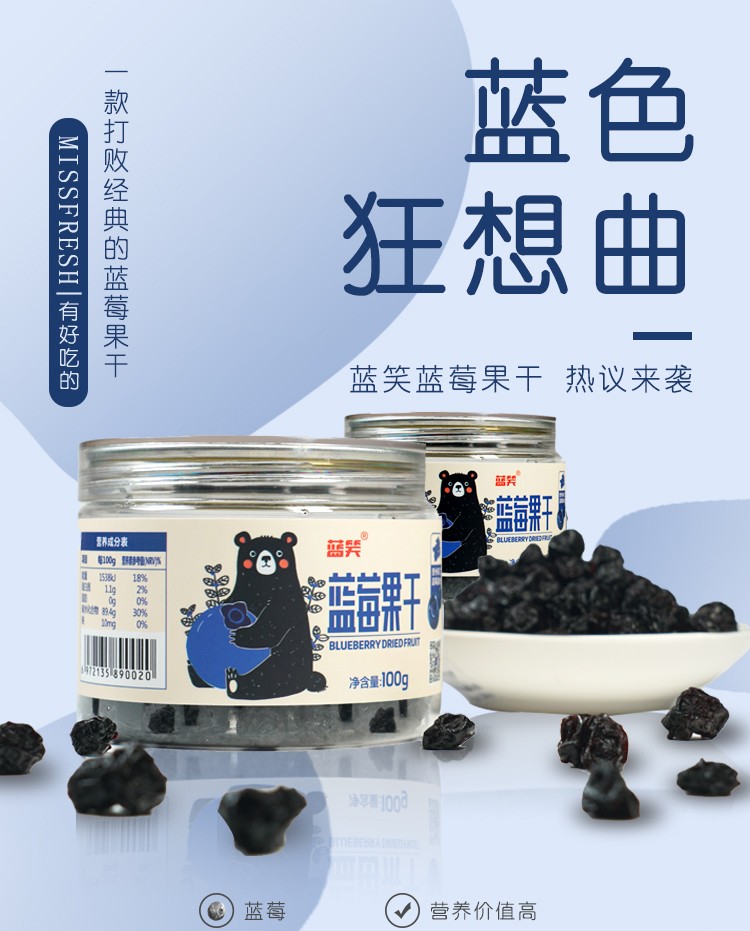 蓝笑蓝莓果干100g*1罐